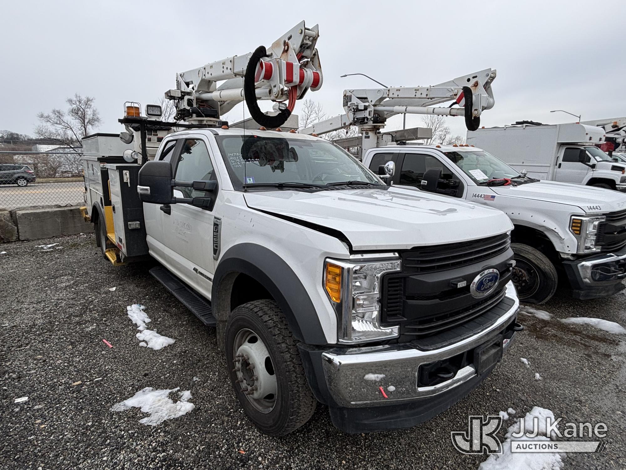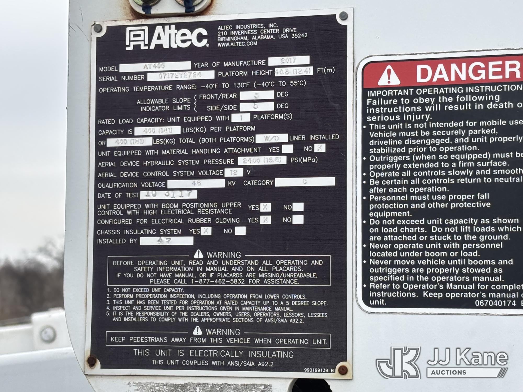Altec AT40G, 45 ft, Articulating & Telescopic Bucket Truck s/n 0717EY2724, with single-man bucket, mounted behind cab on 2017 Ford F550 4x4 Extended-Cab Service Truck, 6.7L diesel, Auto, A/C, (213,793 miles) (**Dealer Only** Not Running, Condition Unknown), (Upper Condition Unknown, Parts Off Of Upper - Requires ANSI Inspection for Repair/Replacement Requirements), Must Tow, Buyer Must Load) (Bidding Restricted to Licensed Vehicle Dealers Only), This is a Titled Item*