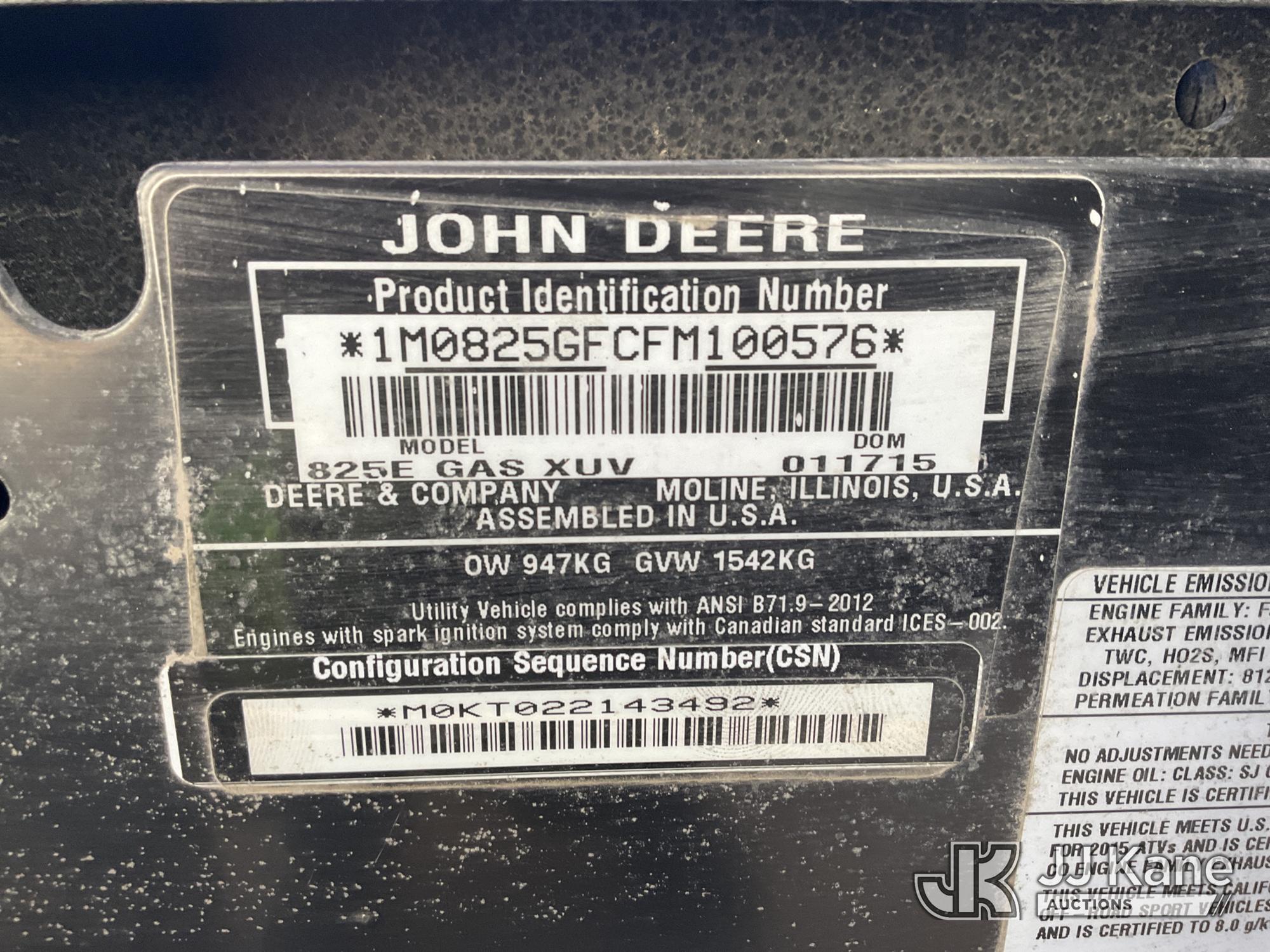 2016 John Deere XUV8251 Gator All-Terrain Vehicle, s/n 1M0825GFCFM100576, J.D. 4wd, gas, Auto, with ROPS, (4,154 miles) (Runs & Moves) (Reads 752 hours)*