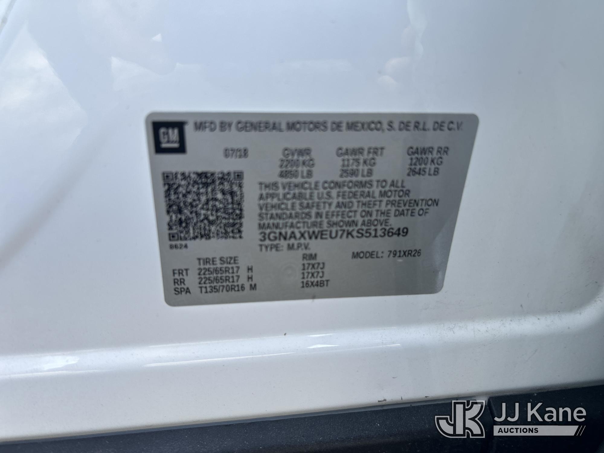 2019 Chevrolet Equinox AWD 4-Door Sport Utility Vehicle, 1.6L diesel, 9-Speed Automatic, A/C, (104,818 miles) (Runs & Moves) (Jump To Start, Will Not Stay Running, Overheats, Electrical Issues, Traction Control Light On, Service Parking Brake Light On, Driver Door Glass Will Not Stay Up, Door Handle Broken) (FL Residents Purchasing Titled Items - tax, title & registration fees will be collected at the maximum rate of $400.00 under 25,999 and $800.00 for Over 26,000 and $250.00 trailers - Proof of insurance is mandatory; Out of State Residents Purchasing Title Items - tax will be collected based upon your state rate.) This is a Titled Item*