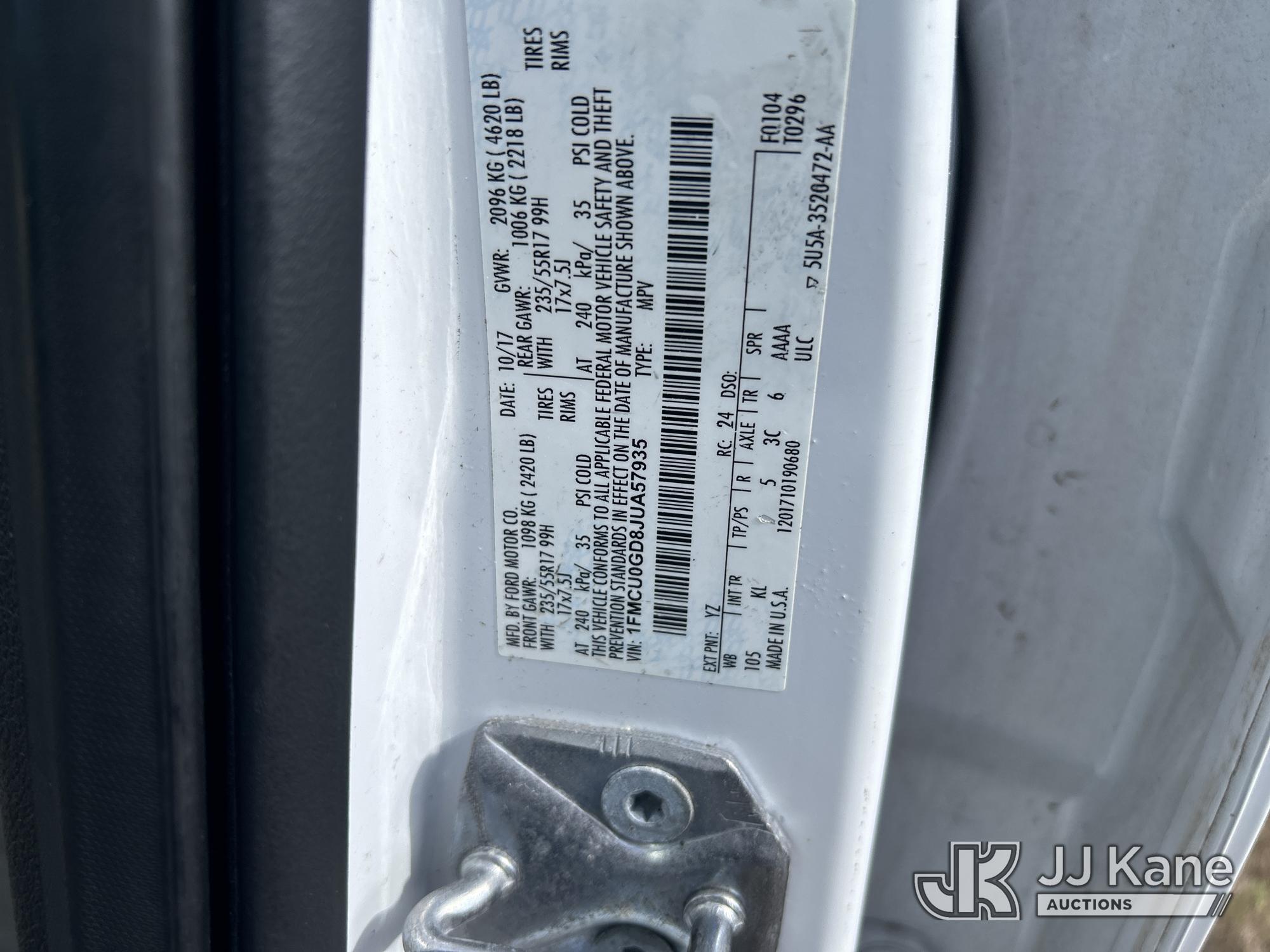 2018 Ford Escape 4-Door Sport Utility Vehicle, 4-cyl gas, FWD, 6-Speed Automatic, A/C, (120,811 miles) (Runs & Moves) (Paint Damage) (Seller States: Bad Engine) (FL Residents Purchasing Titled Items - tax, title & registration fees will be collected at the maximum rate of $400.00 under 25,999 and $800.00 for Over 26,000 and $250.00 trailers - Proof of insurance is mandatory; Out of State Residents Purchasing Title Items - tax will be collected based upon your state rate.) This is a Titled Item*