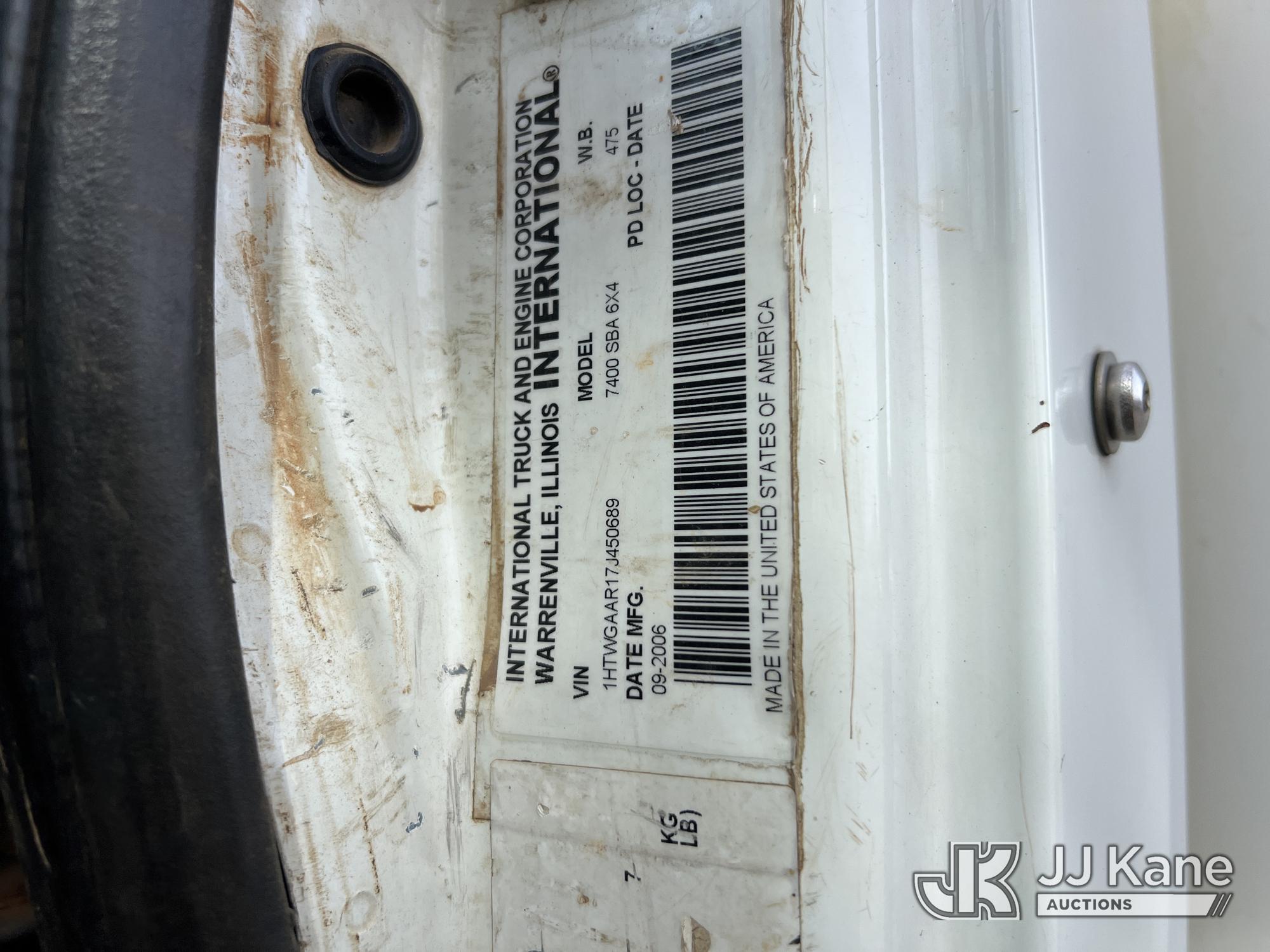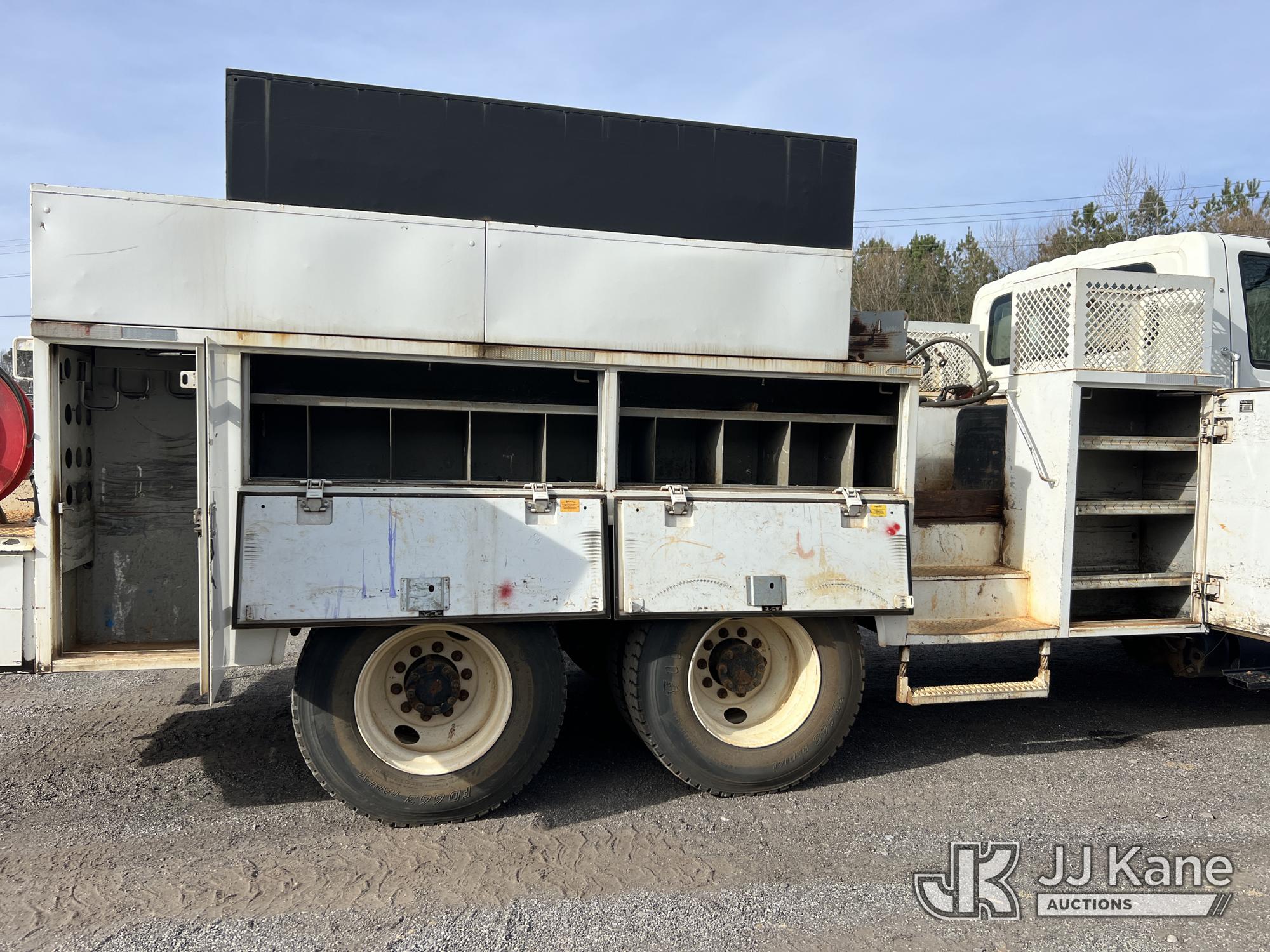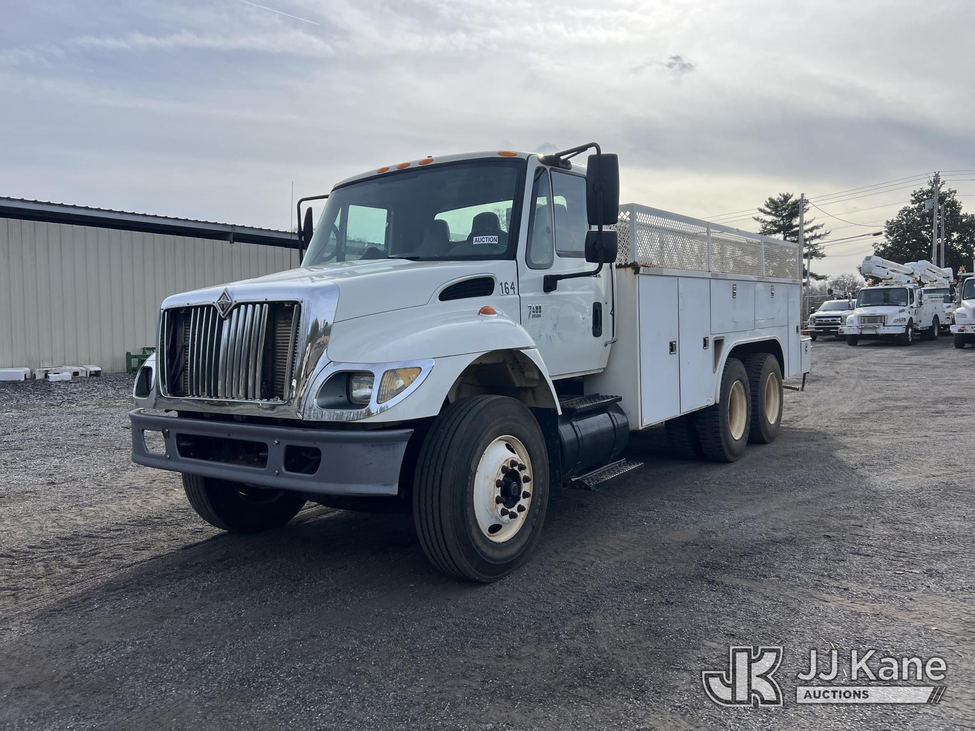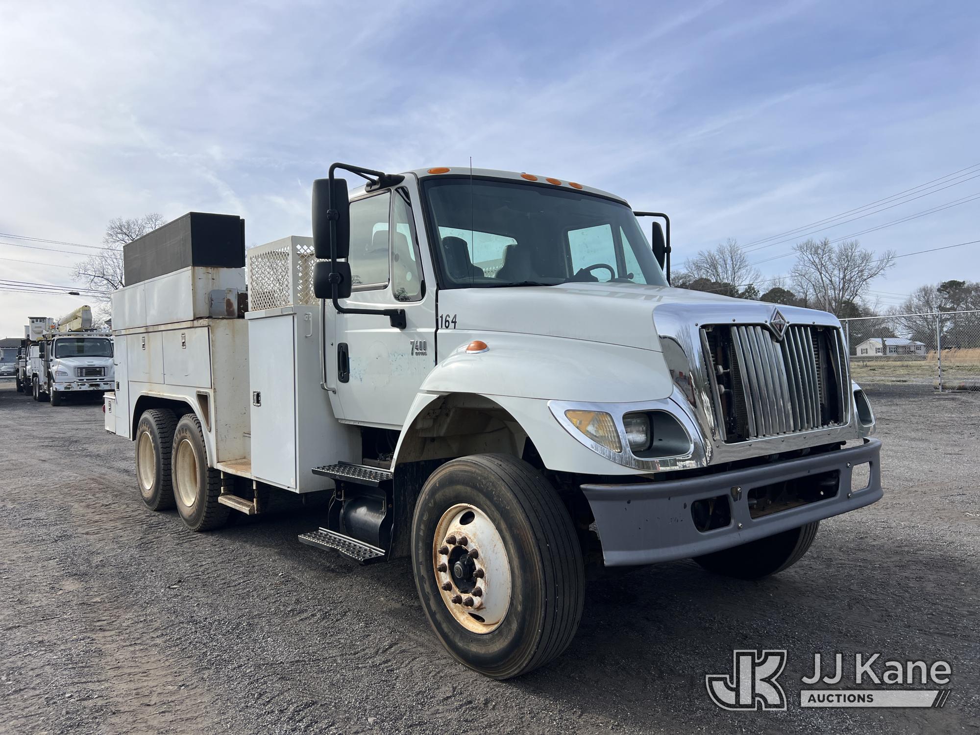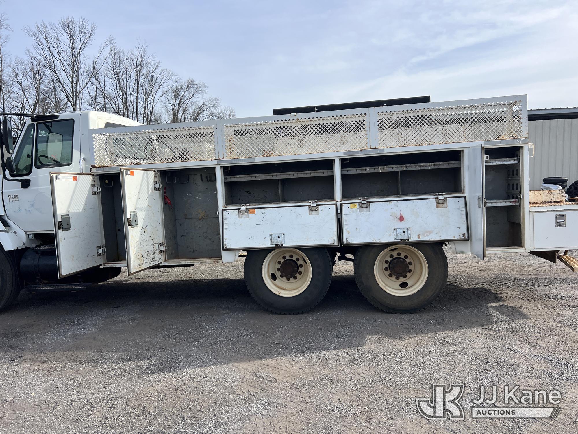 2007 International 7400 T/A Utility Truck, DT466 diesel, Auto, A/C, with aux fuel tank w/ pump, (101,943 miles) (Municipality Owned) (Runs & Moves) (ABS Light On, Body/Paint Damage) (Seller States: NEEDS BATTERIES) This is a Titled Item*