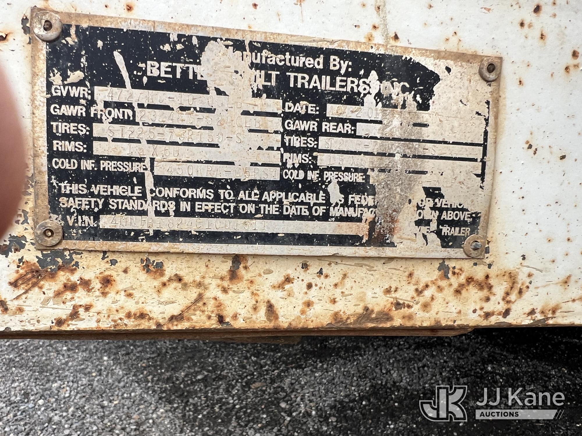 2012 Better Built PH1822FB T/A Tagalong Equipment Trailer, s/n 4MNFB1824C1001311, with 18 ft level deck between wheels & ramp, (Municipality Owned)*