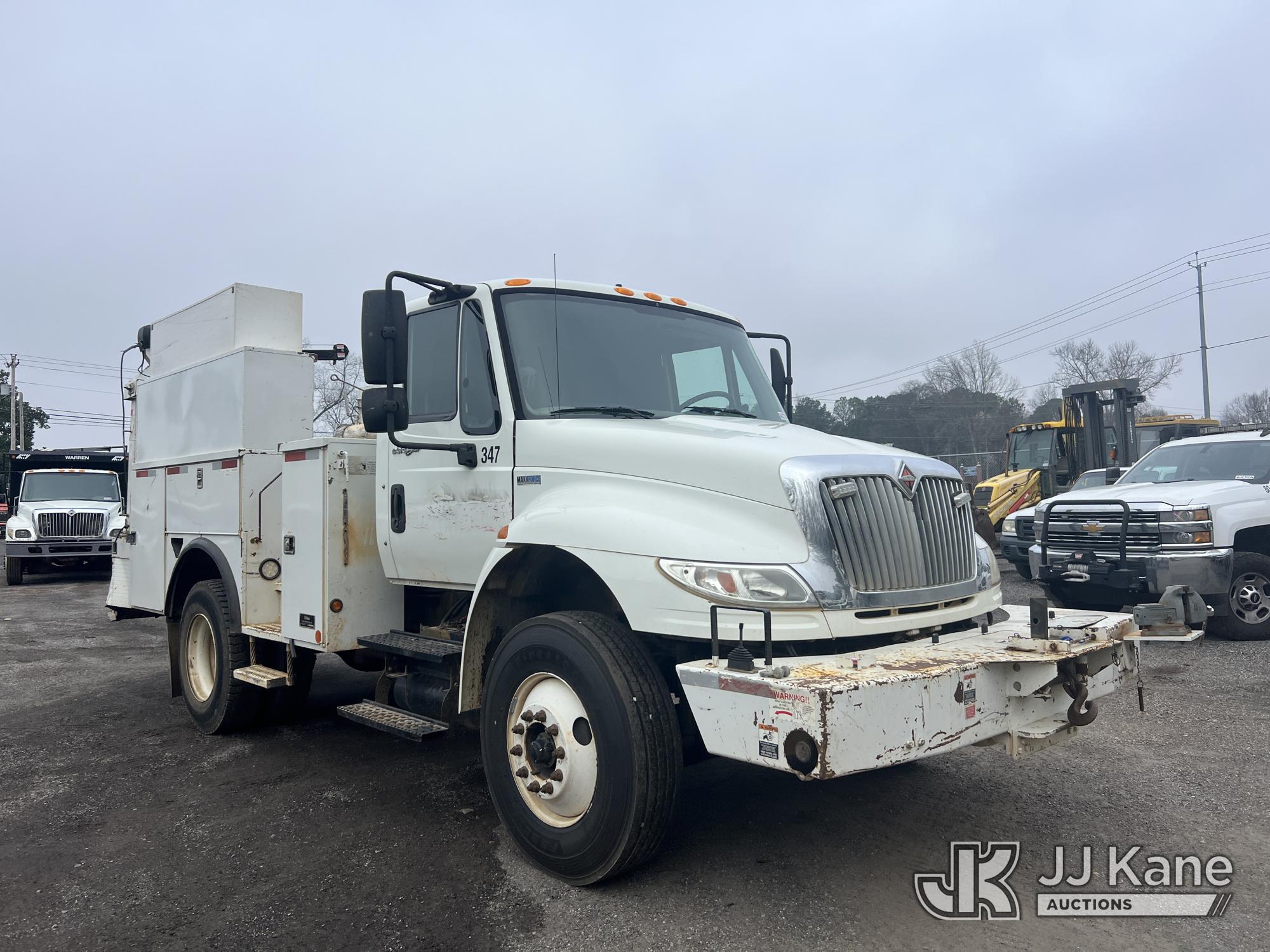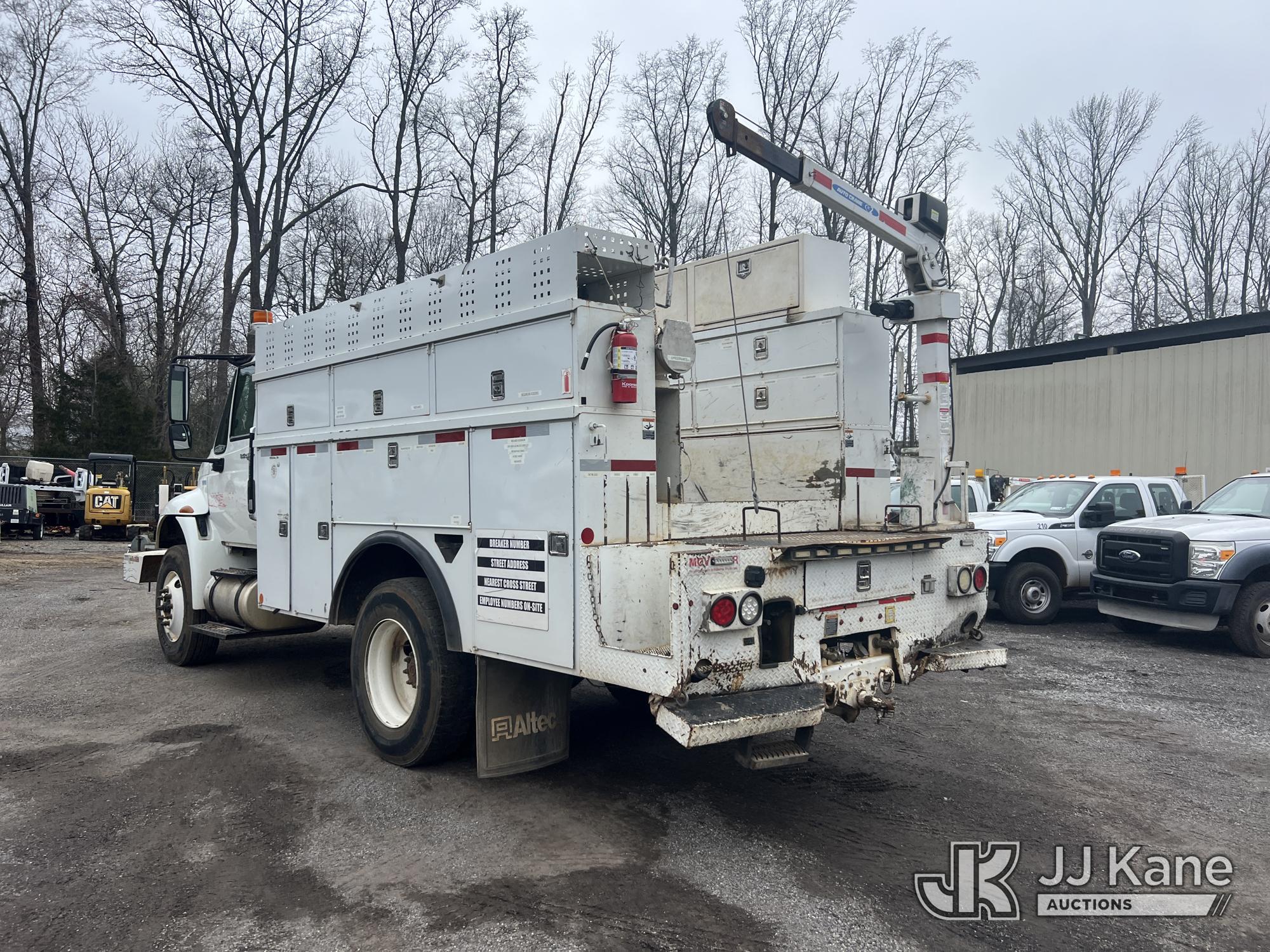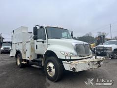 2013 International DuraStar 4400 Utility Truck, 7.6L diesel, Auto, A/C, with material crane & front winch, (159,943 miles) (Municipality Owned) (Runs & Moves) (Maintenance Light On, Body Damage) This is a Titled Item*