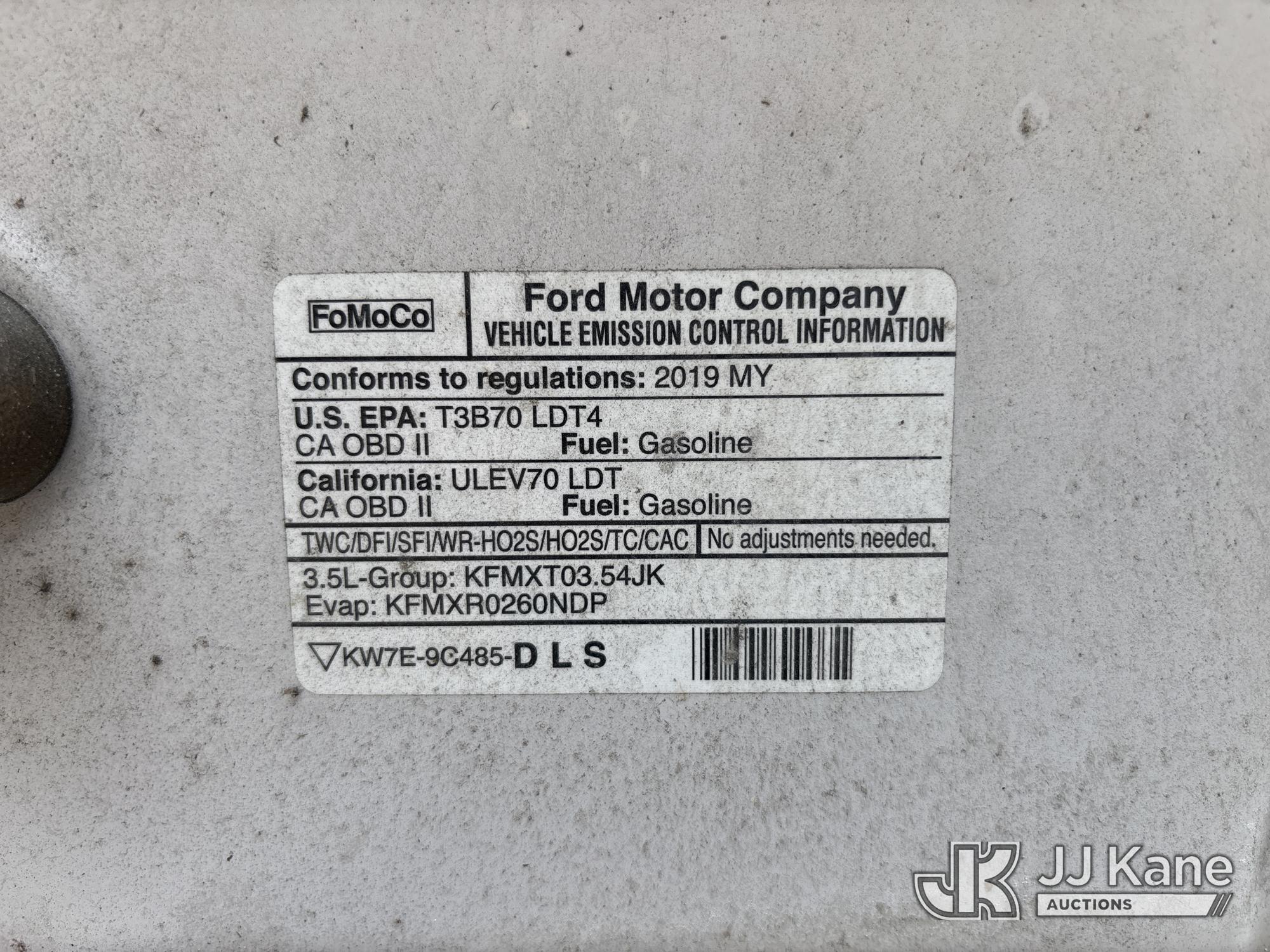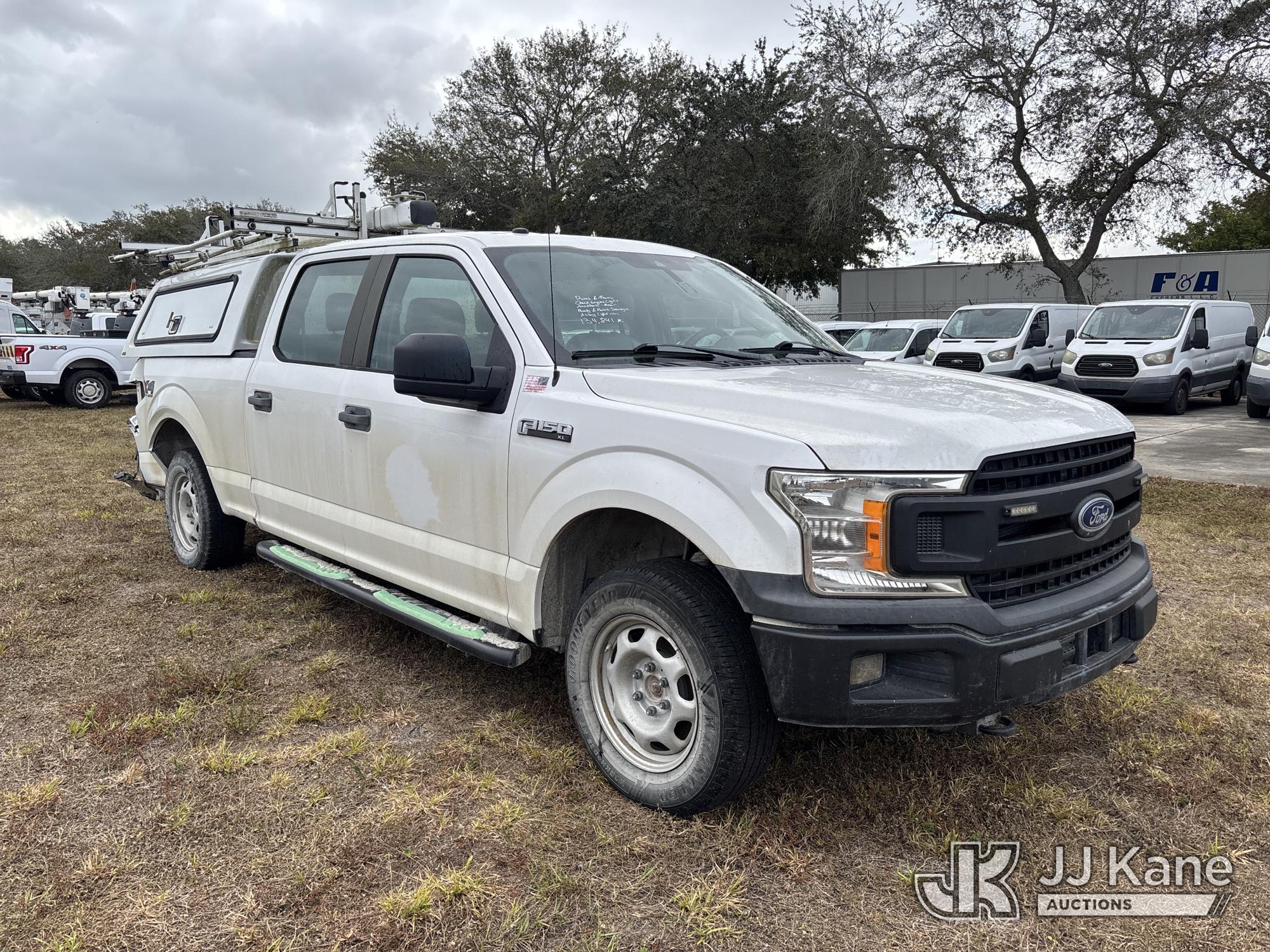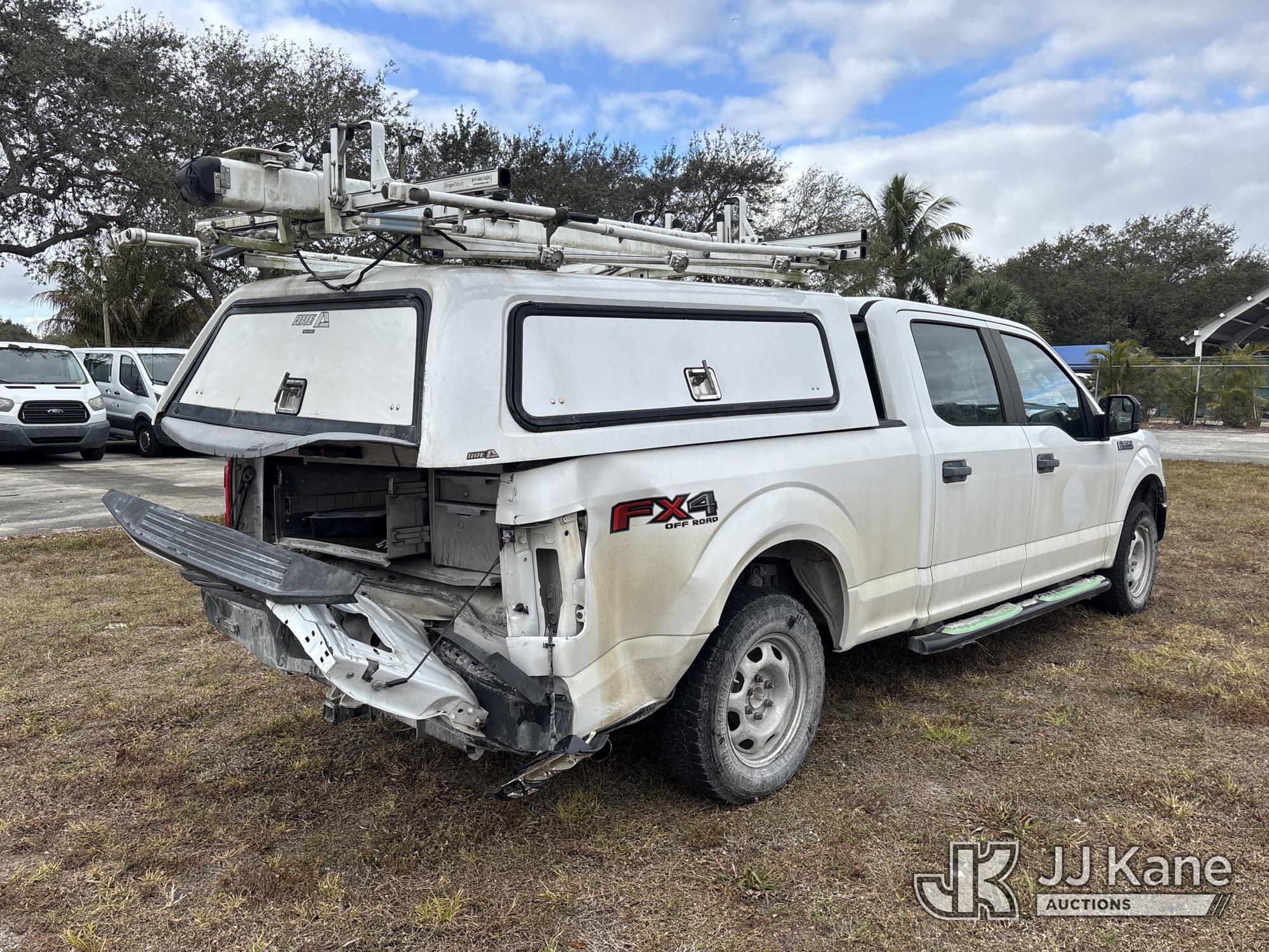 2019 Ford F150 4x4 Crew-Cab Pickup Truck, 3.5L V6 DOHC 24V gas, 6-Speed Automatic, A/C, with bed cap, (134,841 miles) (Wrecked)( No Title Certificate Of Destruction) (Runs & Moves) (Jump To Start, Check Engine Light On, Airbag Light On, Rear End Damage, Frame Damage, Body/Paint Damage, Bed Cap Not Secured) This is a Titled Item*