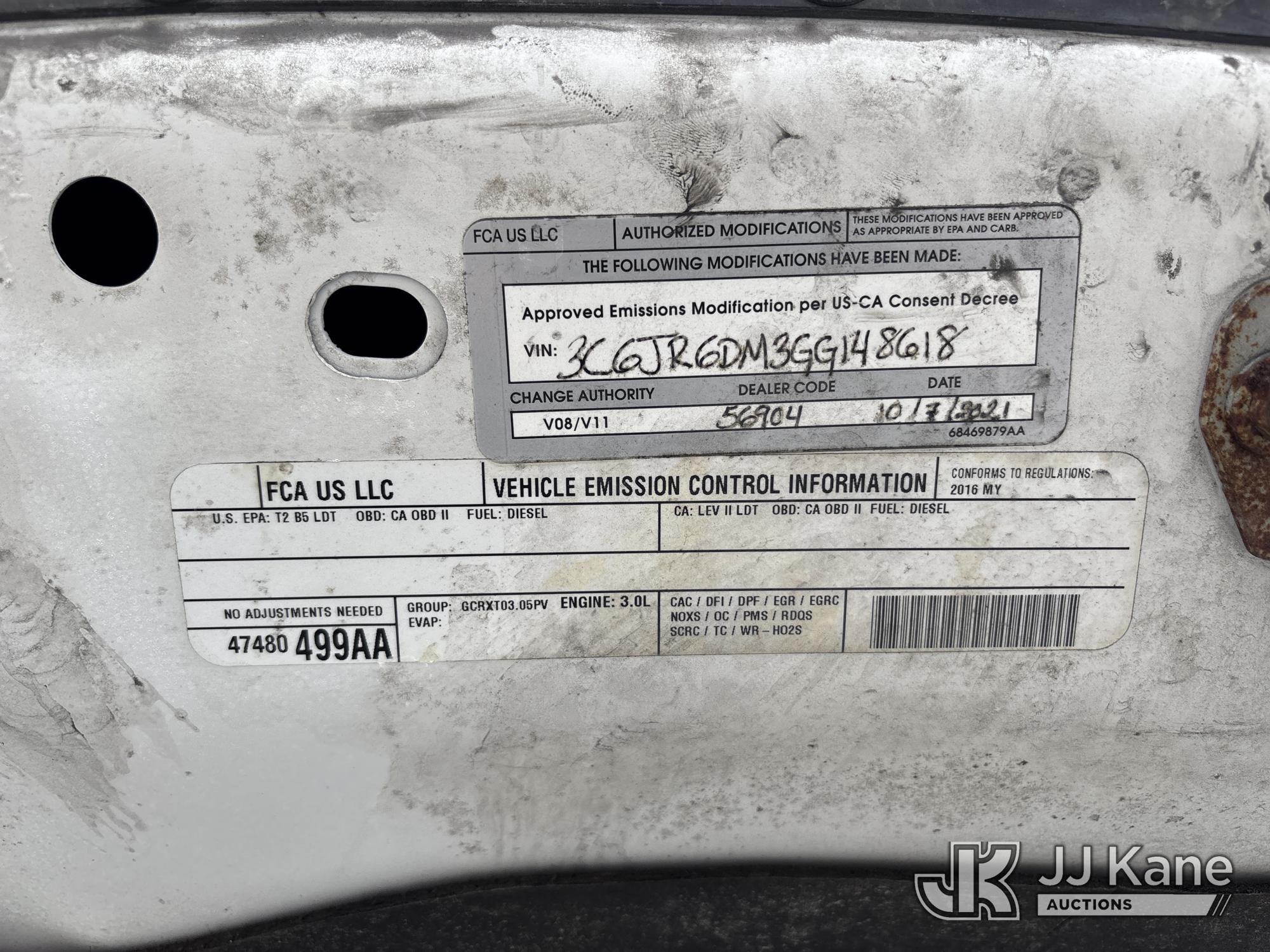 2016 RAM 1500 Pickup Truck, 3.0L V6 DOHC 24V diesel, RWD, 8-Speed Automatic, A/C, with bed cover & bed slide, (55,222 miles) (Runs & Moves) (Jump To Start, ABS Light On, ESC Light On, Body/Paint Damage) (FL Residents Purchasing Titled Items - tax, title & registration fees will be collected at the maximum rate of $400.00 under 25,999 and $800.00 for Over 26,000 and $250.00 trailers - Proof of insurance is mandatory; Out of State Residents Purchasing Title Items - tax will be collected based upon your state rate.) This is a Titled Item*