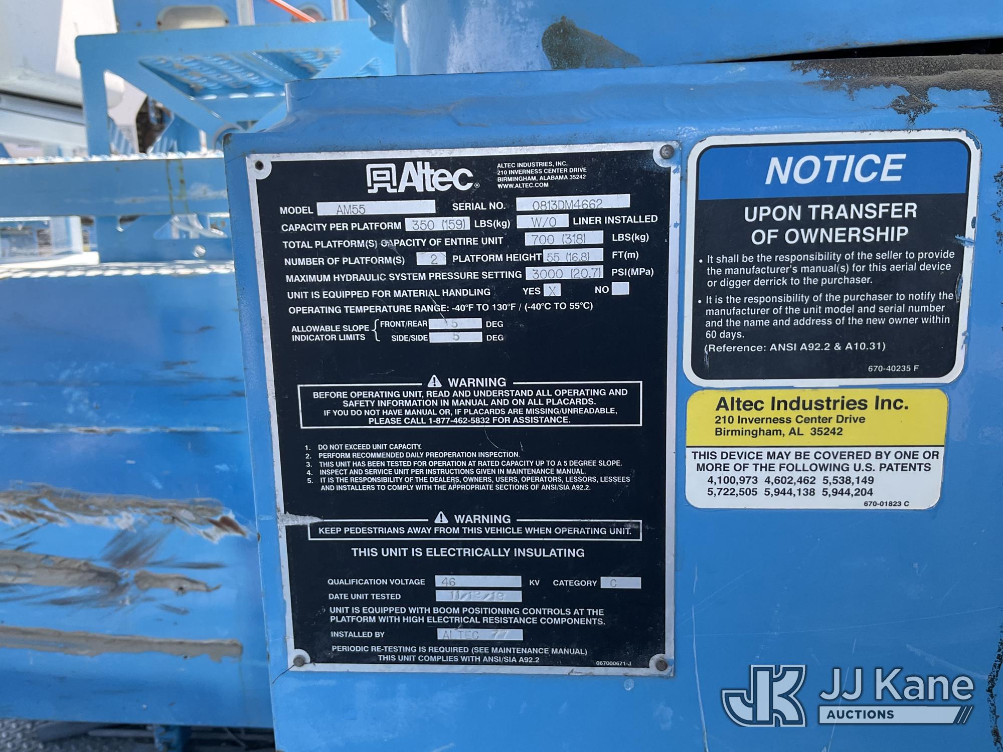 Altec AM55, 60 ft, Articulating Material Handling Bucket Truck s/n 0813DM4662, with double bucket & 4 hyd outriggers, rear mounted on 2014 International 7500 T/A Utility Truck, 9.3L L6 6X6, DIESEL, Auto, A/C, with winch, spotlight, pintle hitch, (39,106 miles) (Not Running, Condition Unknown, Electrical Fault) (Reads 2,982 hours) (Bidding Restricted to Licensed Vehicle Dealers Only), May be subject to ARB Regulations This is a Titled Item*
