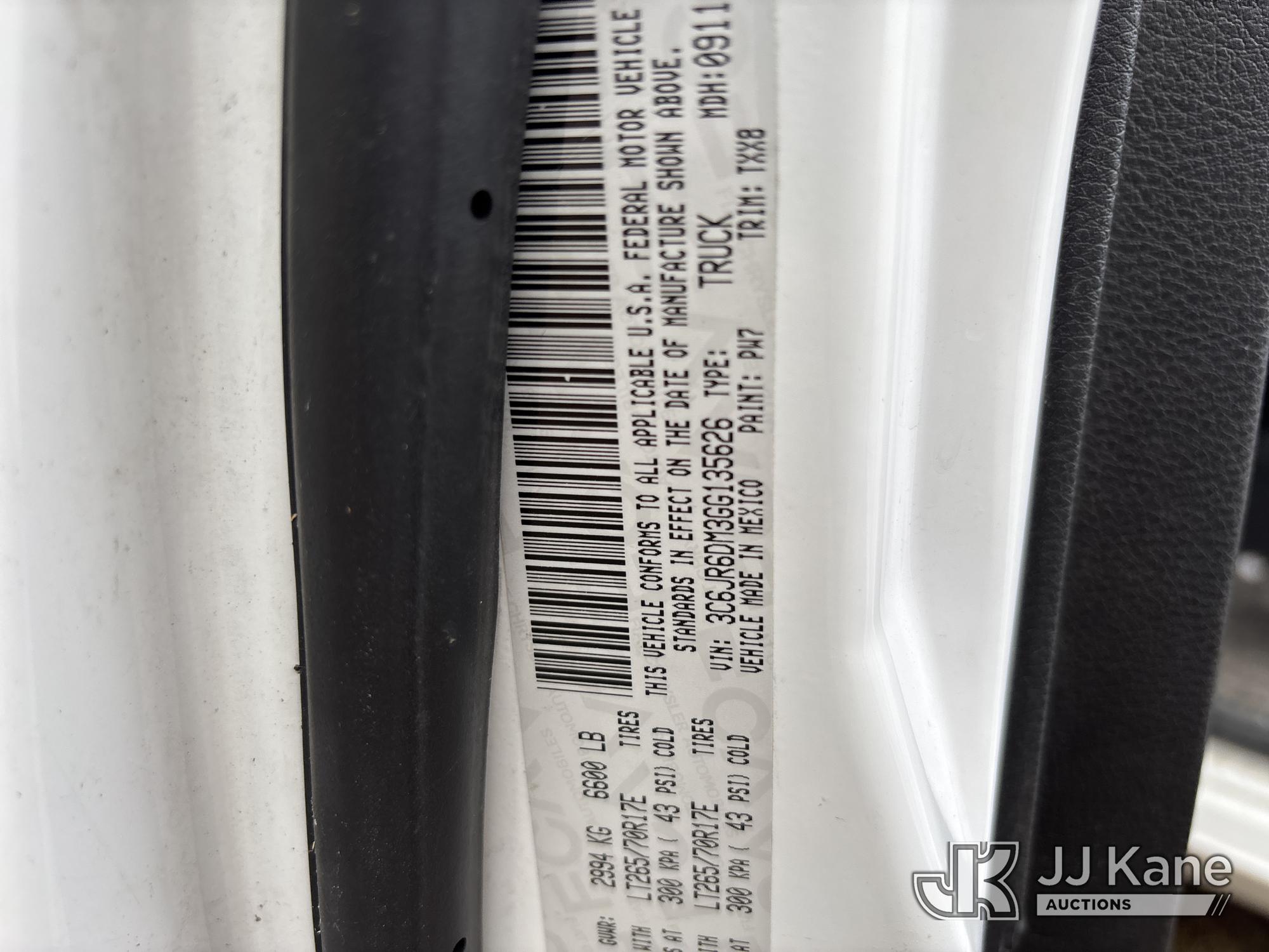 2016 RAM 1500 Pickup Truck, 3.0L V6 DOHC 24V diesel, RWD, 8-Speed Automatic, A/C, with Tommy Gate Lift Gate, (128,092 miles) (Runs & Moves) (Jump To Start, Check Engine Light On, ABS Light On, ESC Light On, Lift Gate Does Not Operate, Body/Paint Damage) (FL Residents Purchasing Titled Items - tax, title & registration fees will be collected at the maximum rate of $400.00 under 25,999 and $800.00 for Over 26,000 and $250.00 trailers - Proof of insurance is mandatory; Out of State Residents Purchasing Title Items - tax will be collected based upon your state rate.) This is a Titled Item*