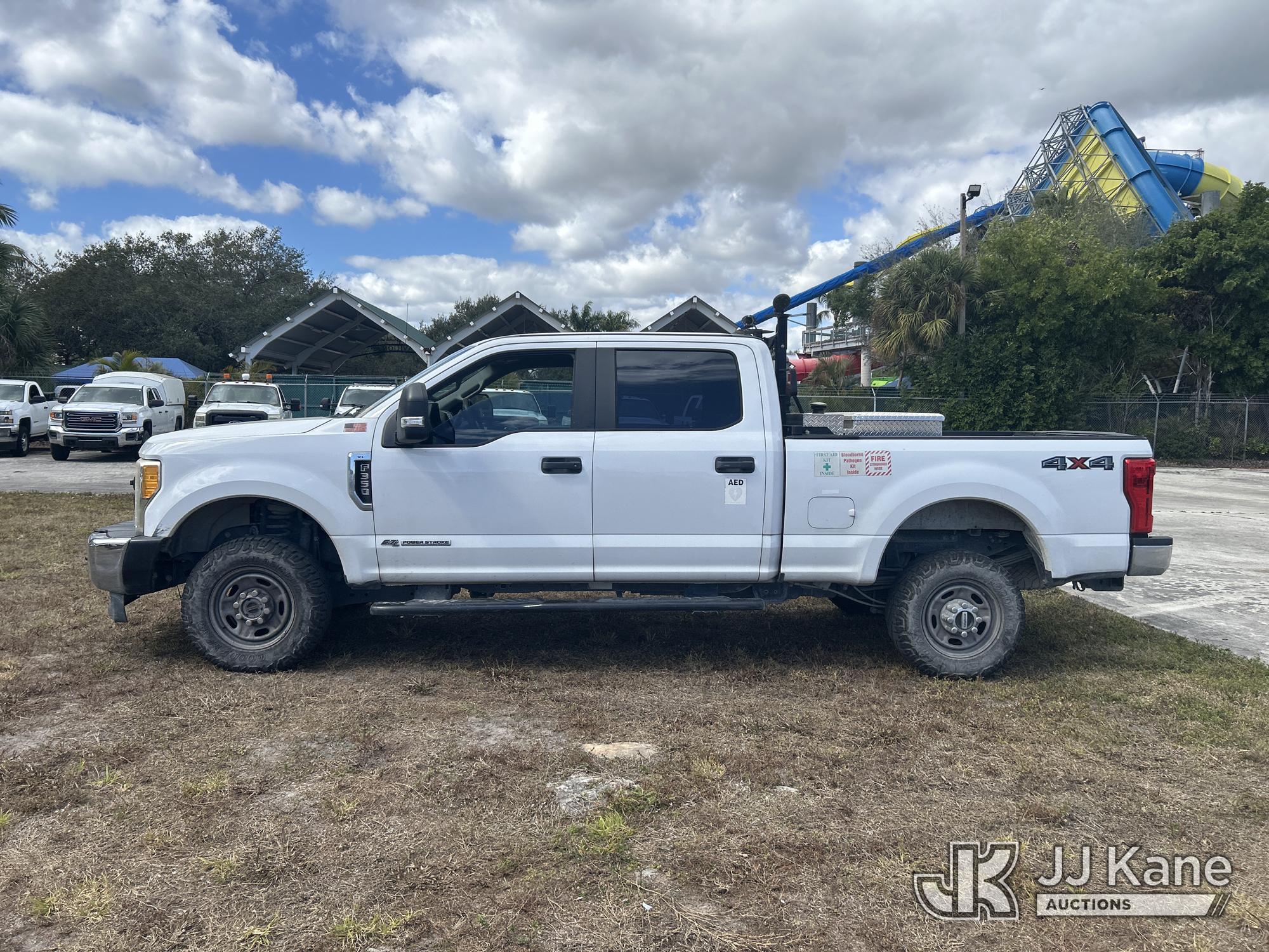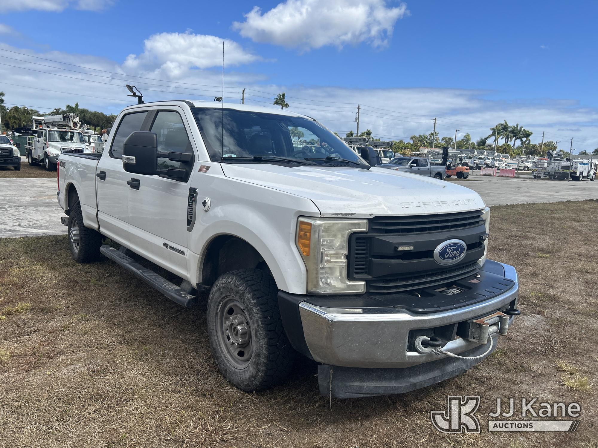 2017 Ford F350 4x4 Crew-Cab Pickup Truck, 6.7L diesel, 6-Speed Automatic, A/C, with front winch, aux fuel tank w/ pump, (175,229 miles) (Runs & Moves) (Oil Leak/ Idles High, Paint Damage, Tailgate Damage & Tailgate Will Not Open) (FL Residents Purchasing Titled Items - tax, title & registration fees will be collected at the maximum rate of $400.00 under 25,999 and $800.00 for Over 26,000 and $250.00 trailers - Proof of insurance is mandatory; Out of State Residents Purchasing Title Items - tax will be collected based upon your state rate.) This is a Titled Item*