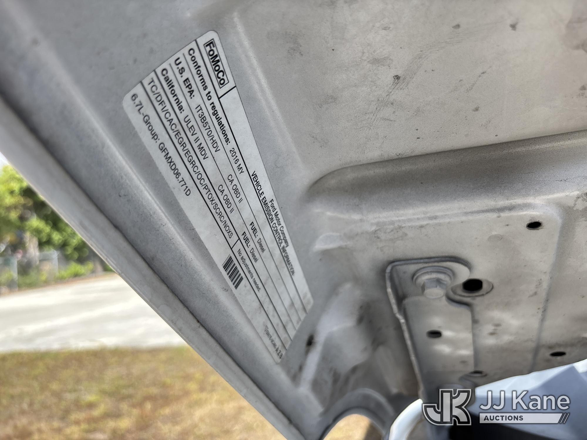 2016 Ford F350 Crew-Cab Pickup Truck, 6.7L V8 OHV 16V diesel, RWD, 6-Speed Automatic, A/C, with Thieman Lift Gate, (115,976 miles) (Runs & Moves, Lift Gate Operates) (Jump To Start, Service Light On, Body/Paint Damage) (FL Residents Purchasing Titled Items - tax, title & registration fees will be collected at the maximum rate of $400.00 under 25,999 and $800.00 for Over 26,000 and $250.00 trailers - Proof of insurance is mandatory; Out of State Residents Purchasing Title Items - tax will be collected based upon your state rate.) This is a Titled Item*
