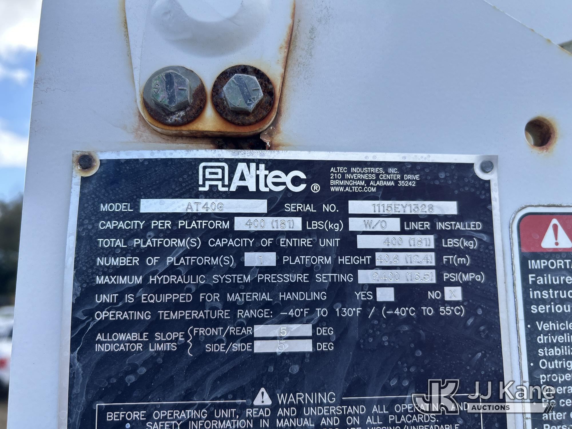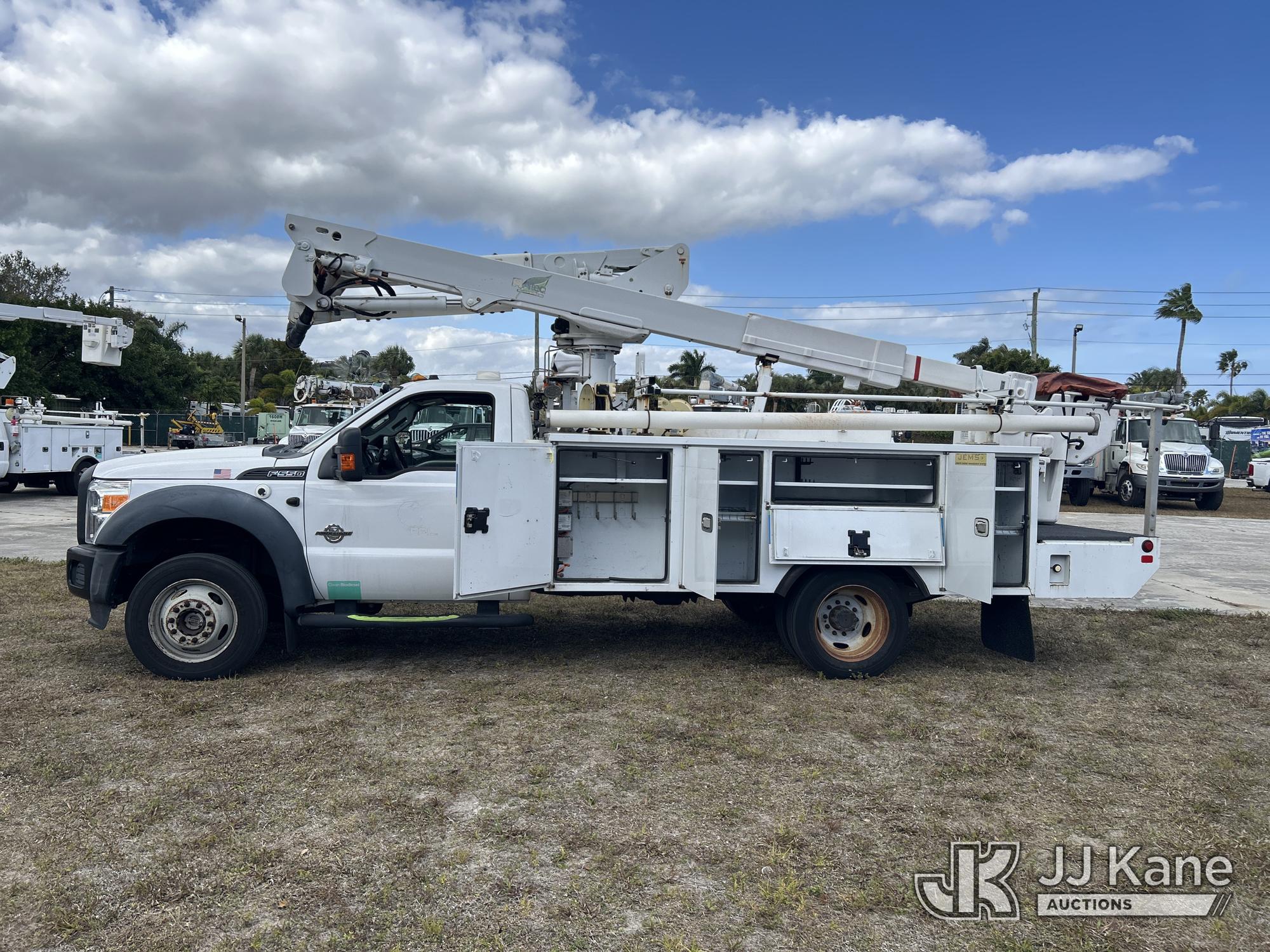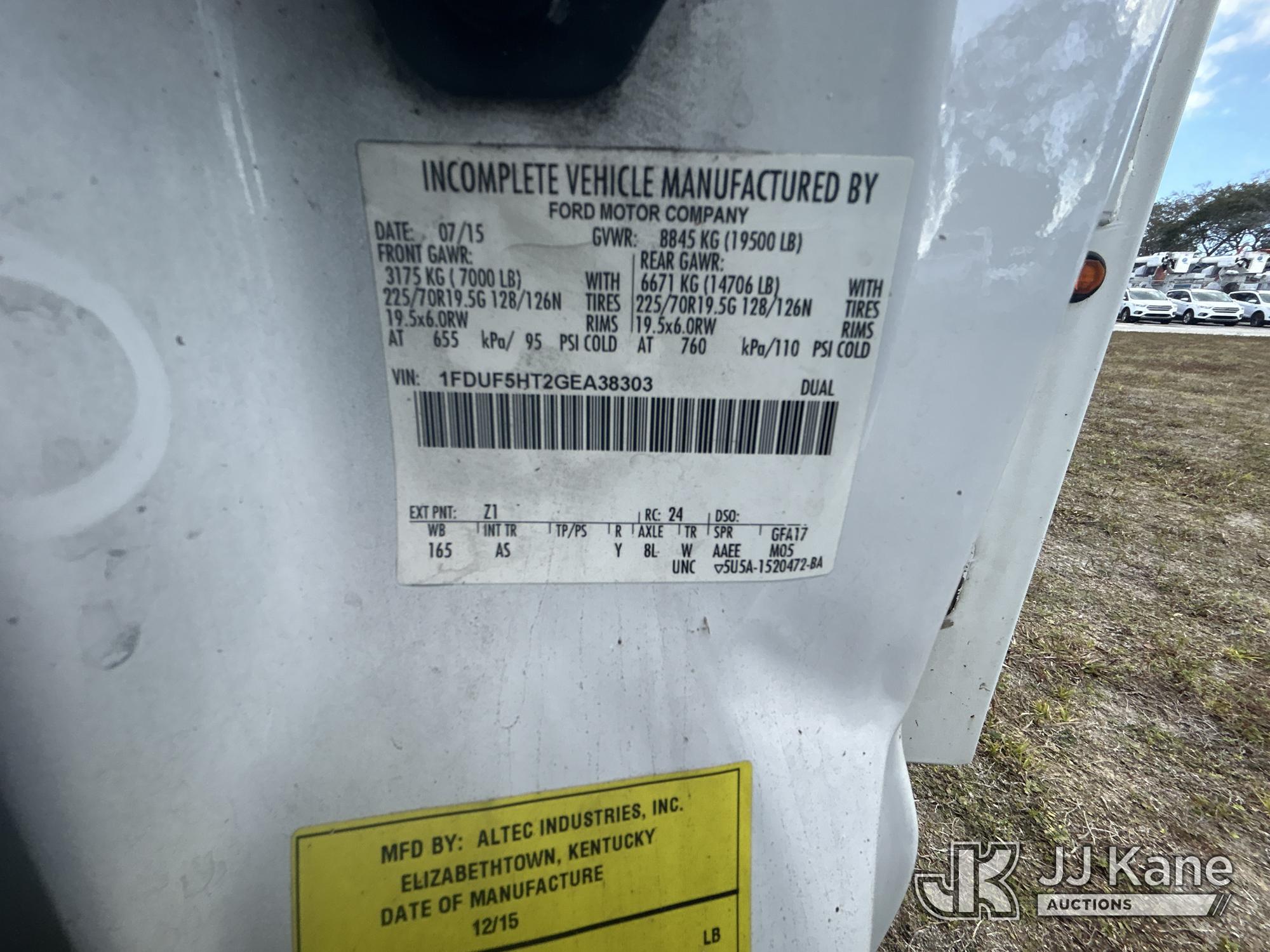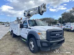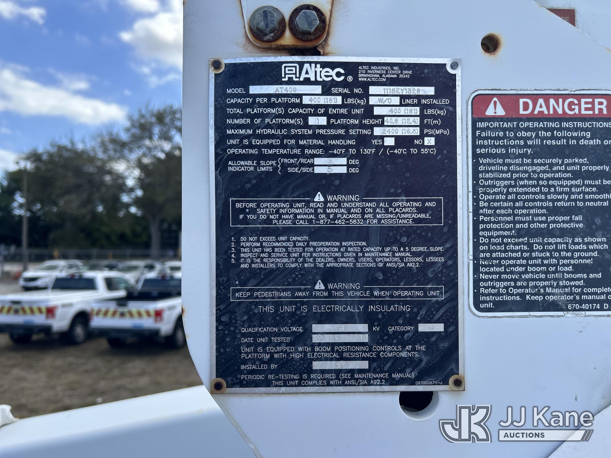 Altec AT40G, 45 ft, Articulating & Telescopic Bucket s/n 1115EY1328, with Single-Man Bucket, mounted behind cab on 2016 Ford F550 4x4 Service Truck, 6.7L Diesel Auto, A/C, (101,880 miles) Jems Unit (Runs, Moves & Upper Not Operational) (Body/ Paint Damage With Rust, Engine Light On) (FL Residents Purchasing Titled Items - tax, title & registration fees will be collected at the maximum rate of $400.00 under 25,999 and $800.00 for Over 26,000 and $250.00 trailers - Proof of insurance is mandatory; Out of State Residents Purchasing Title Items - tax will be collected based upon your state rate.) This is a Titled Item*
