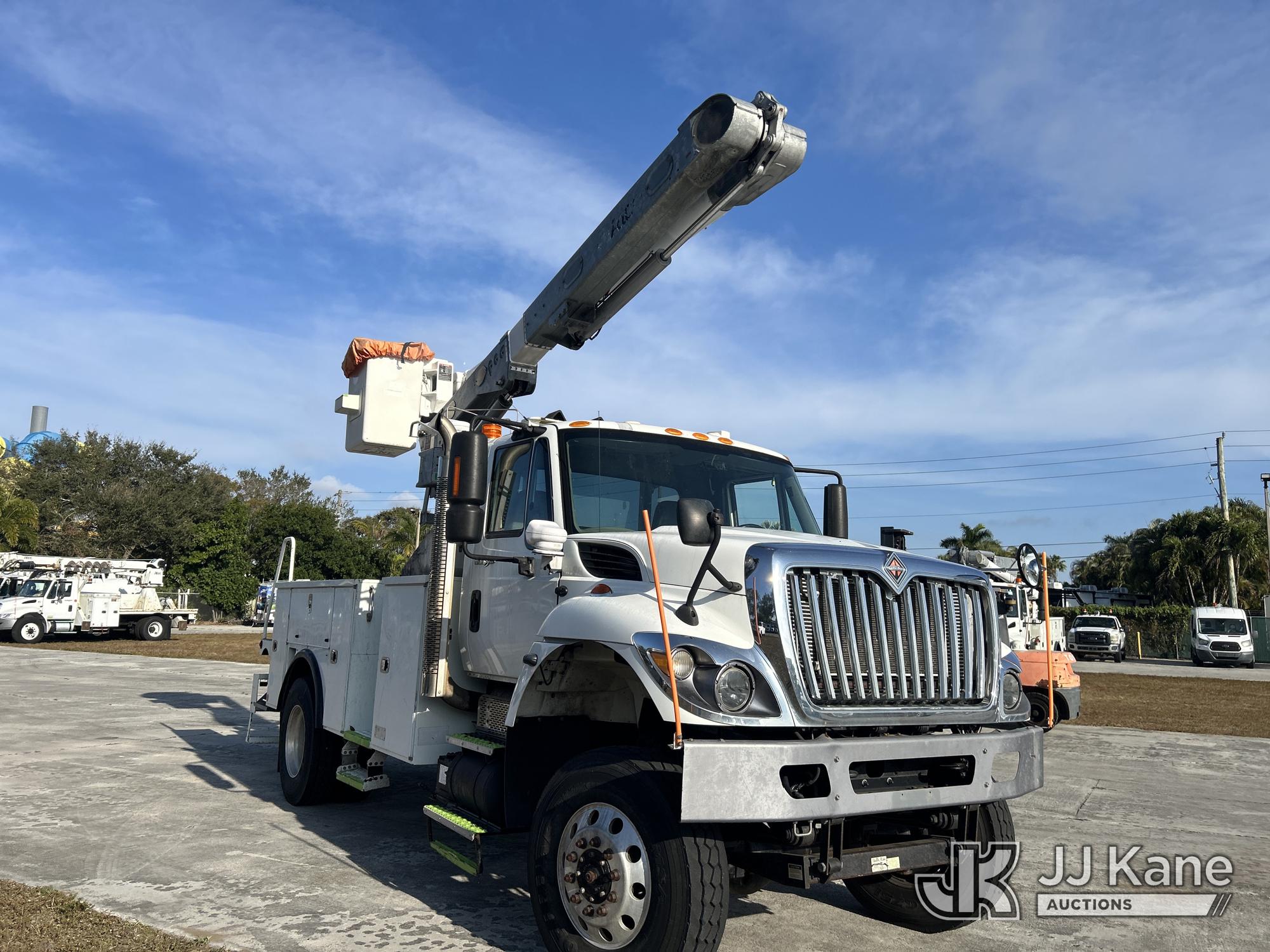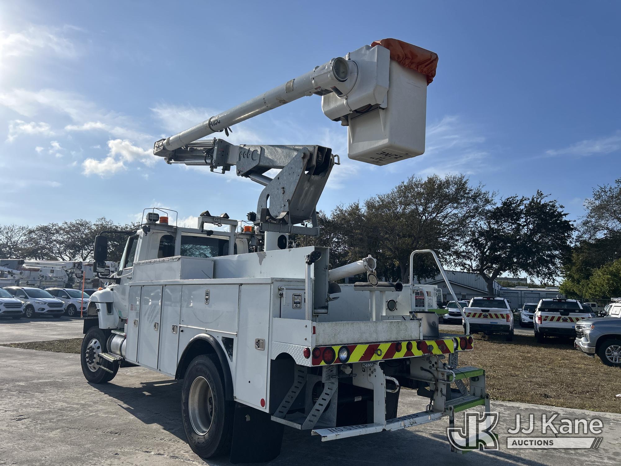 Altec L42A, 47 ft, Over-Center Bucket s/n 0813U2043, with single-man bucket, galvanized lower boom, rear mounted on 2014 International 7300 WorkStar 4x4 Utility Truck, Maxxforce DT diesel, Auto, A/C, (138,289 miles) (Runs, Moves & Upper Operates)( Engine Light On, Hydraulic Leak, Paint/Body Damage)(FL Residents Purchasing Titled Items - tax, title & registration fees will be collected at the maximum rate of $400.00 under 25,999 and $800.00 for Over 26,000 and $250.00 trailers - Proof of insurance is mandatory; Out of State Residents Purchasing Title Items - tax will be collected based upon your state rate.) This is a Titled Item*