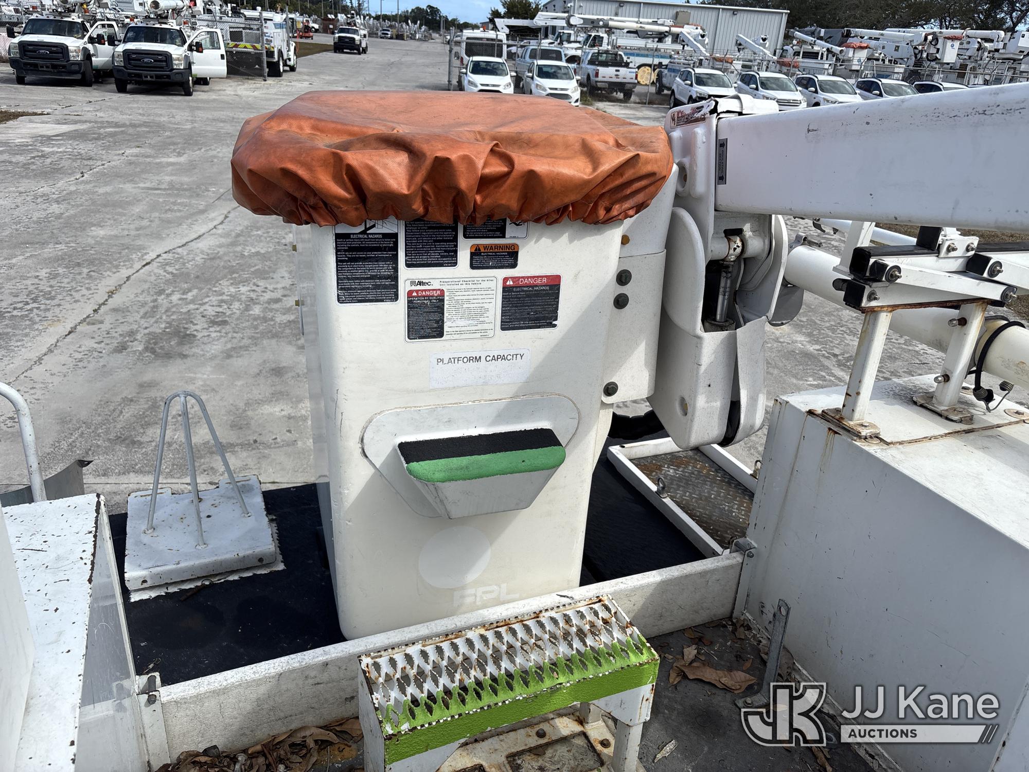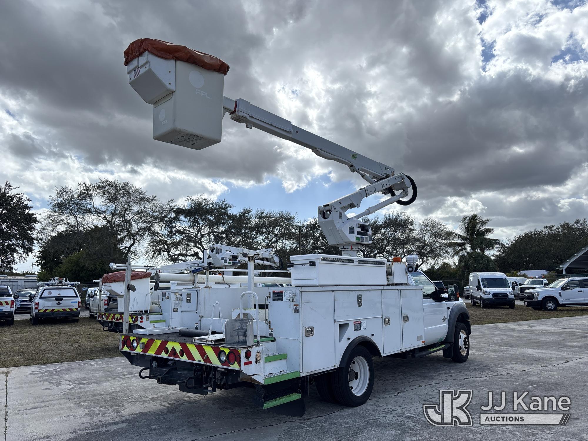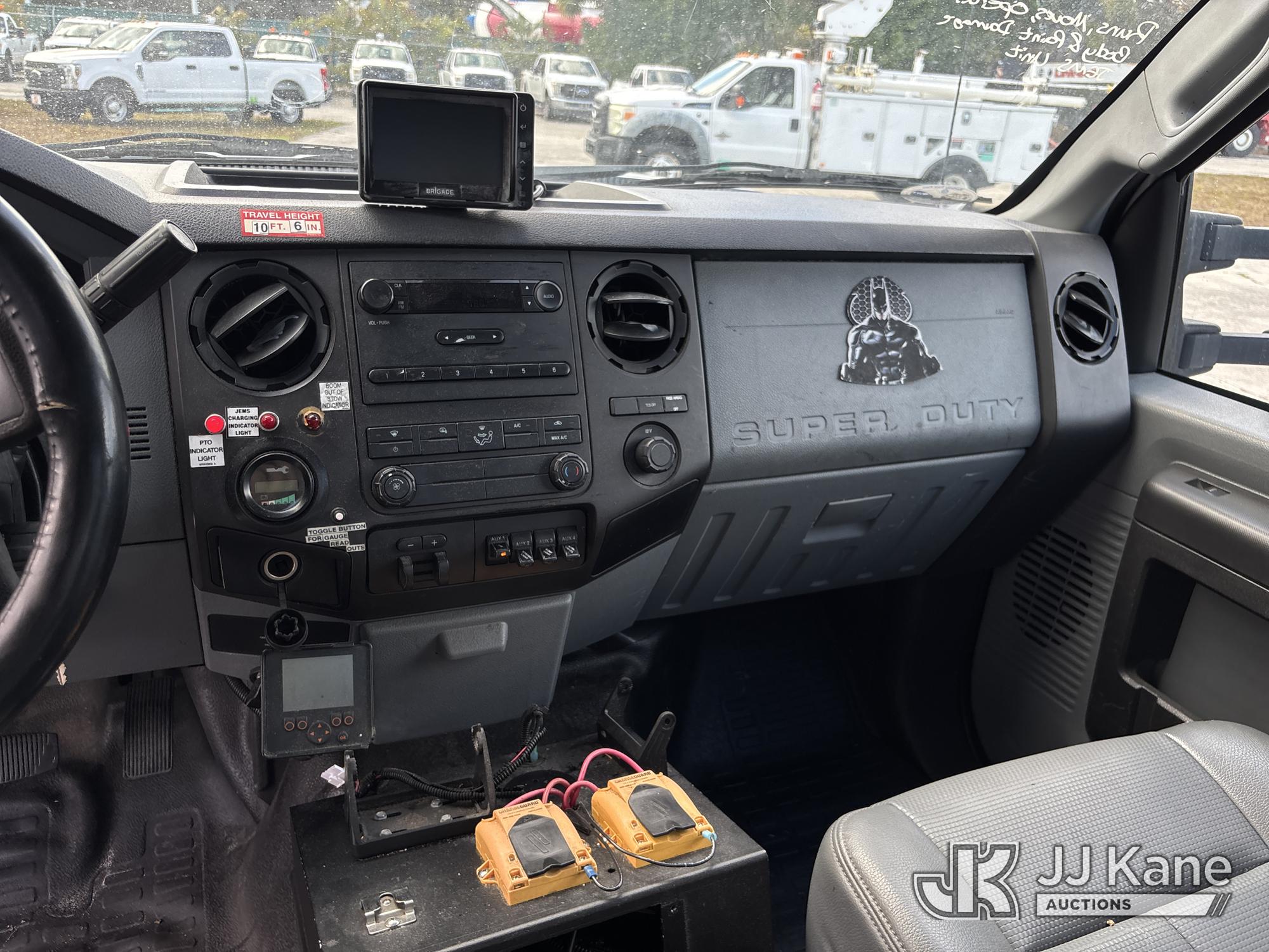 Altec AT40G, 45 ft, Articulating & Telescopic Bucket s/n 1014EY0806, with single-man bucket, mounted behind cab on 2015 Ford F-550 Service Truck, 6.7L diesel, Auto, A/C, with Jobsite Energy Management System is an integrated plug-in system that uses stored electrical energy to power the aerial device, tools and exportable power, and provides cab comfort. The energy storage system is recharged by plugging into shore power or by the truck’s internal combustion engine., (90,915 miles) JEMS Unit (Runs, Moves, & Operates With Jump) (Body & Paint Damage, Missing Altec Plaque) (FL Residents Purchasing Titled Items - tax, title & registration fees will be collected at the maximum rate of $400.00 under 25,999 and $800.00 for Over 26,000 and $250.00 trailers - Proof of insurance is mandatory; Out of State Residents Purchasing Title Items - tax will be collected based upon your state rate.) This is a Titled Item*