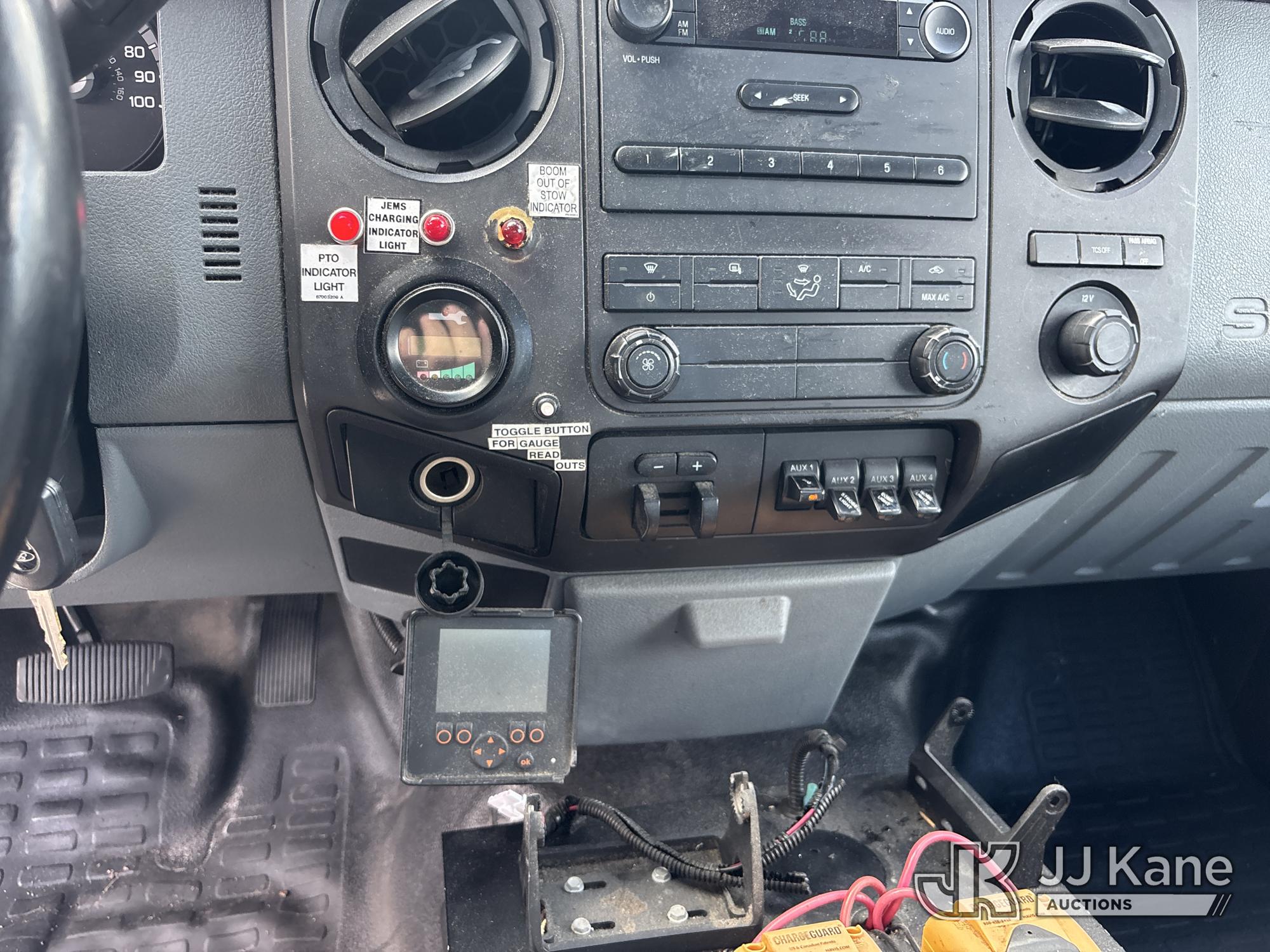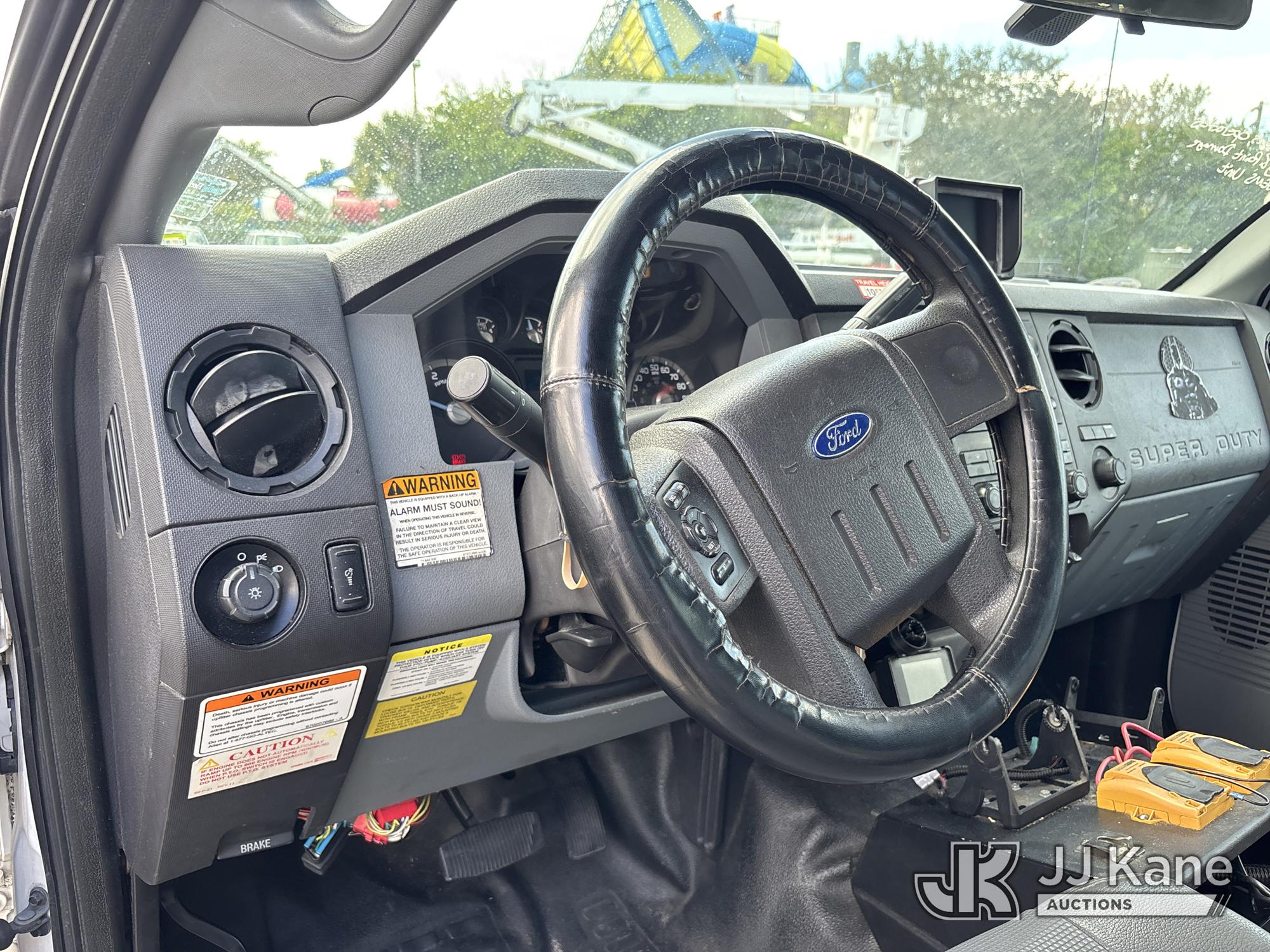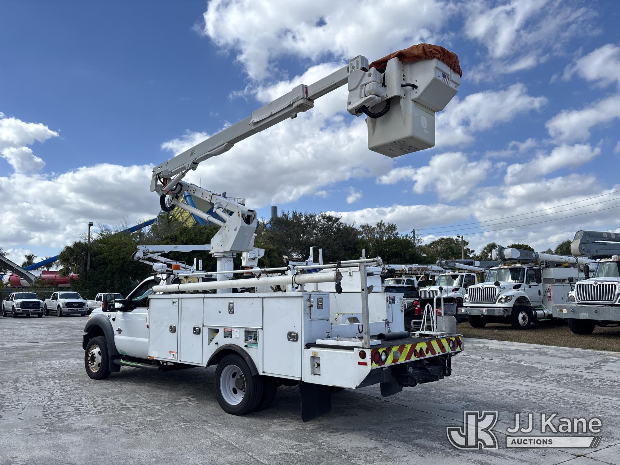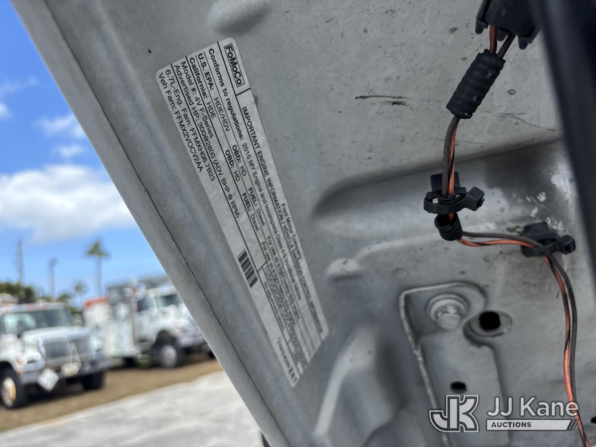 Altec AT40G, 45 ft, Articulating & Telescopic Bucket s/n 1014EY0806, with single-man bucket, mounted behind cab on 2015 Ford F-550 Service Truck, 6.7L diesel, Auto, A/C, with Jobsite Energy Management System is an integrated plug-in system that uses stored electrical energy to power the aerial device, tools and exportable power, and provides cab comfort. The energy storage system is recharged by plugging into shore power or by the truck’s internal combustion engine., (90,915 miles) JEMS Unit (Runs, Moves, & Operates With Jump) (Body & Paint Damage, Missing Altec Plaque) (FL Residents Purchasing Titled Items - tax, title & registration fees will be collected at the maximum rate of $400.00 under 25,999 and $800.00 for Over 26,000 and $250.00 trailers - Proof of insurance is mandatory; Out of State Residents Purchasing Title Items - tax will be collected based upon your state rate.) This is a Titled Item*