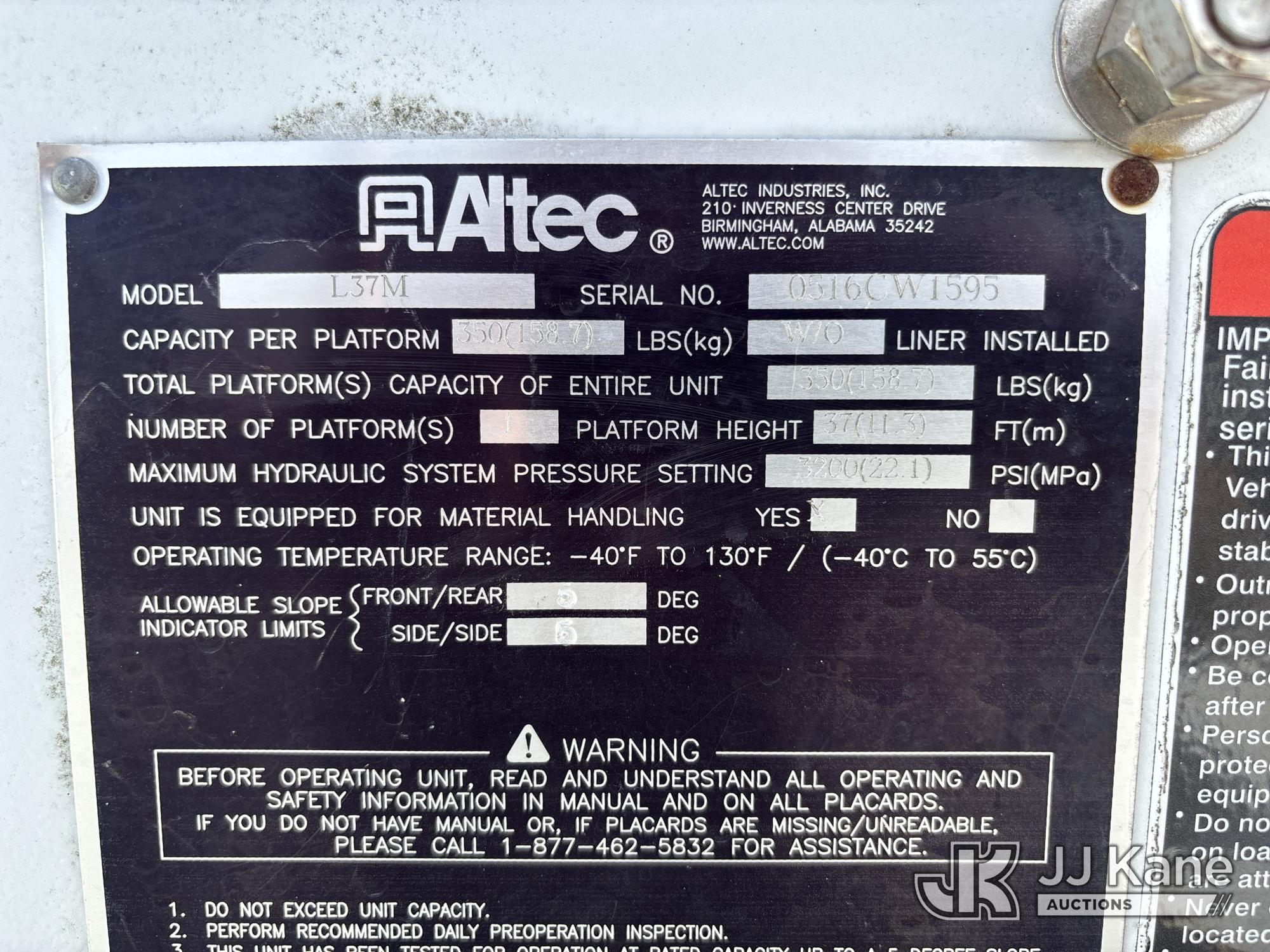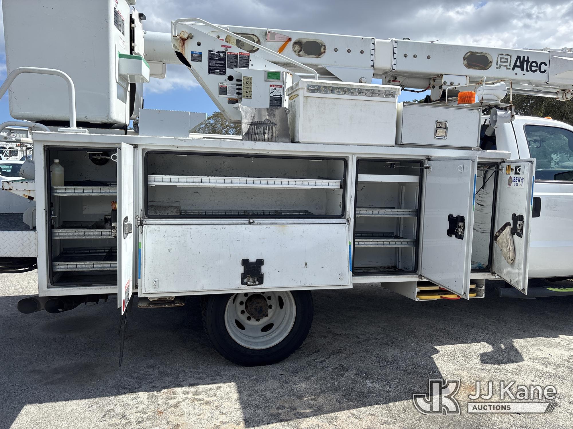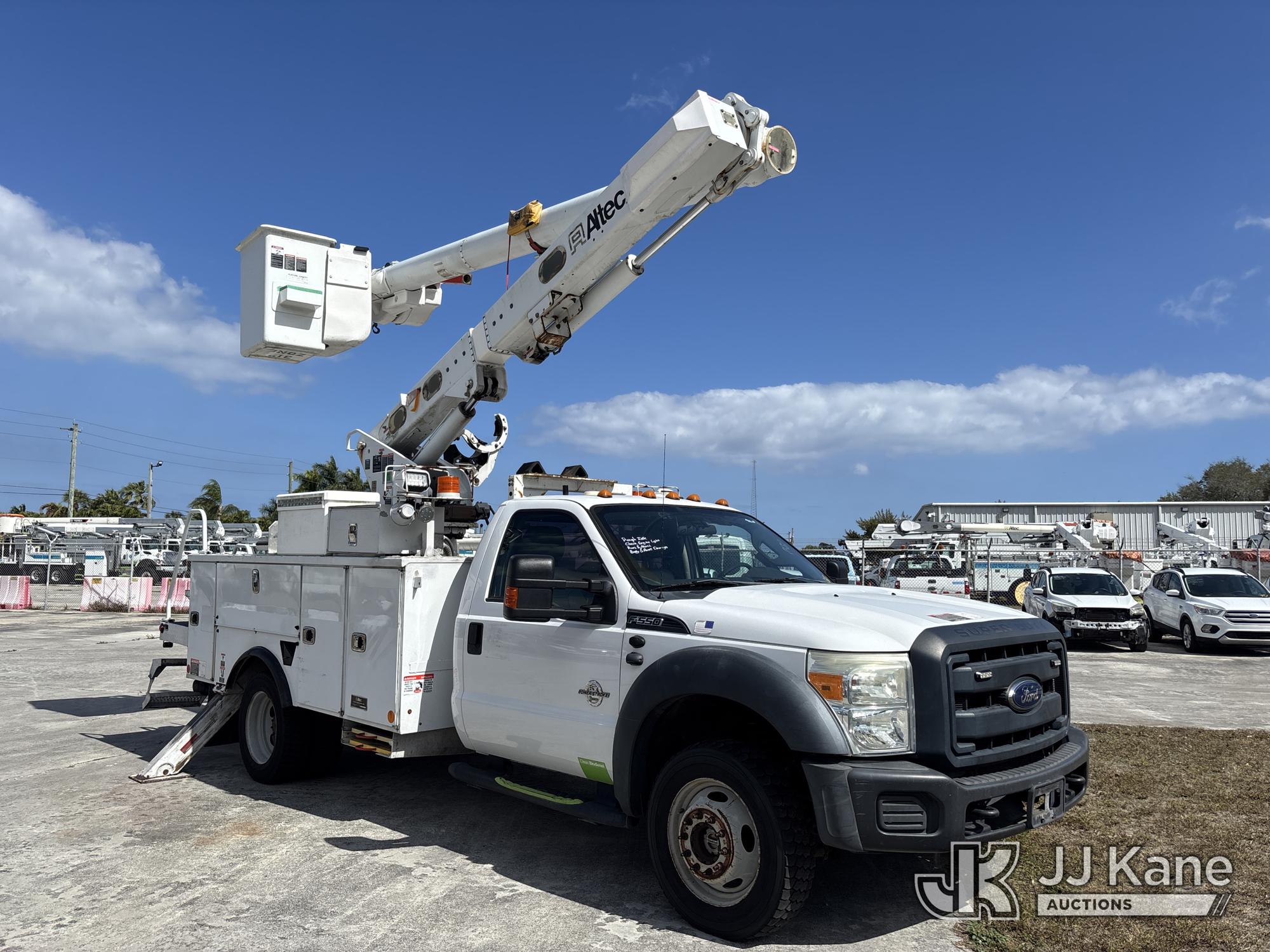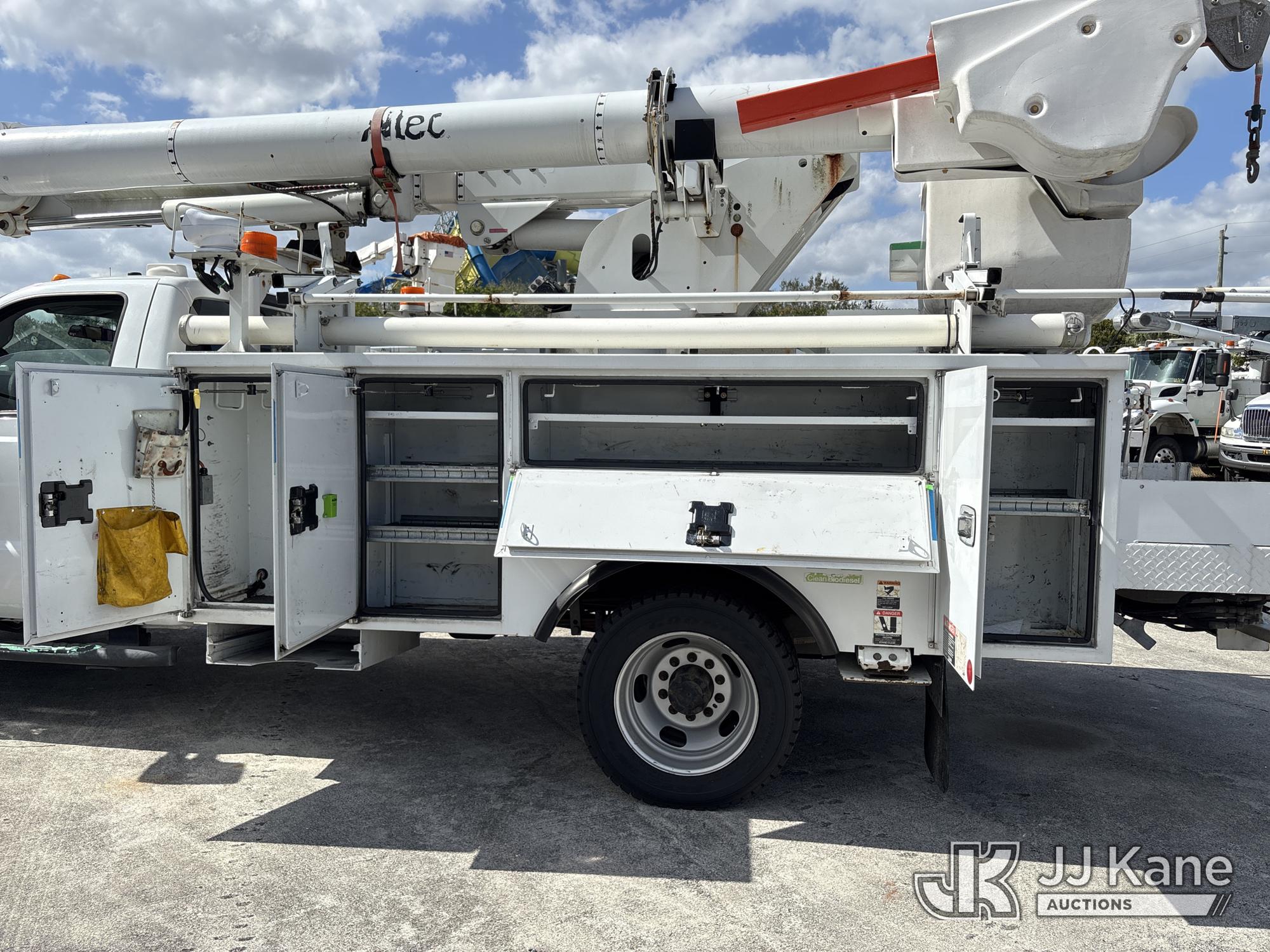 Altec L37M, 42 ft, Over-Center Material Handling Bucket Truck s/n 0516CW1595, with single-man bucket, rear mounted on 2016 Ford F550 4x4 Service Truck, 6.7L diesel, Auto, A/C, (157,970 miles) (Runs, Moves & Upper Operates) (Jump To Start, Smokes, Engine Issues, Rough Idle, Check Engine Light On, Service Light On, Body/Paint Damage) (FL Residents Purchasing Titled Items - tax, title & registration fees will be collected at the maximum rate of $400.00 under 25,999 and $800.00 for Over 26,000 and $250.00 trailers - Proof of insurance is mandatory; Out of State Residents Purchasing Title Items - tax will be collected based upon your state rate.) This is a Titled Item*