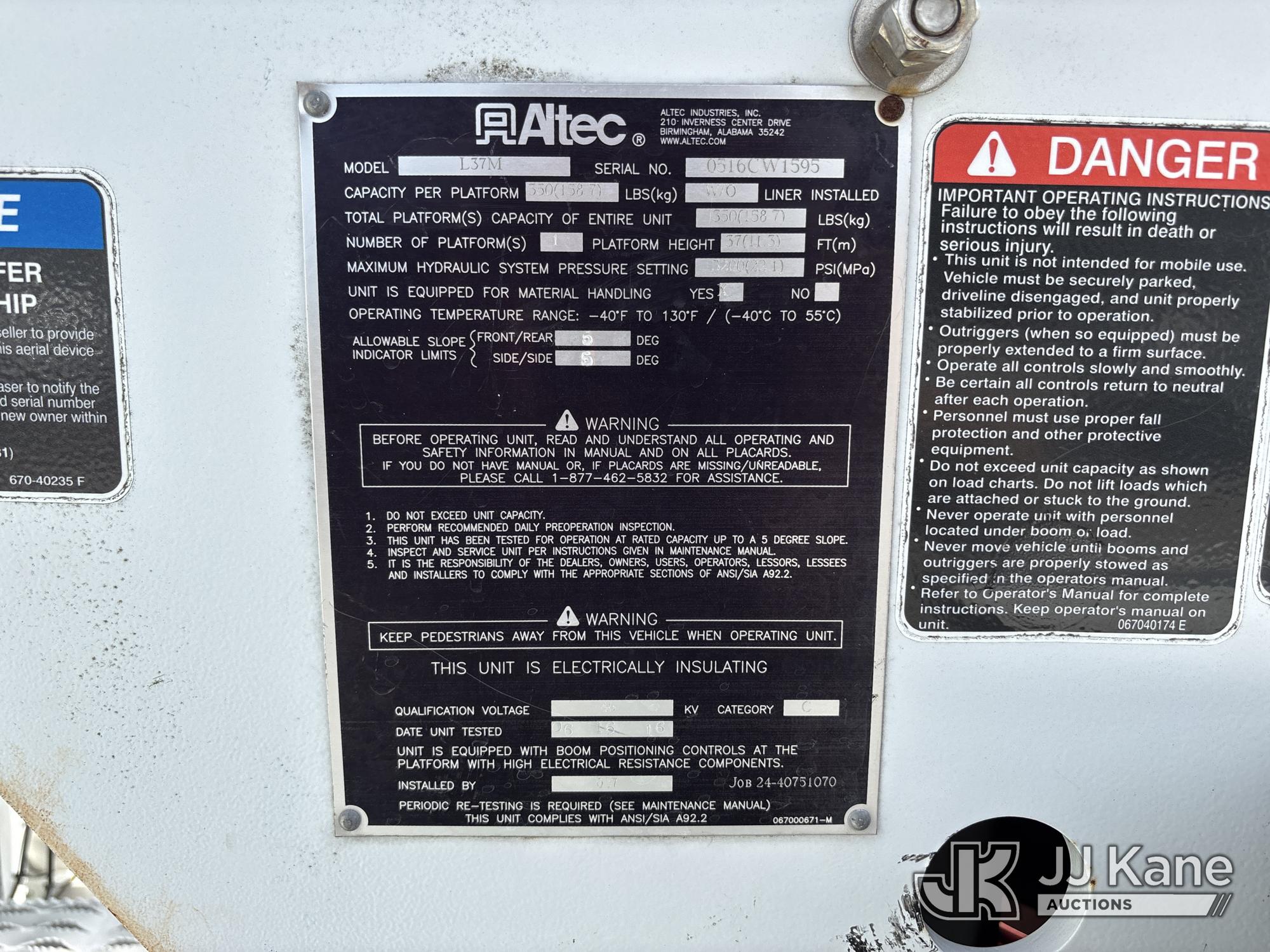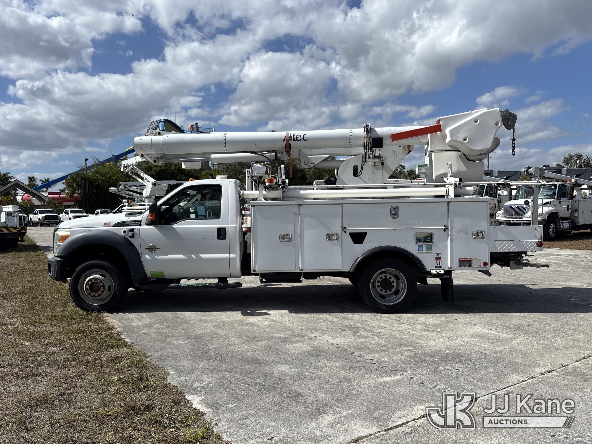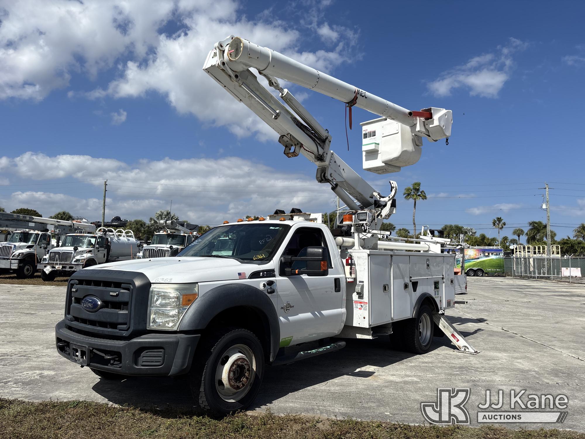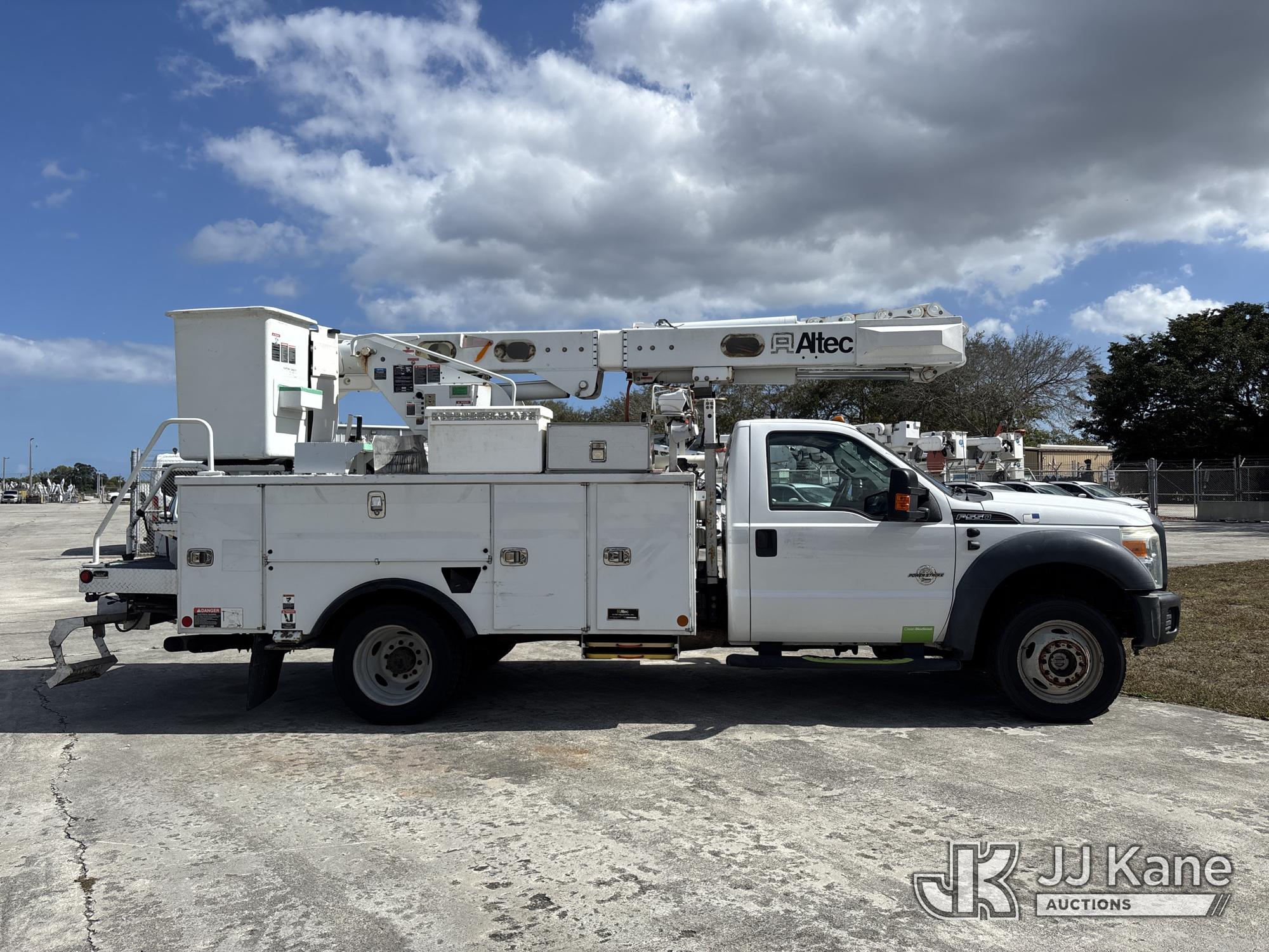 Altec L37M, 42 ft, Over-Center Material Handling Bucket Truck s/n 0516CW1595, with single-man bucket, rear mounted on 2016 Ford F550 4x4 Service Truck, 6.7L diesel, Auto, A/C, (157,970 miles) (Runs, Moves & Upper Operates) (Jump To Start, Smokes, Engine Issues, Rough Idle, Check Engine Light On, Service Light On, Body/Paint Damage) (FL Residents Purchasing Titled Items - tax, title & registration fees will be collected at the maximum rate of $400.00 under 25,999 and $800.00 for Over 26,000 and $250.00 trailers - Proof of insurance is mandatory; Out of State Residents Purchasing Title Items - tax will be collected based upon your state rate.) This is a Titled Item*