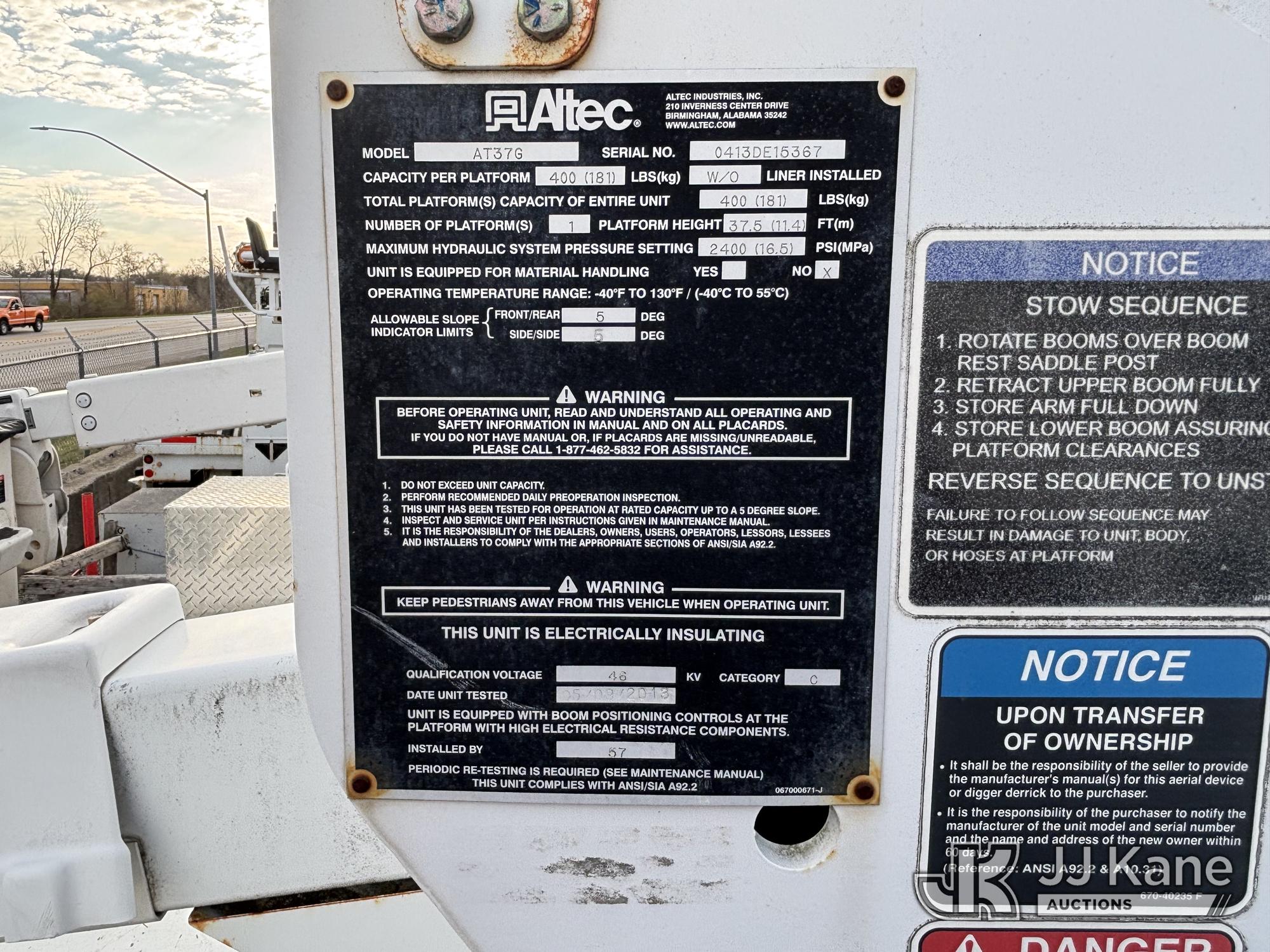Altec AT37G, 42 ft, Articulating & Telescopic Bucket Truck s/n 0413DE15367, with single-man bucket, mounted behind cab on 2013 Ford F550 2WD Service Truck, 6.7L diesel, Auto, A/C, (24,210 miles) (Not Running, Condition Unknown, Upper Condition Unknown, Must Tow, Buyer Must Load) This is a Titled Item*