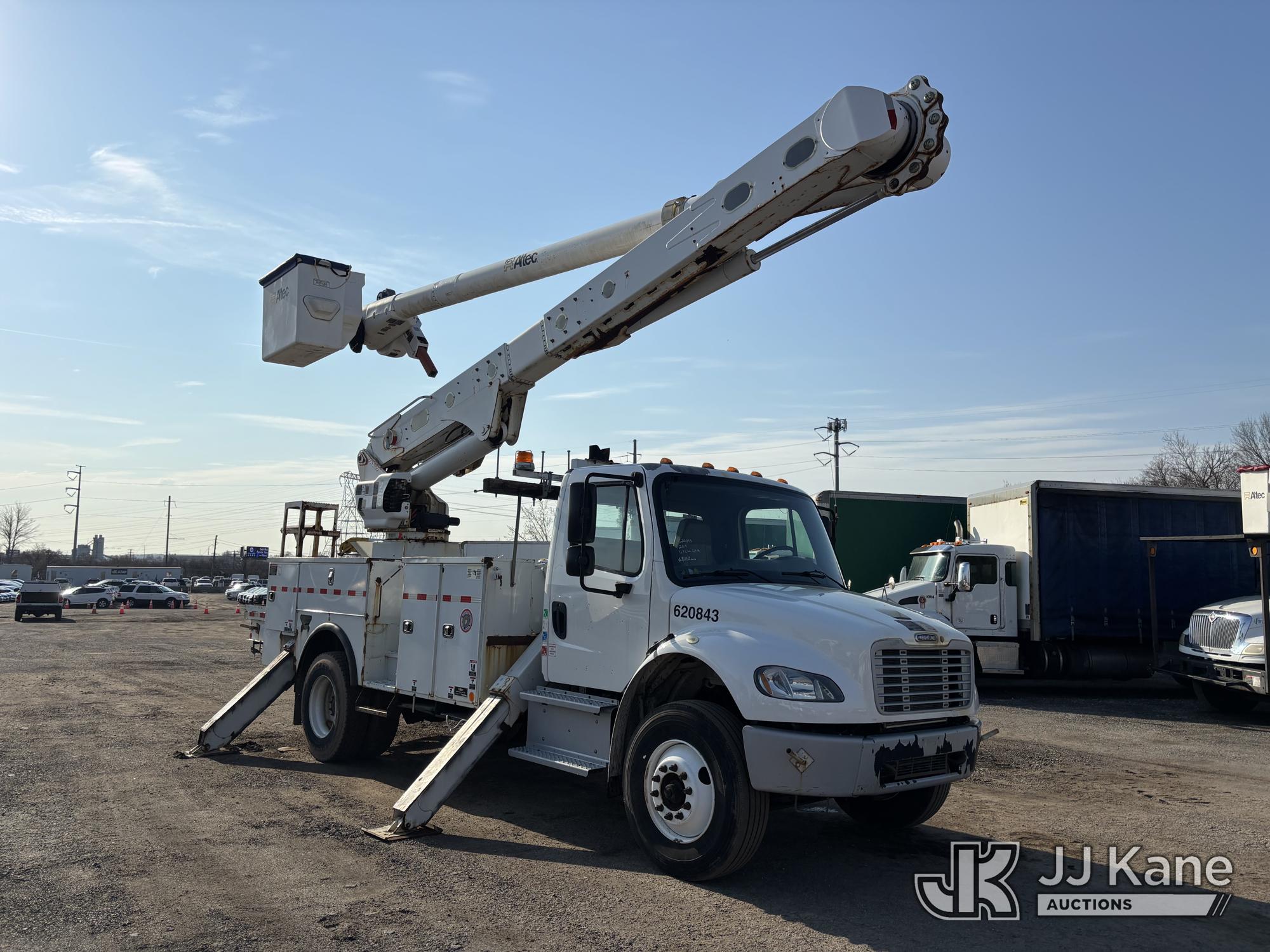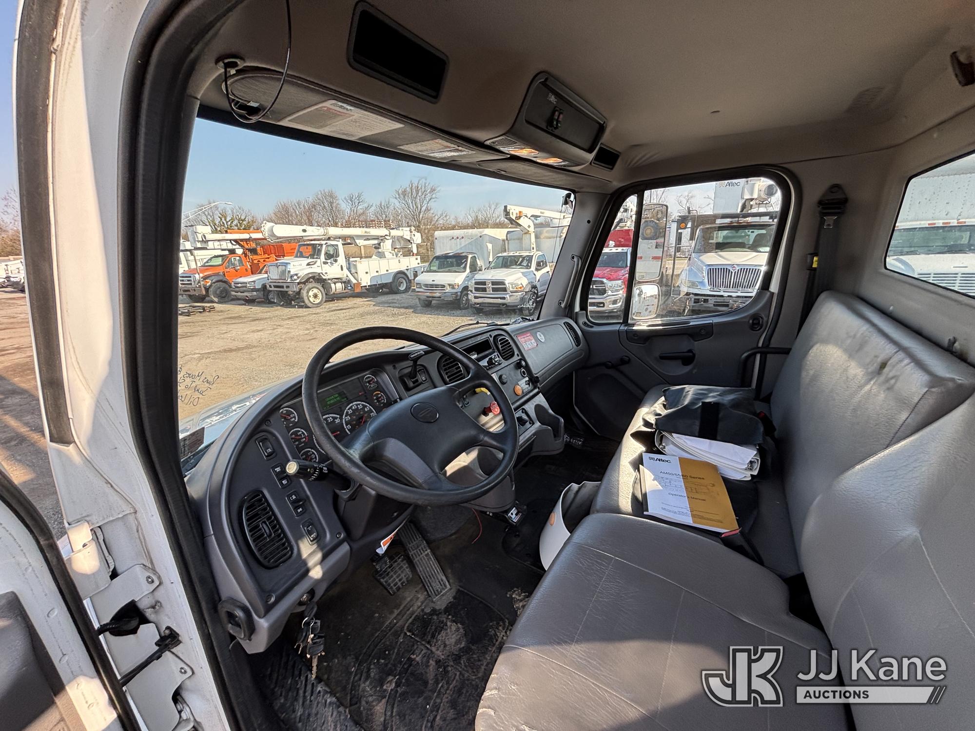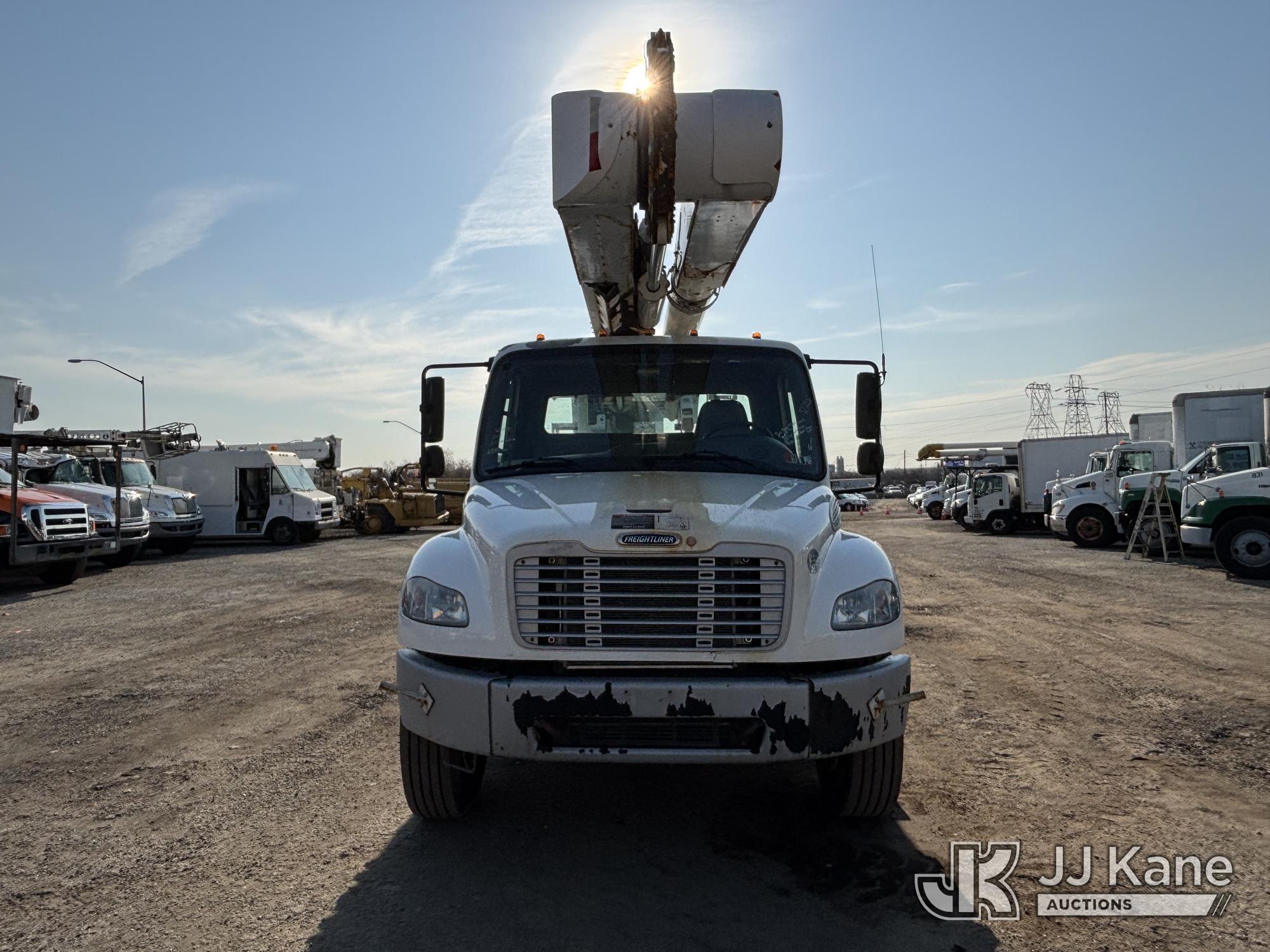 Altec AM55E, 60 ft, Over-Center Material Handling Bucket s/n 0317DM6677, with two-man bucket, rear mounted on 2018 Freightliner M2 106 Utility Truck, 6.7L diesel, Auto, A/C, (65,162 miles) (Runs Moves & Upper Operates, Jump To Start, Oil Leak Under Engine, Hydraulic Leak At Rear Outrigger Levers) This is a Titled Item*