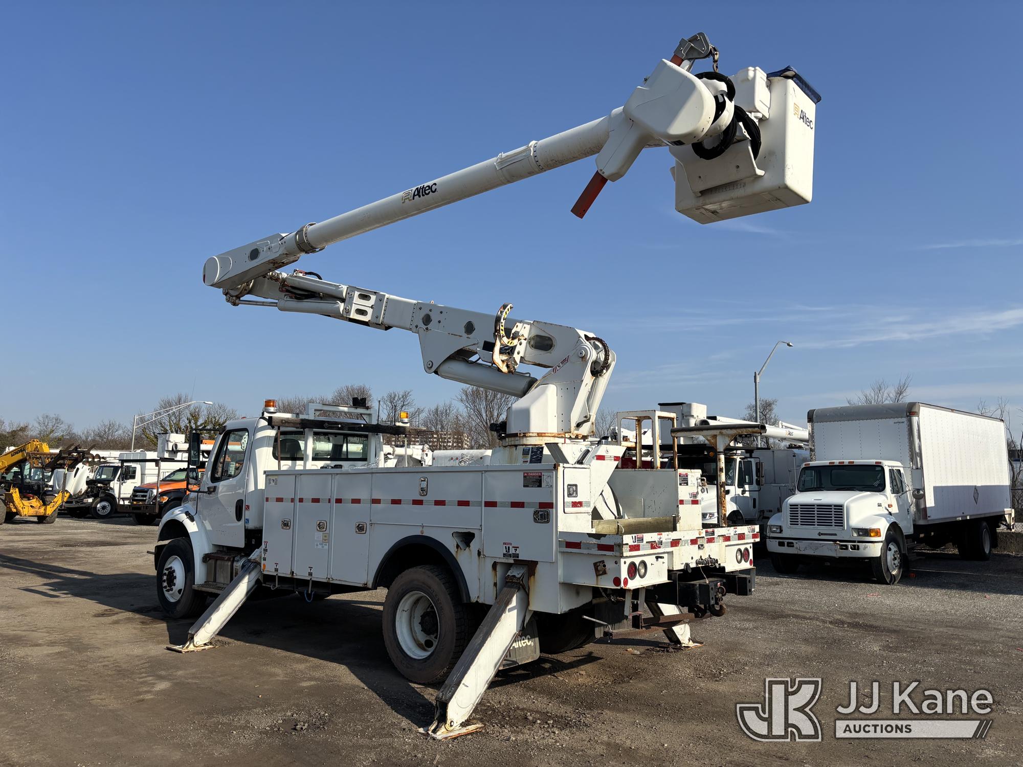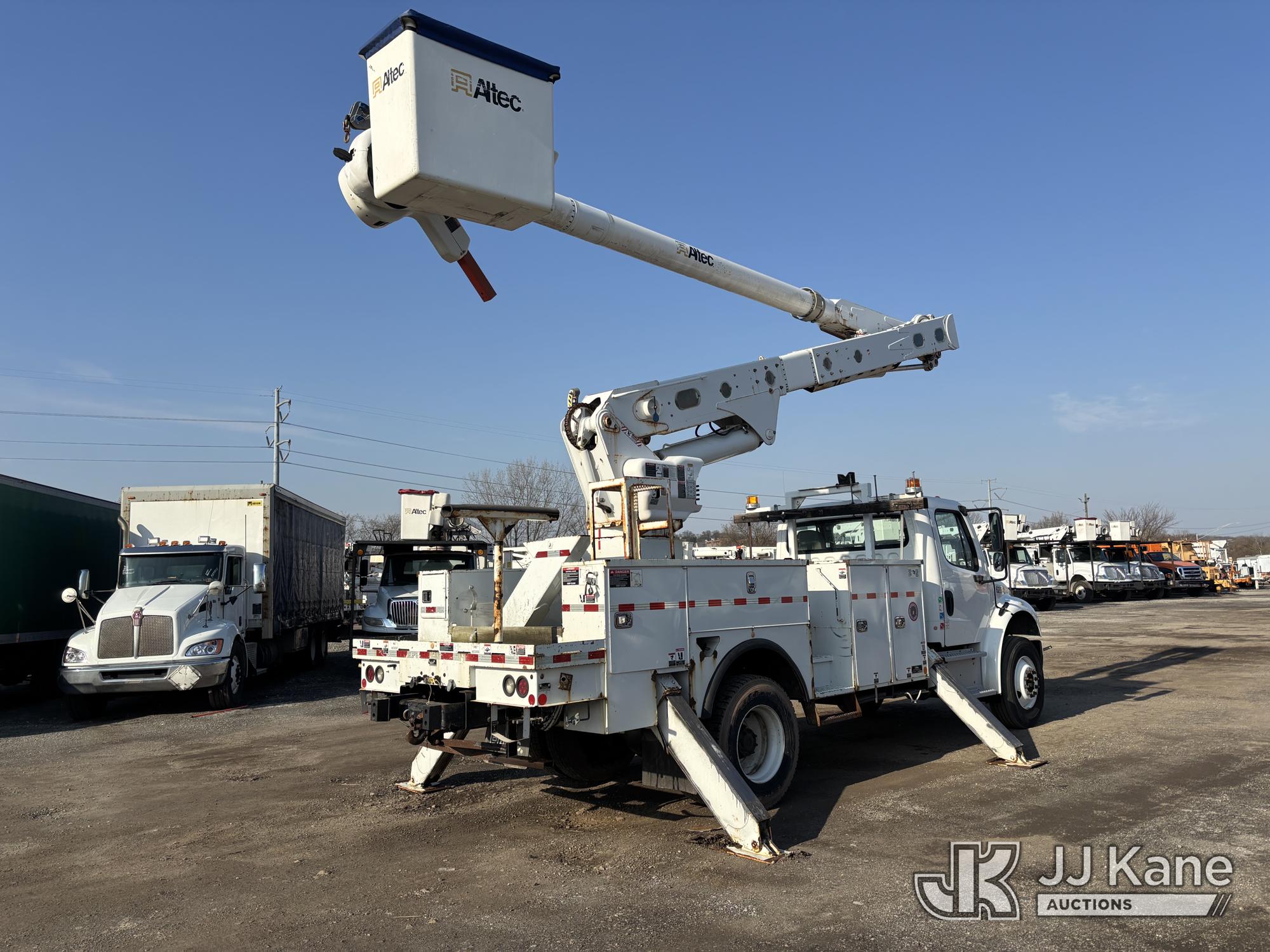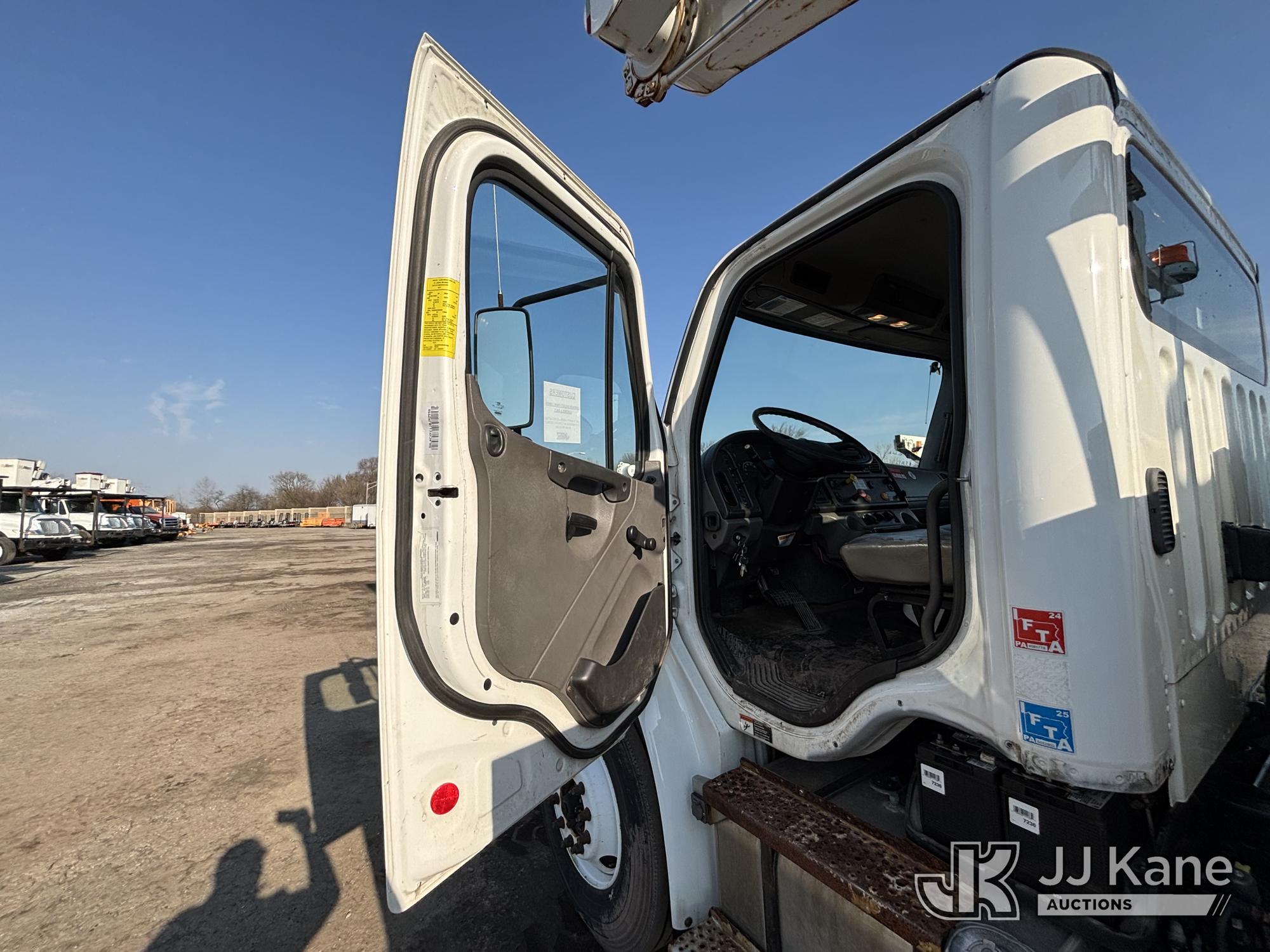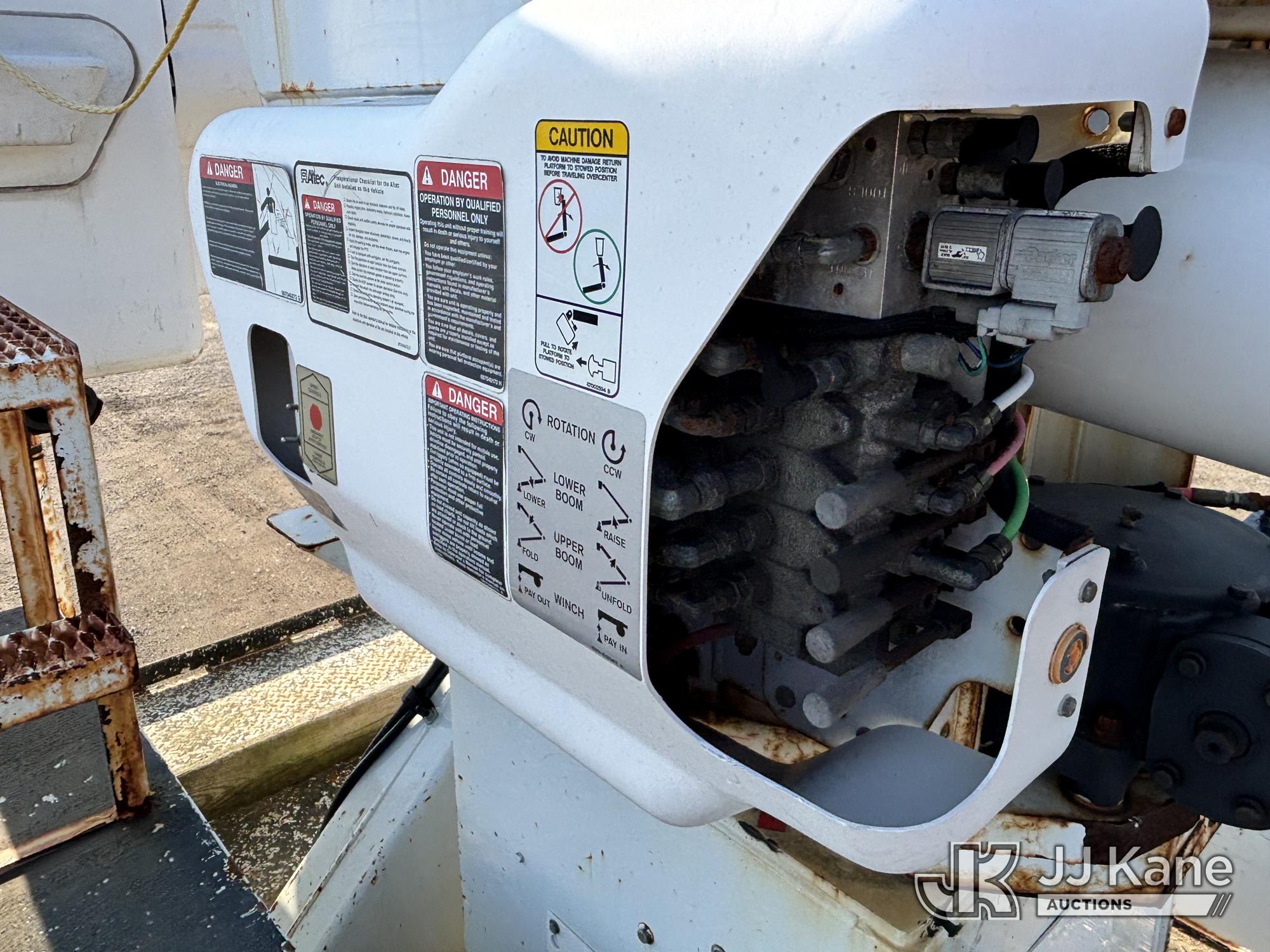 Altec AM55E, 60 ft, Over-Center Material Handling Bucket s/n 0317DM6677, with two-man bucket, rear mounted on 2018 Freightliner M2 106 Utility Truck, 6.7L diesel, Auto, A/C, (65,162 miles) (Runs Moves & Upper Operates, Jump To Start, Oil Leak Under Engine, Hydraulic Leak At Rear Outrigger Levers) This is a Titled Item*