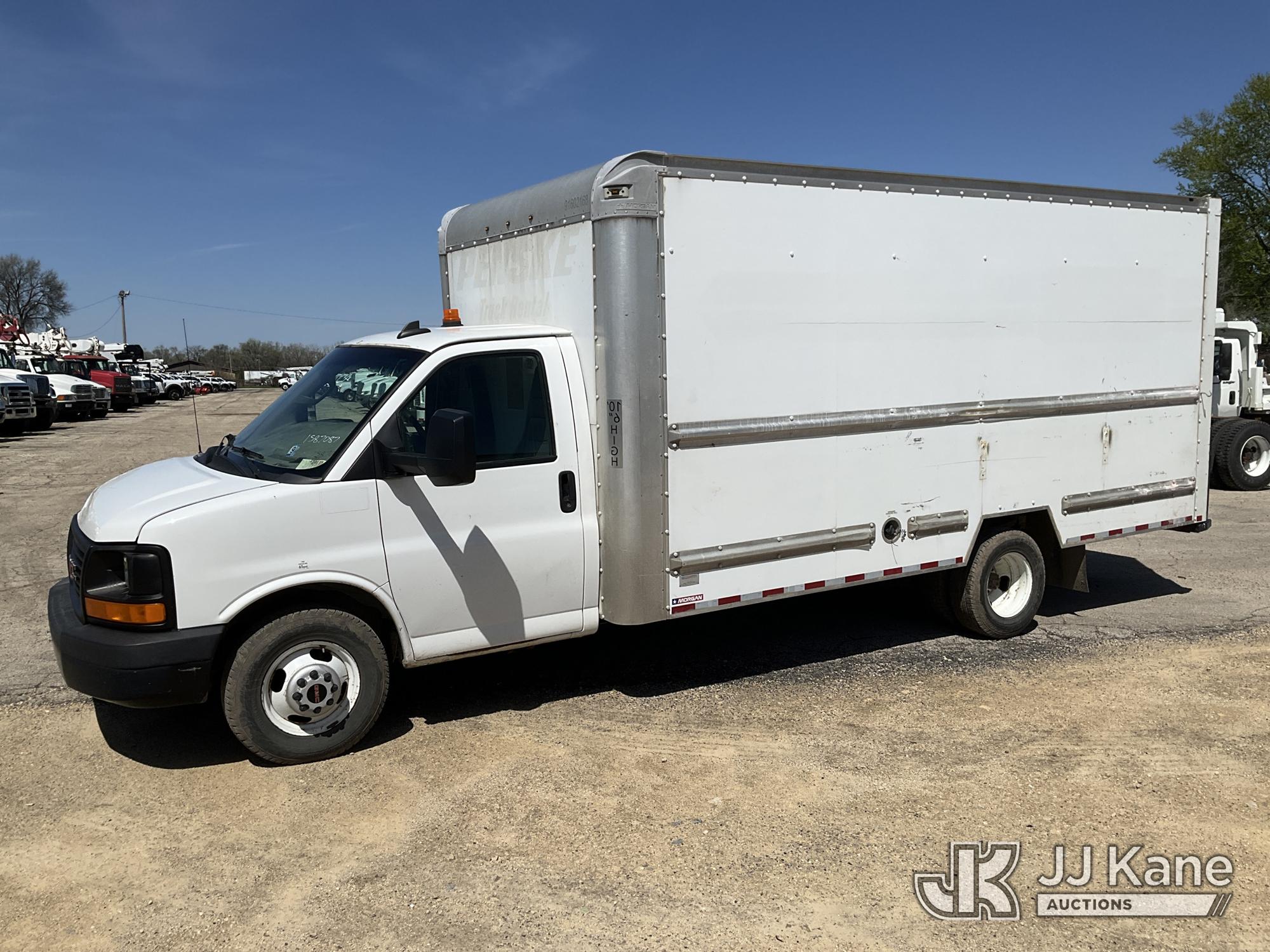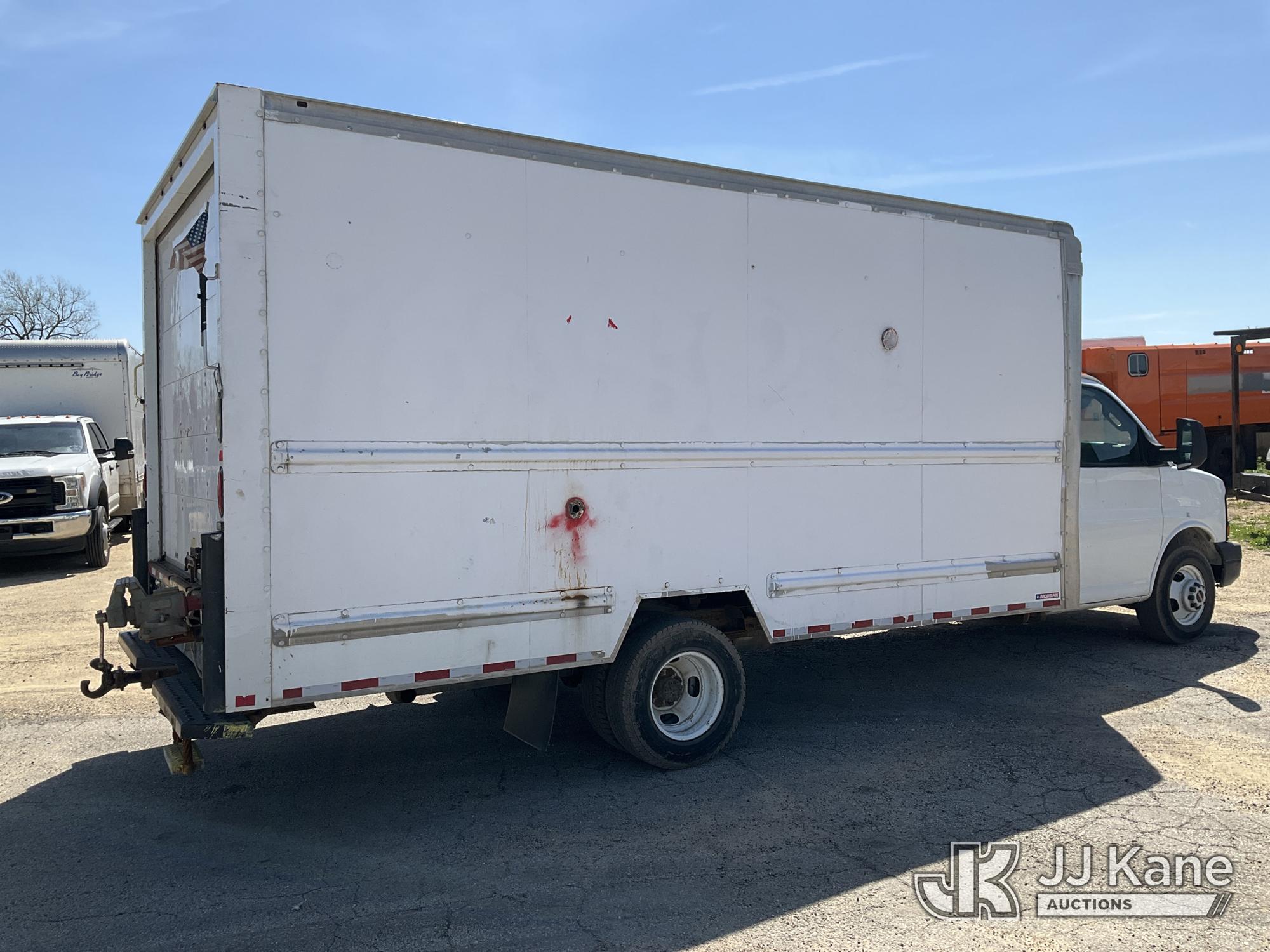 2016 GMC Savana G3500 Van Body Truck, 8-cyl gas, 6-Speed Automatic, A/C, with 16ft body, (181,642 miles) (Runs & Moves) (Dash Indicator On, Exterior Defects-see photos, Exhaust System Decects) This is a Titled Item*