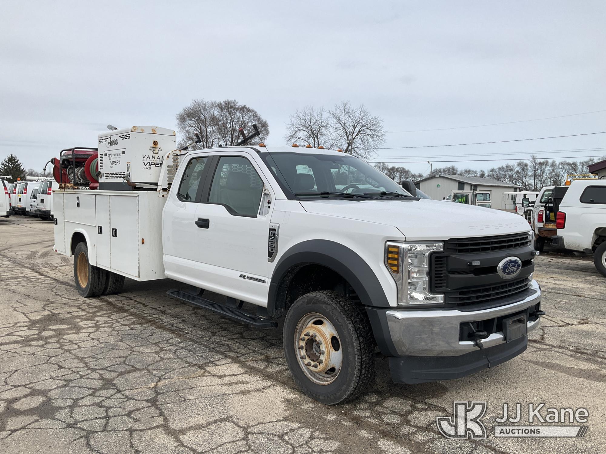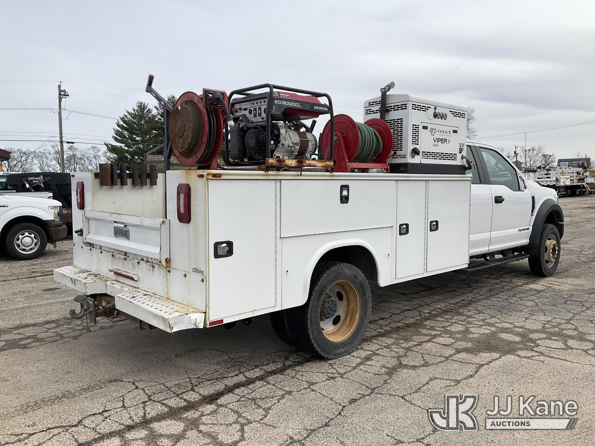 2019 Ford F-450 SD Extended-Cab Service Truck, 6.7L diesel, 4WD, Auto, A/C, with Honda EG5000CL gas generator, Vanair gas air compressor, (125,078 miles) (Runs & Moves) (Dash Warning Indicators On, Miscellaneous Defects) (Reads 7,664 hours) This is a Titled Item*
