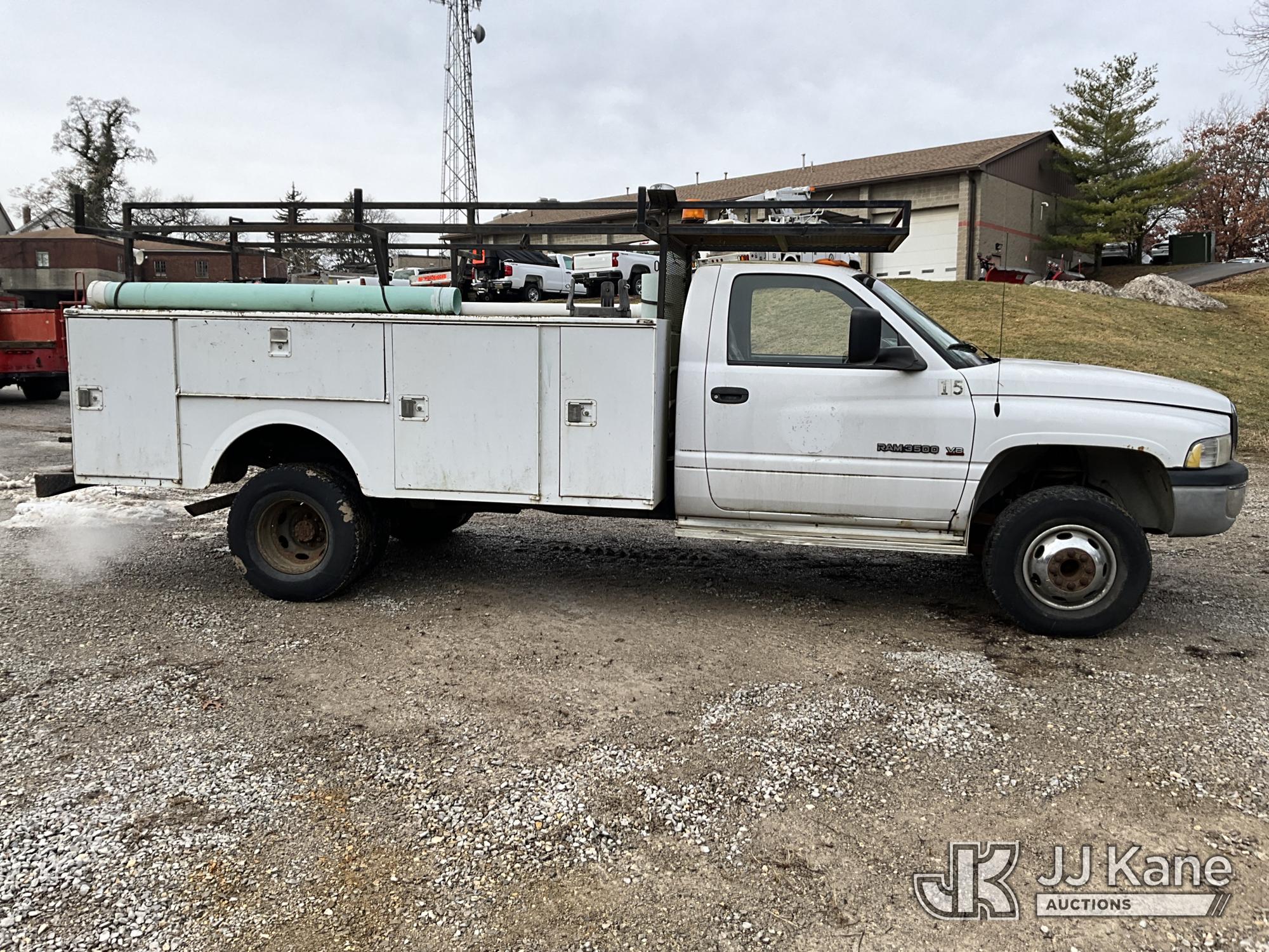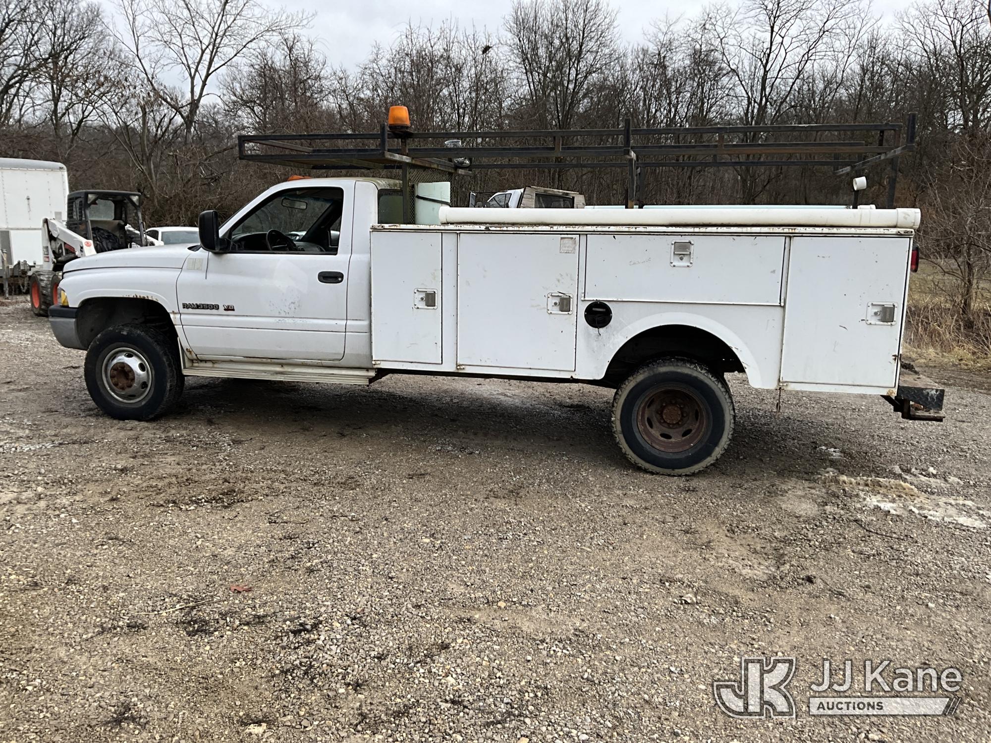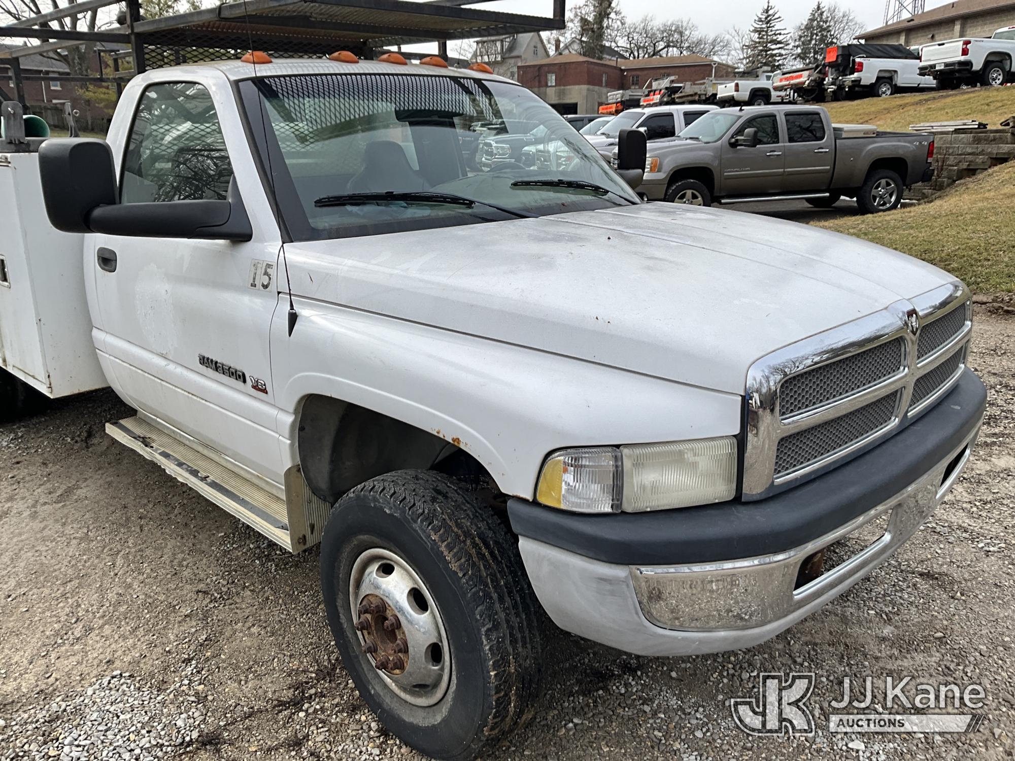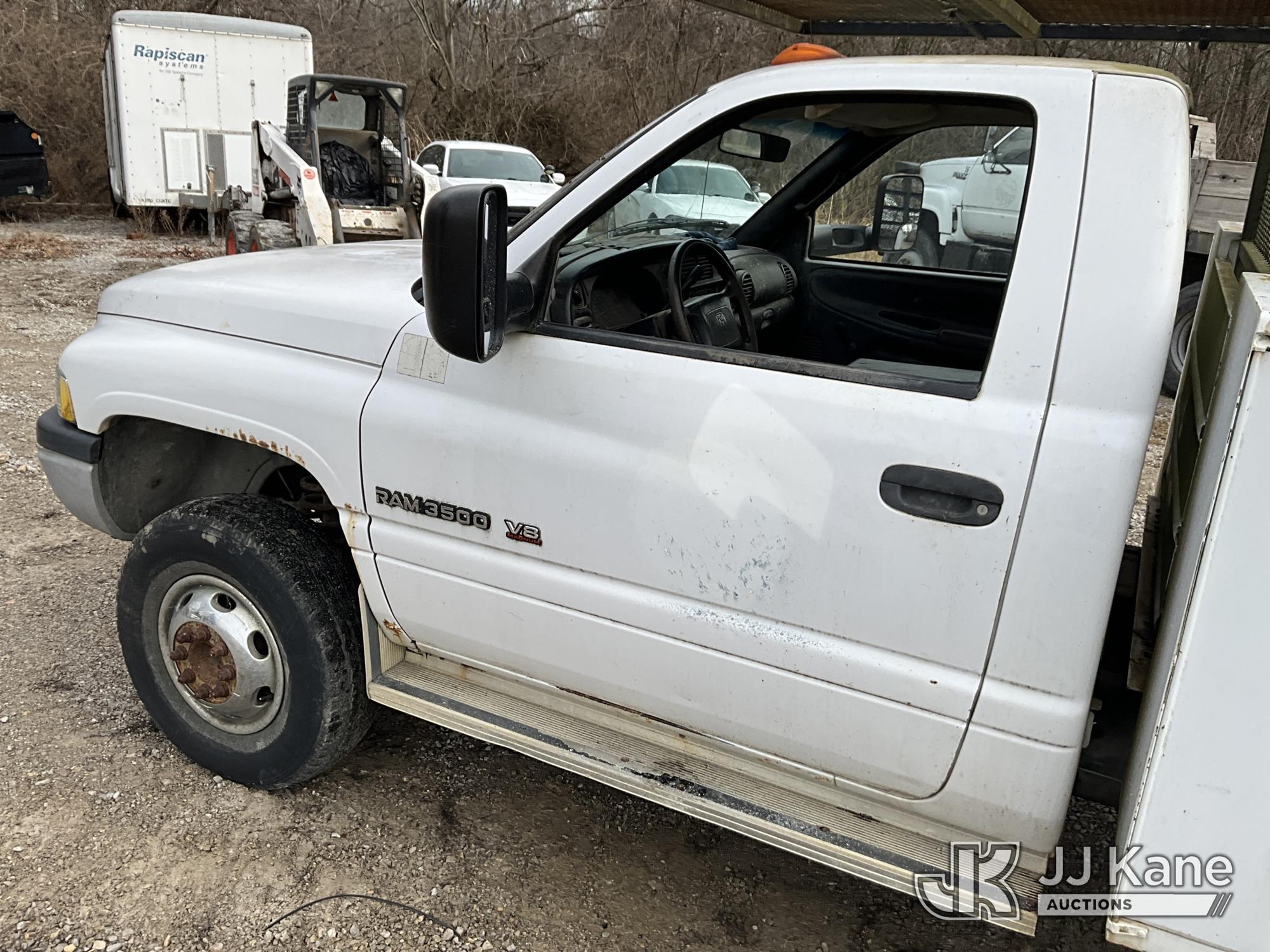 2001 Dodge Ram 3500 Service Truck, 5.9L V8 OHV 16V gas, RWD, Auto, A/C, (Exempt from Odometer Disclosure - Reads 48,449 miles) (Runs & Moves) (ABS Light On, Exhaust Smokes) (Seller States: Transmission Slips) This is a Titled Item*