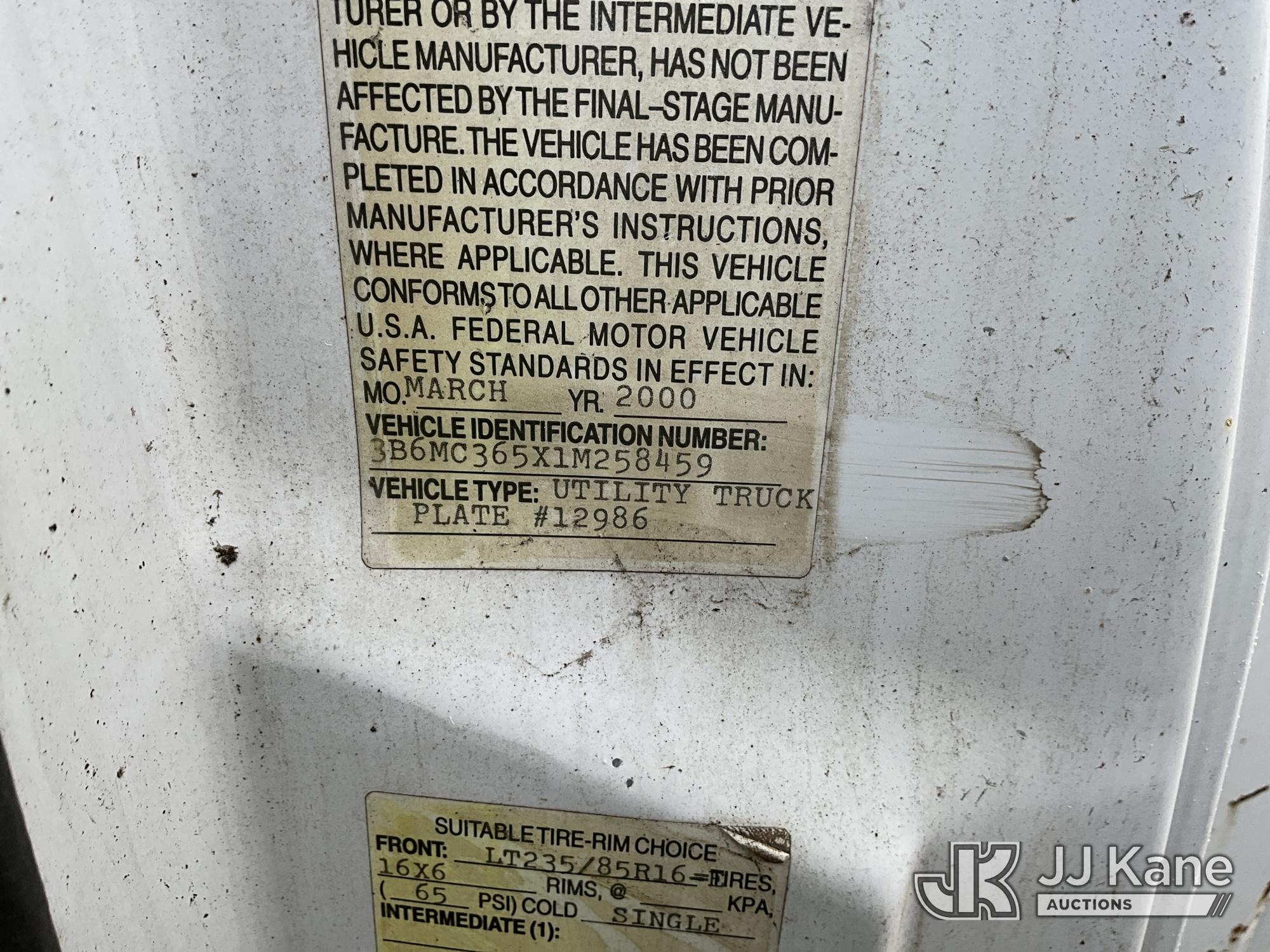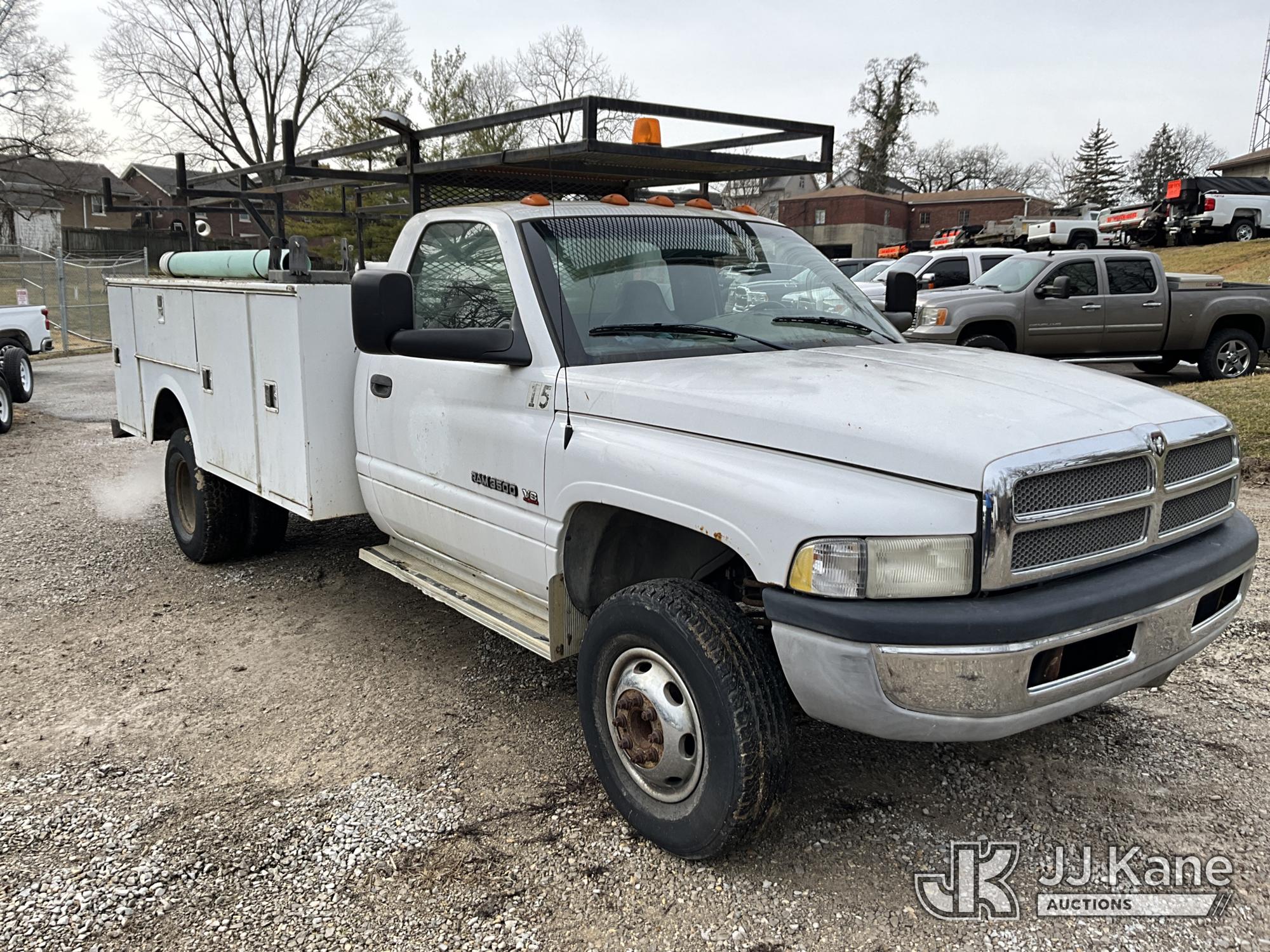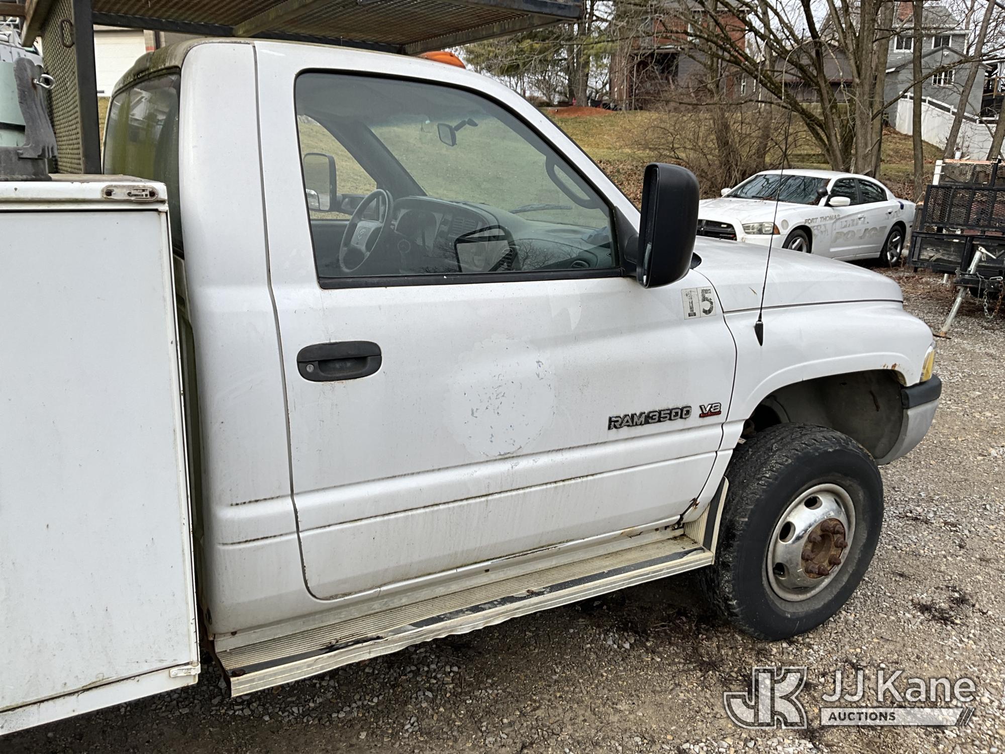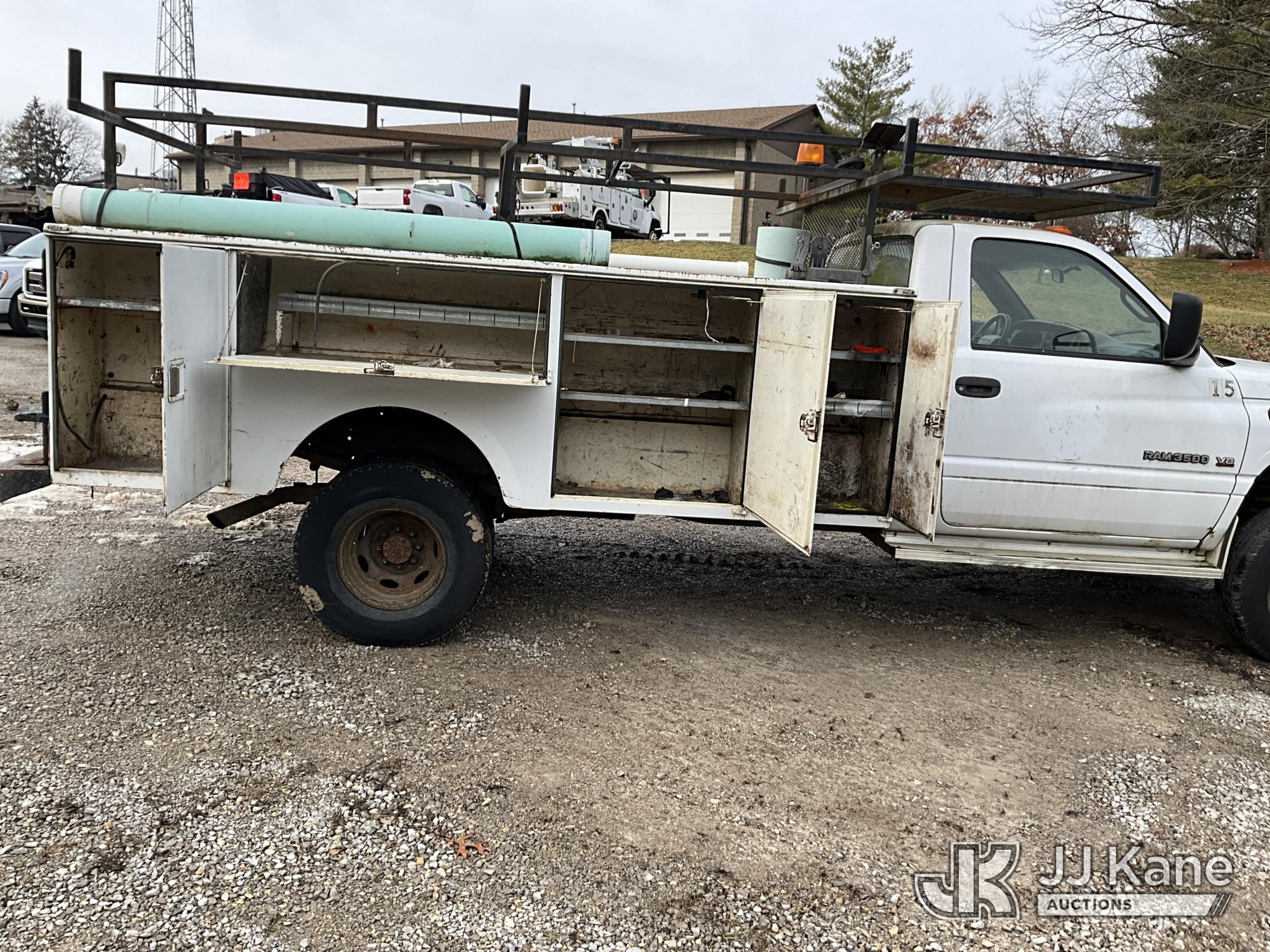 2001 Dodge Ram 3500 Service Truck, 5.9L V8 OHV 16V gas, RWD, Auto, A/C, (Exempt from Odometer Disclosure - Reads 48,449 miles) (Runs & Moves) (ABS Light On, Exhaust Smokes) (Seller States: Transmission Slips) This is a Titled Item*