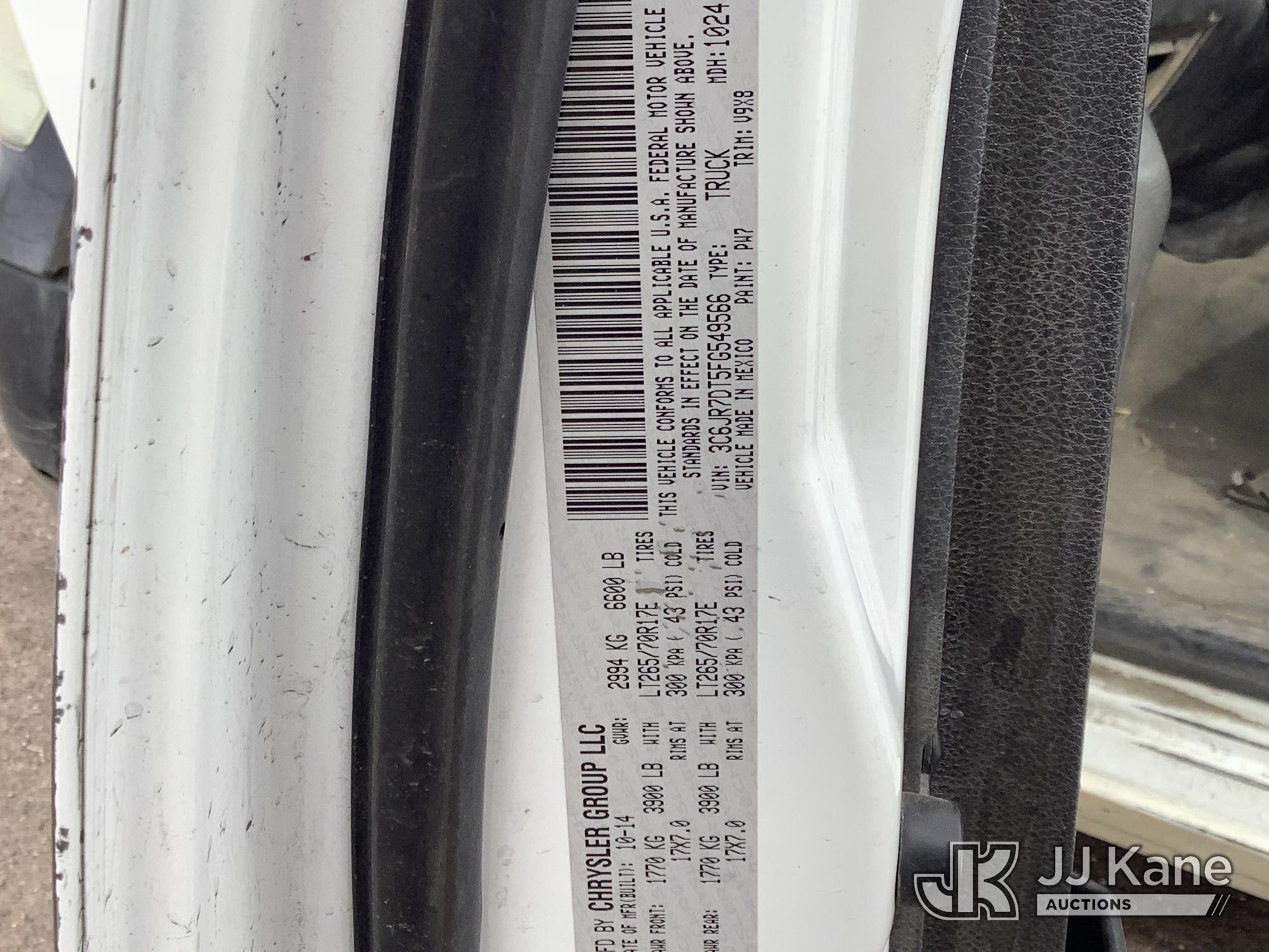 2015 RAM 1500 4x4 Pickup Truck, 8-cyl gas, Auto, A/C, (106,568 miles) (Runs & Moves) (Jump To Start, Does Not Stay Running, Body Damage) This is a Titled Item*