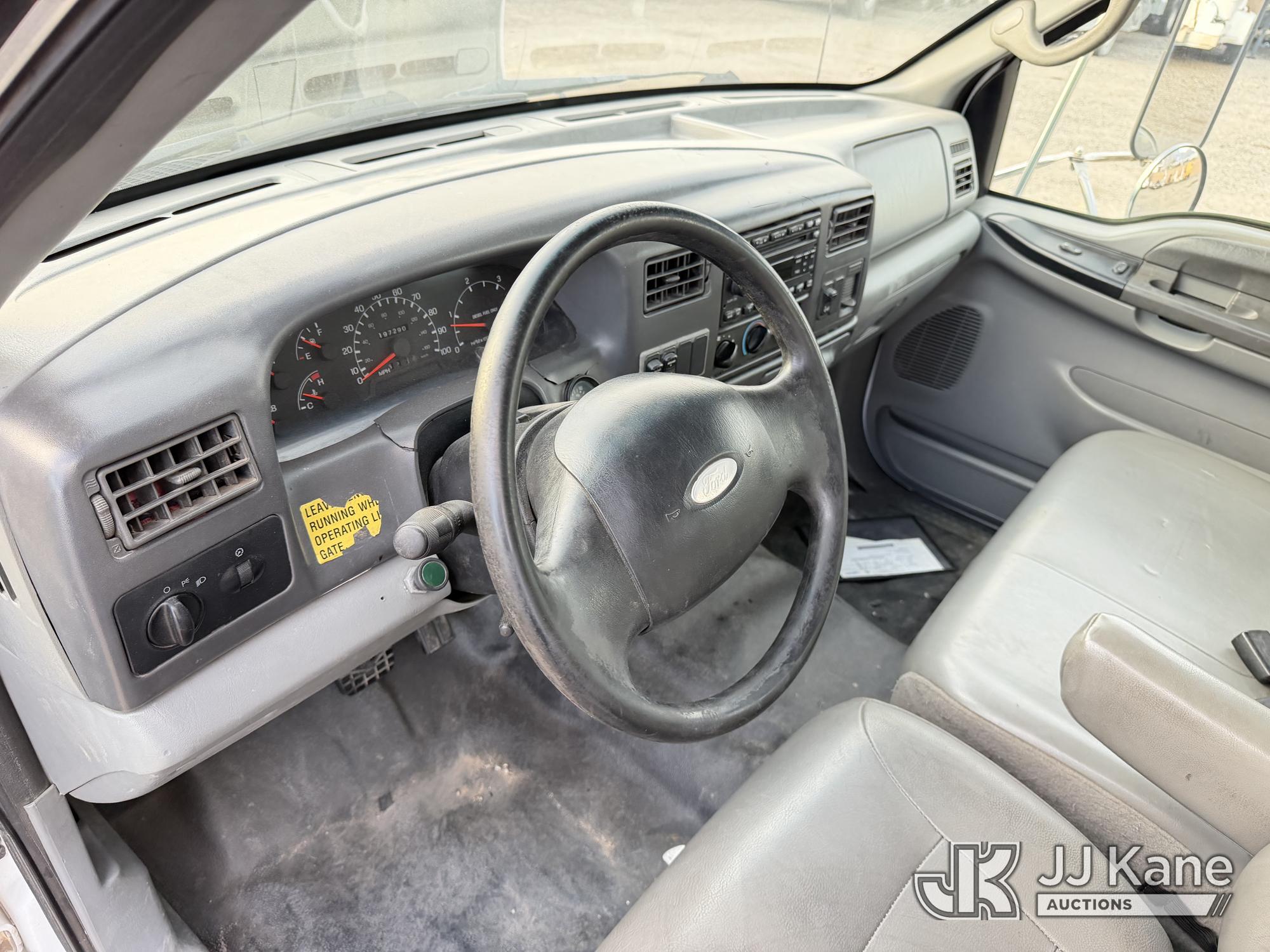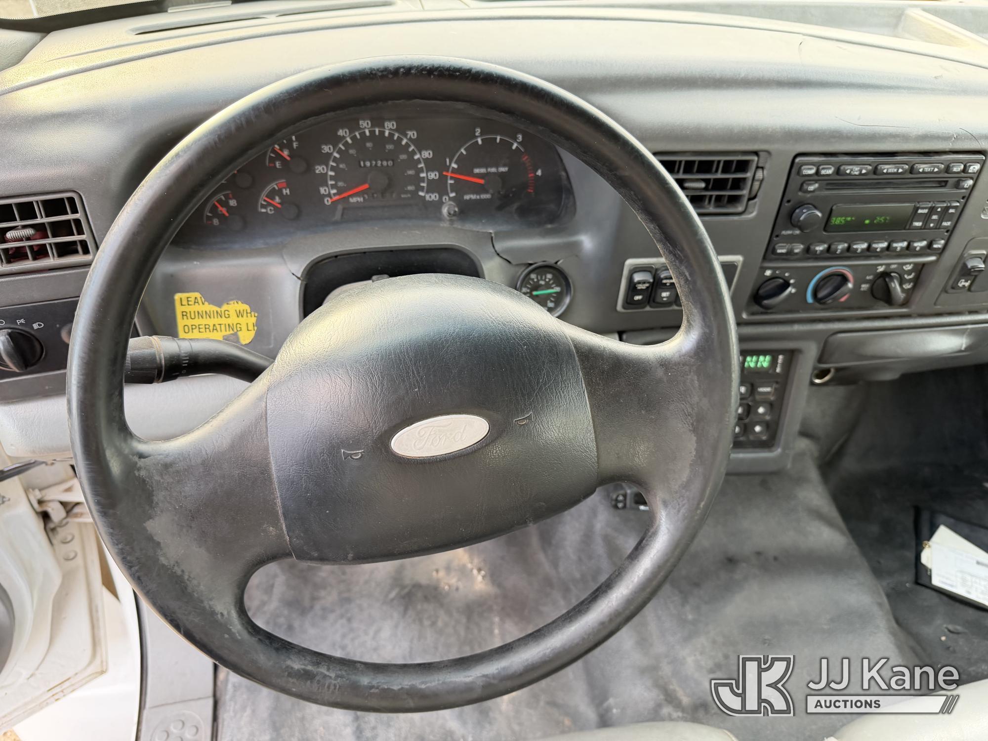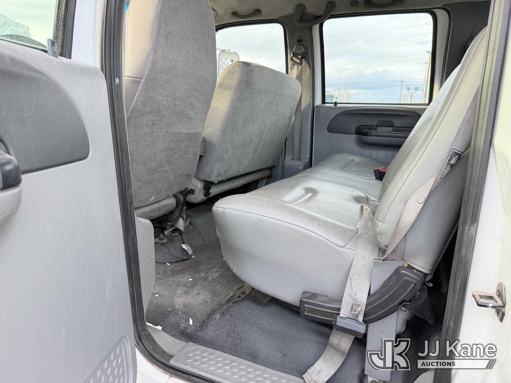 2007 Ford F-650 Crew-Cab Flatbed/Service Truck, 7.2L diesel, 4X2, Auto, A/C, with stake sides, lift gate, (197,290 miles) (Runs & Moves) (Front Bumper Bent) This is a Titled Item*