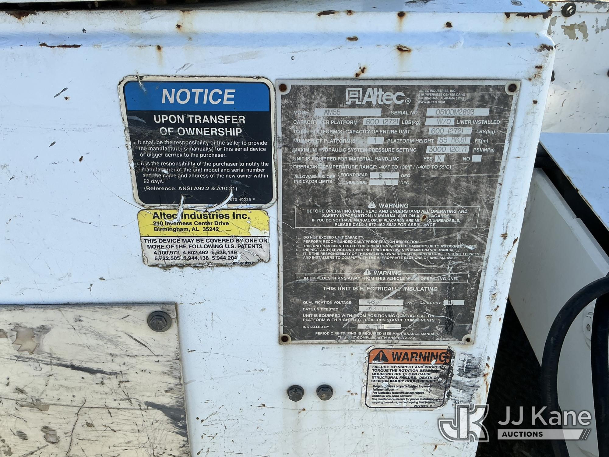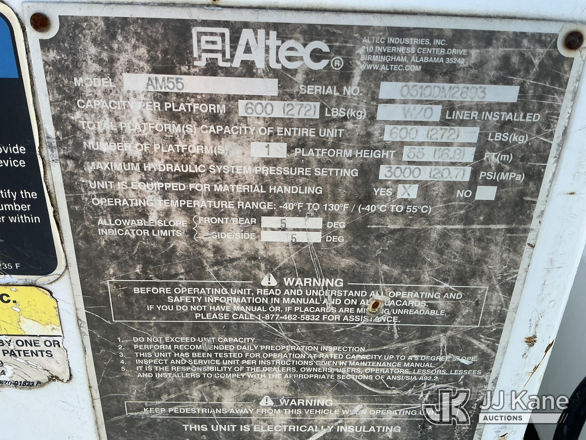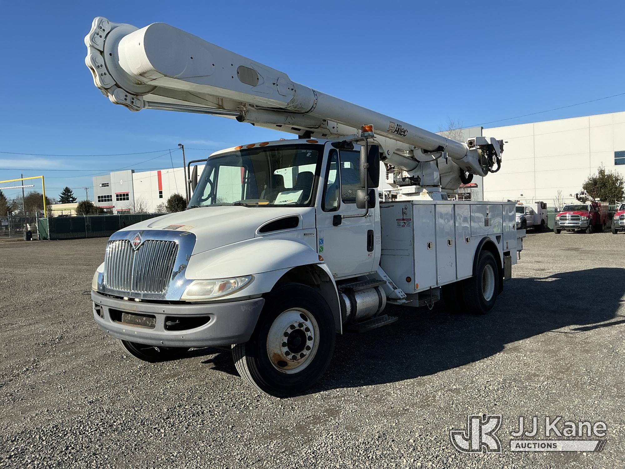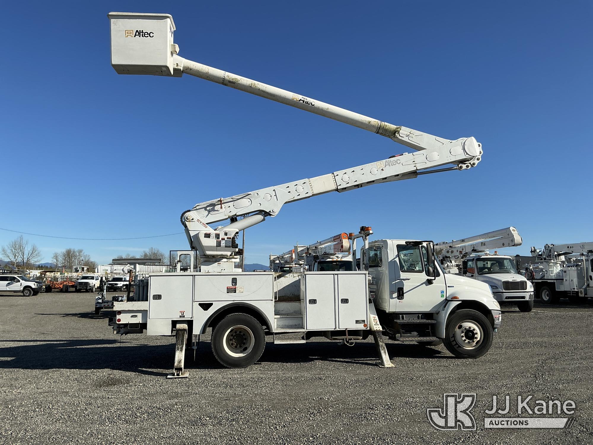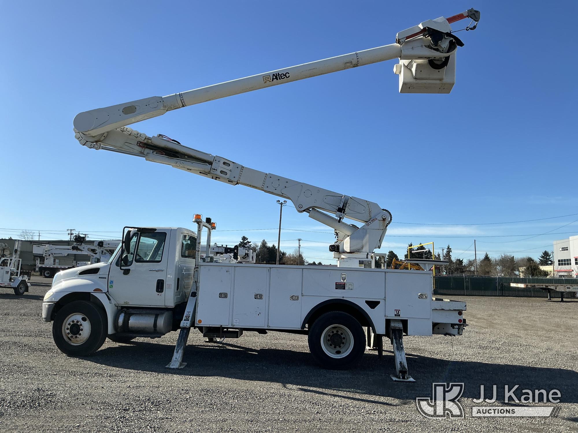 Altec AM55, 60 ft, Material Handling Bucket Truck s/n 0510DM2893, with Two-Man Bucket & 4 Hydraulic Outriggers, rear mounted on 2011 International 4300 Utility Truck, 7.6L L6 DIESEL 4X2, Auto, A/C, (64,908 miles) (Runs, Moves & Upper Operates) This is a Titled Item*