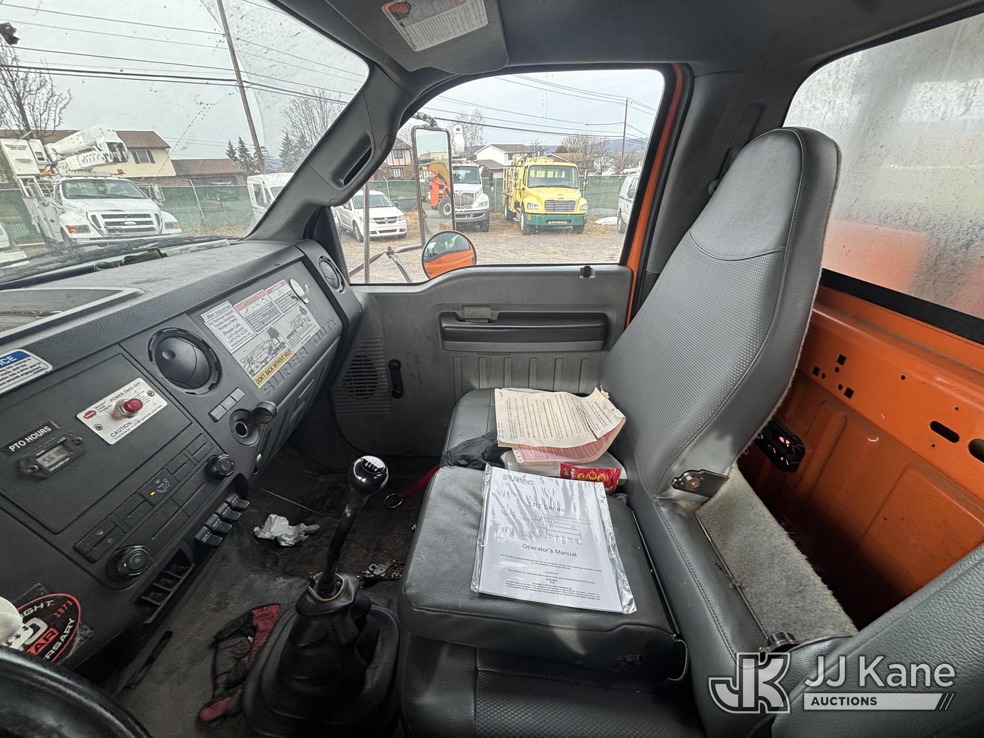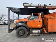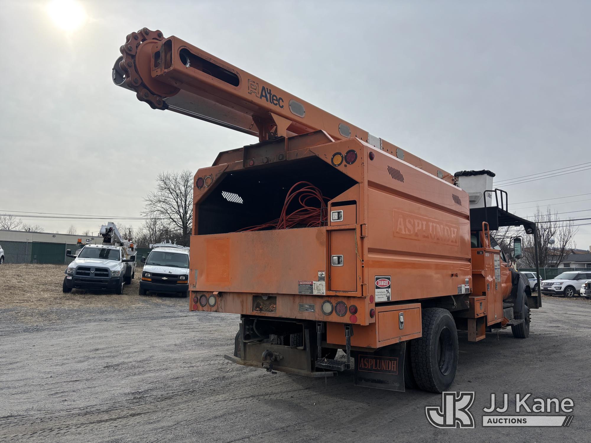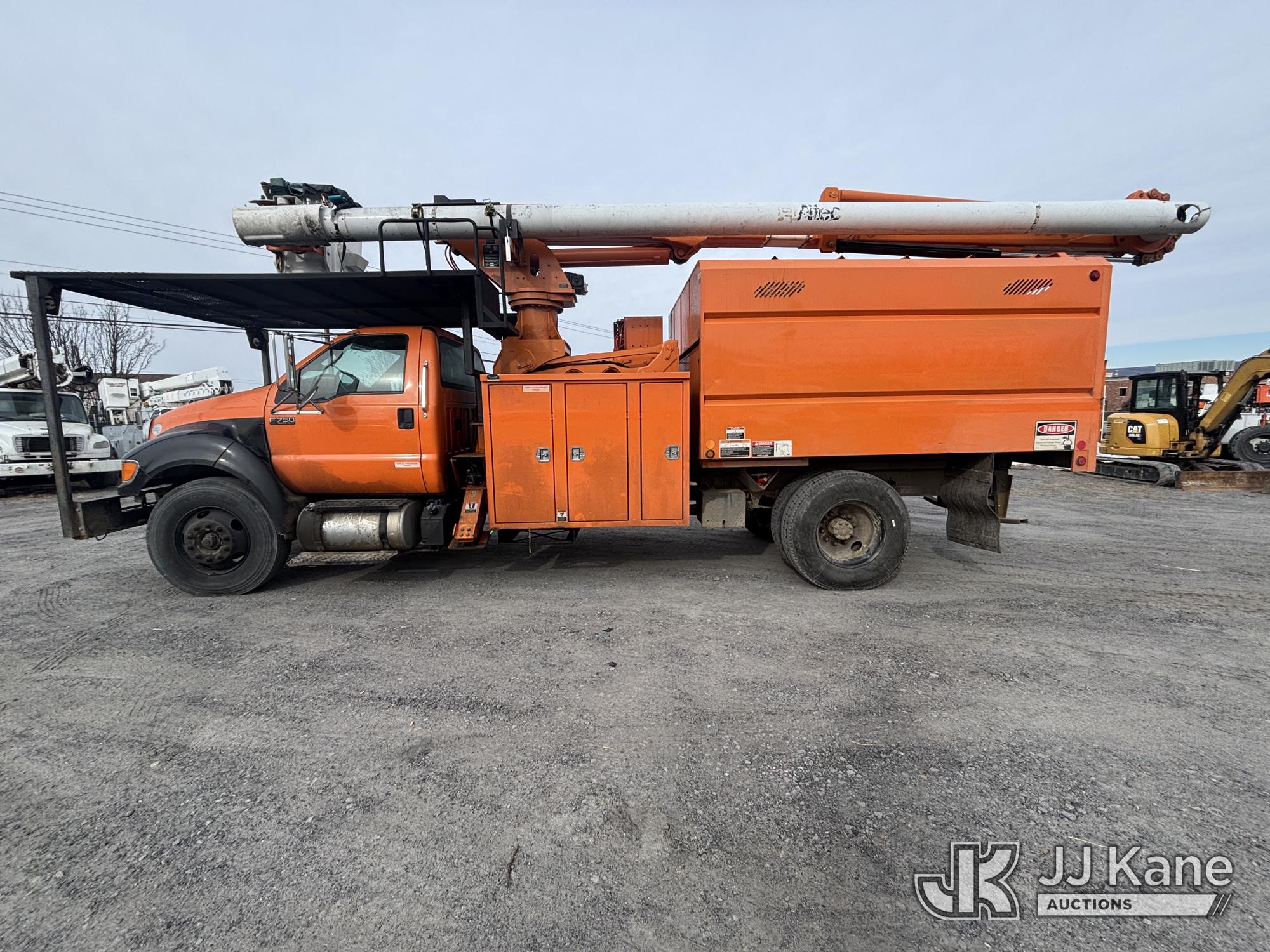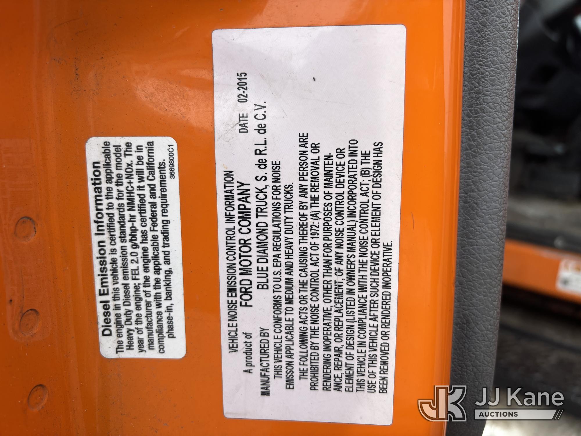 Altec LR760E70, 70 ft, Over-Center Elevator Bucket Truck s/n 0715FF4165, with Two Outriggers, Single-Man Bucket, mounted behind cab on 2015 Ford F-750 Regular Cab 2WD DRW Chipper Dump Truck, 6.7L L6 Diesel 6-spd, (76,833 miles) (**Dealer Only** Runs & Moves, Cracks On Hood, Leaking Oil/Oil Stains Across Unit, PTO Handle Removed, Body Dents & Dings, Rust Across Truck)(Seller States this item has been removed from service: Non-Conductive Hose Bundle in Boom Requires Replacement; Hydraulic System Issues; Dings & Cracks On Fiberglass Boom, Covers Removed Across Unit - Requires ANSI Inspection for repair/replacement requirements. The manufacturer has notified JJ Kane that this equipment is subject to an open recall. CSN 672 LRV/LR7 Leveling Yoke Inspection The equipment should not be operated until this is addressed. Buyer is responsible for reviewing the recall notice and contacting the manufacturer to schedule the recommended corrective actions. Associated costs may be covered by the manufacturer in some cases.) (Bidding Restricted to Licensed Vehicle Dealers Only), This is a Titled Item*