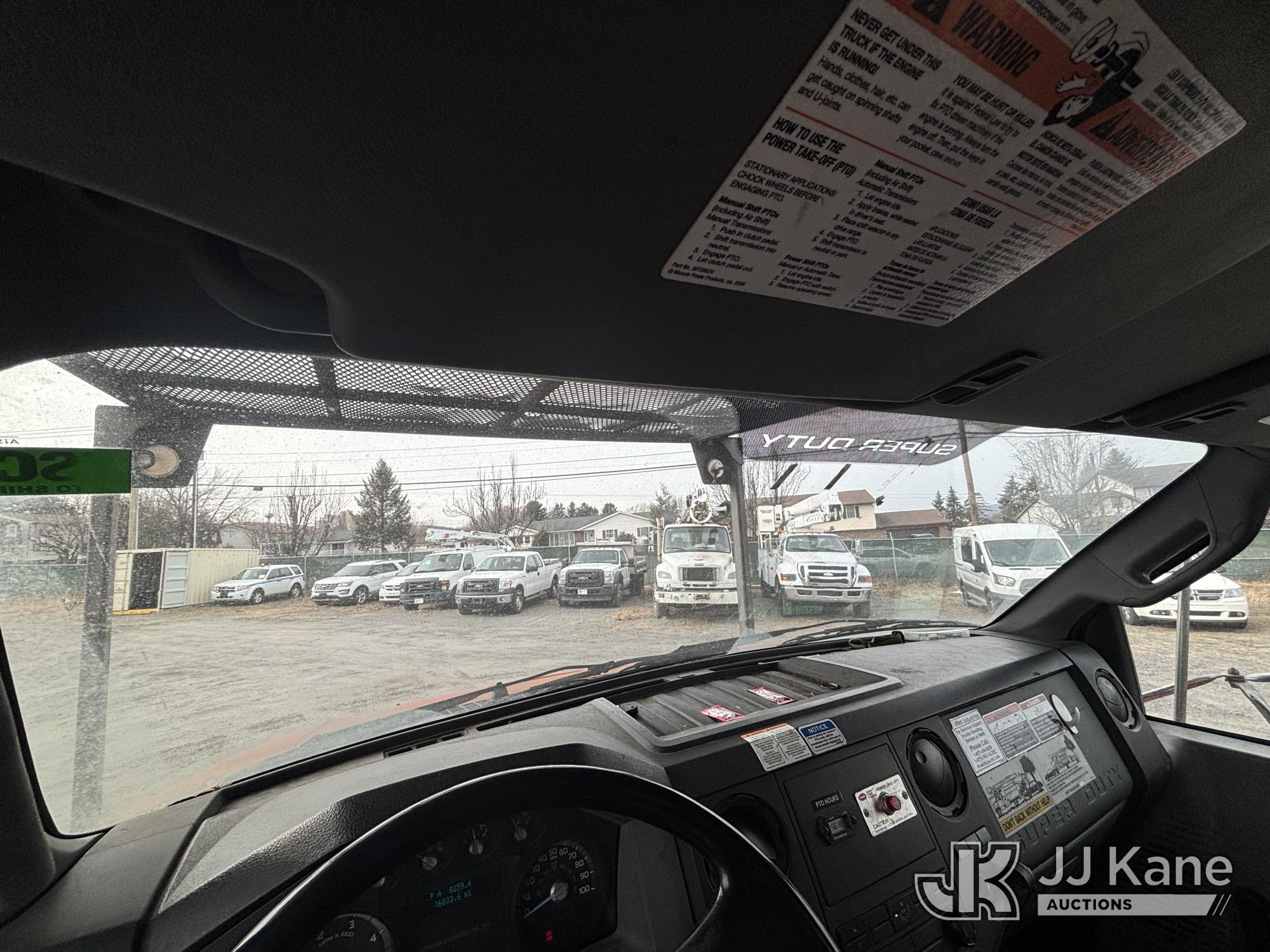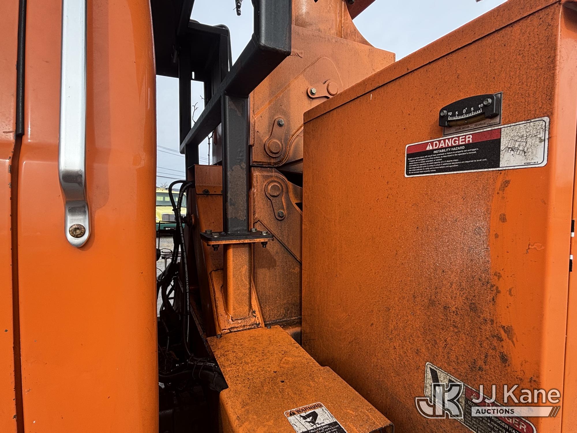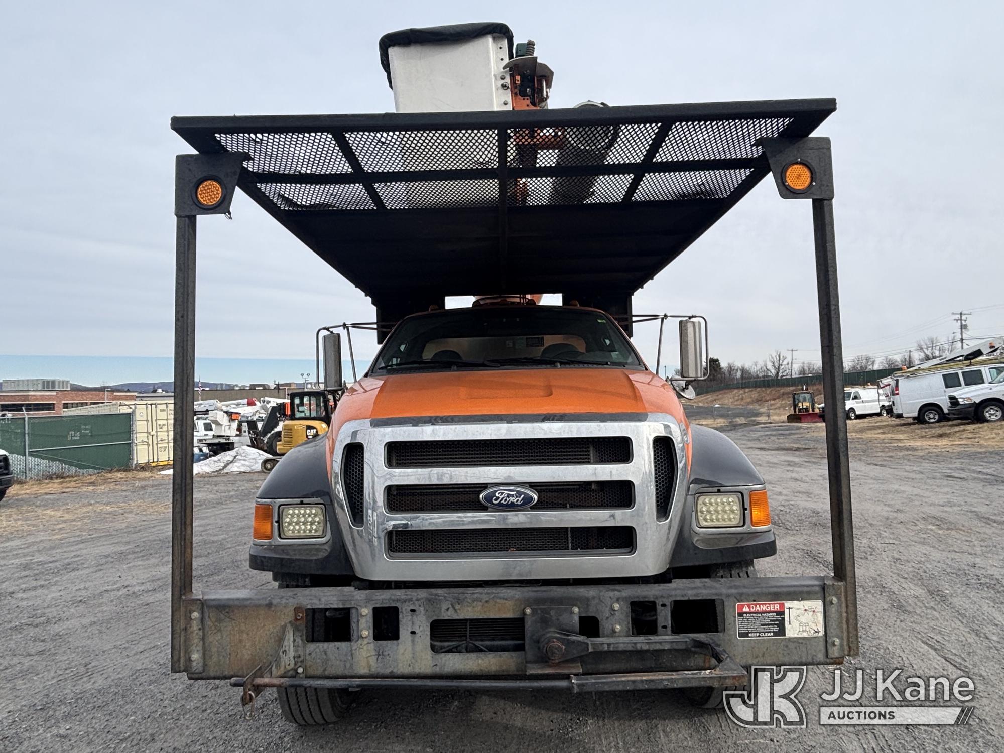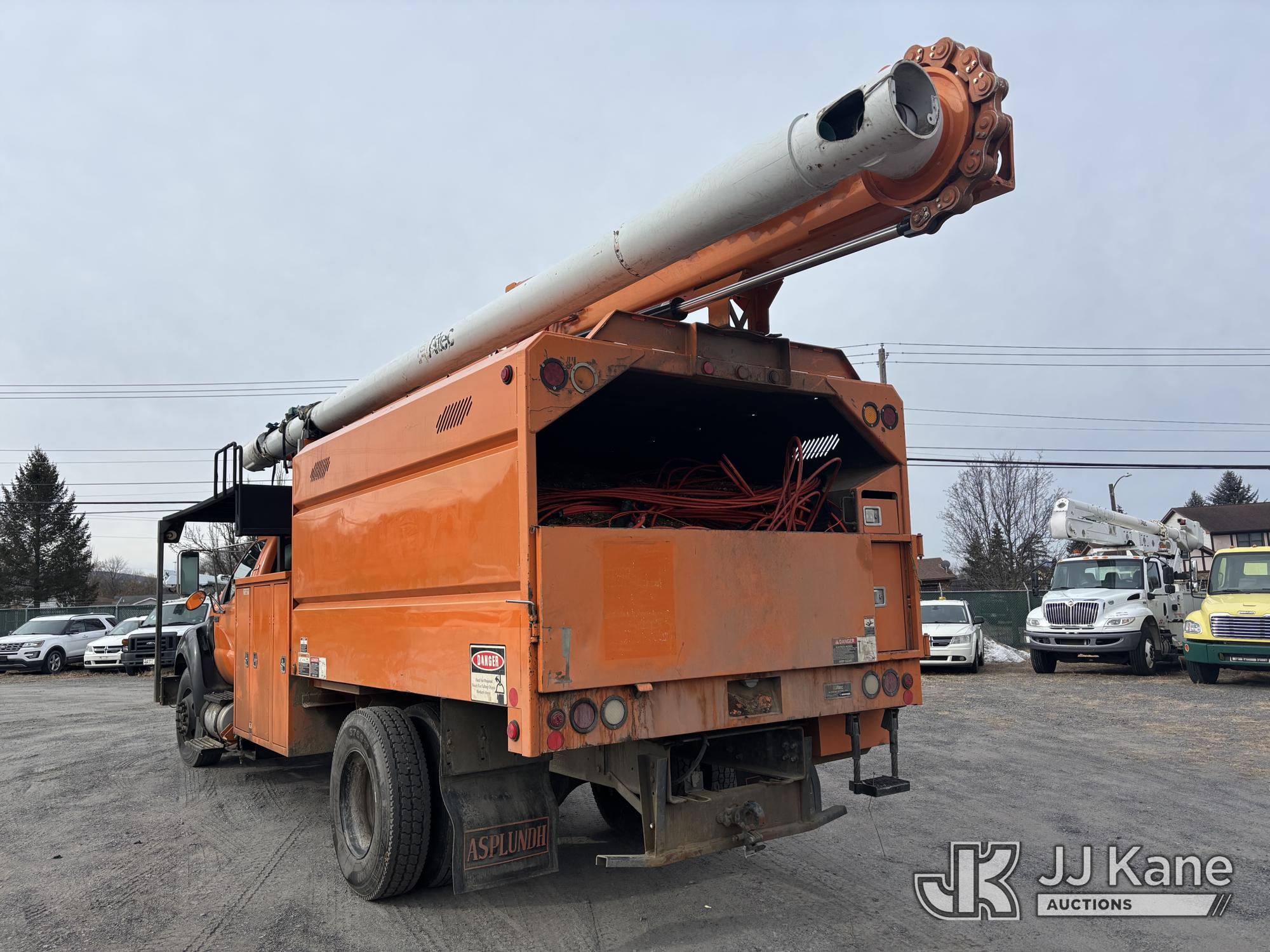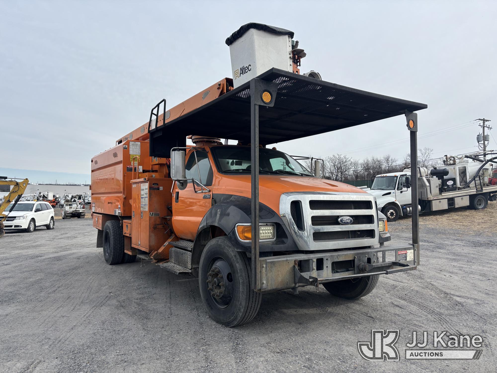 Altec LR760E70, 70 ft, Over-Center Elevator Bucket Truck s/n 0715FF4165, with Two Outriggers, Single-Man Bucket, mounted behind cab on 2015 Ford F-750 Regular Cab 2WD DRW Chipper Dump Truck, 6.7L L6 Diesel 6-spd, (76,833 miles) (**Dealer Only** Runs & Moves, Cracks On Hood, Leaking Oil/Oil Stains Across Unit, PTO Handle Removed, Body Dents & Dings, Rust Across Truck)(Seller States this item has been removed from service: Non-Conductive Hose Bundle in Boom Requires Replacement; Hydraulic System Issues; Dings & Cracks On Fiberglass Boom, Covers Removed Across Unit - Requires ANSI Inspection for repair/replacement requirements. The manufacturer has notified JJ Kane that this equipment is subject to an open recall. CSN 672 LRV/LR7 Leveling Yoke Inspection The equipment should not be operated until this is addressed. Buyer is responsible for reviewing the recall notice and contacting the manufacturer to schedule the recommended corrective actions. Associated costs may be covered by the manufacturer in some cases.) (Bidding Restricted to Licensed Vehicle Dealers Only), This is a Titled Item*