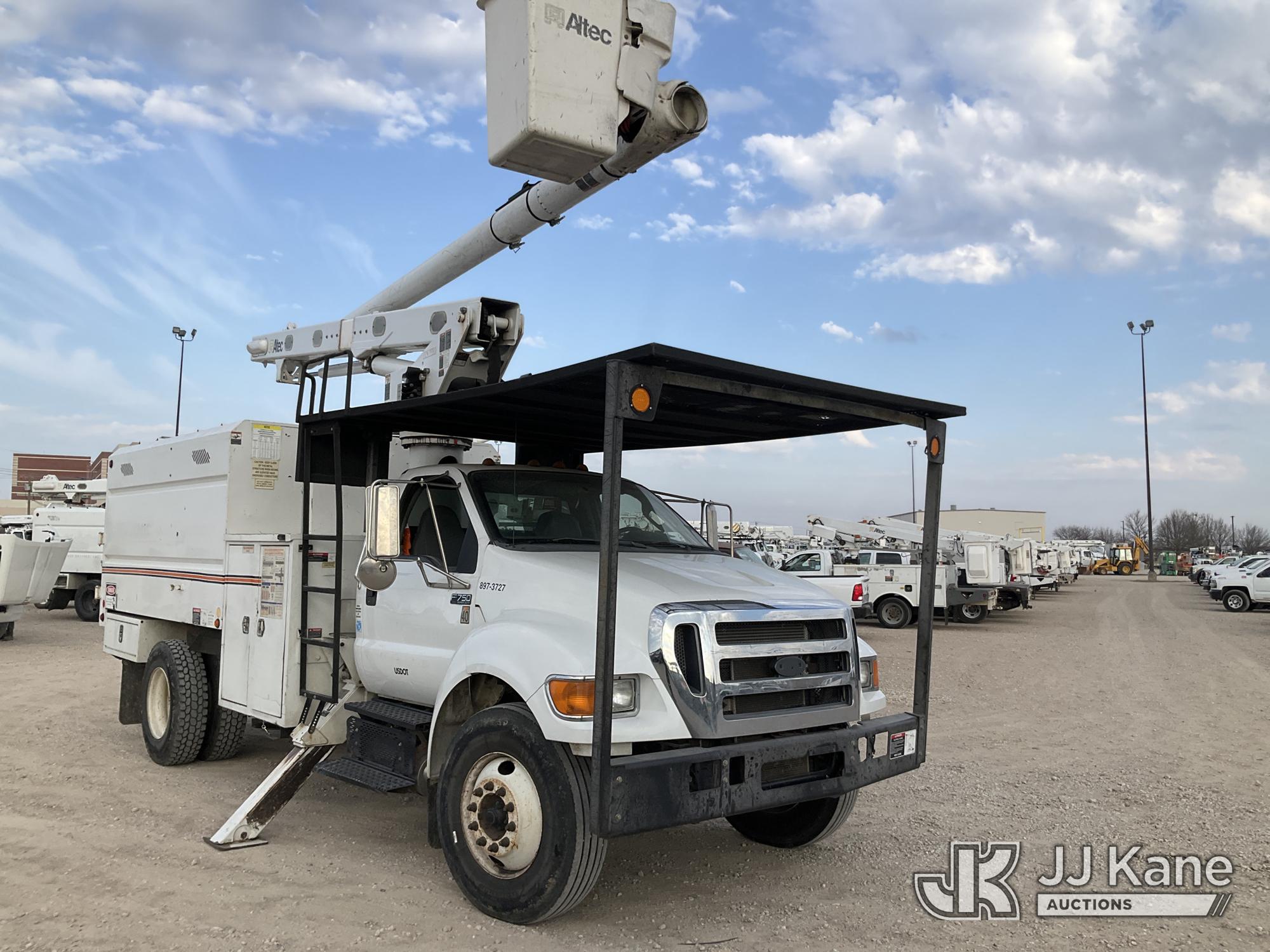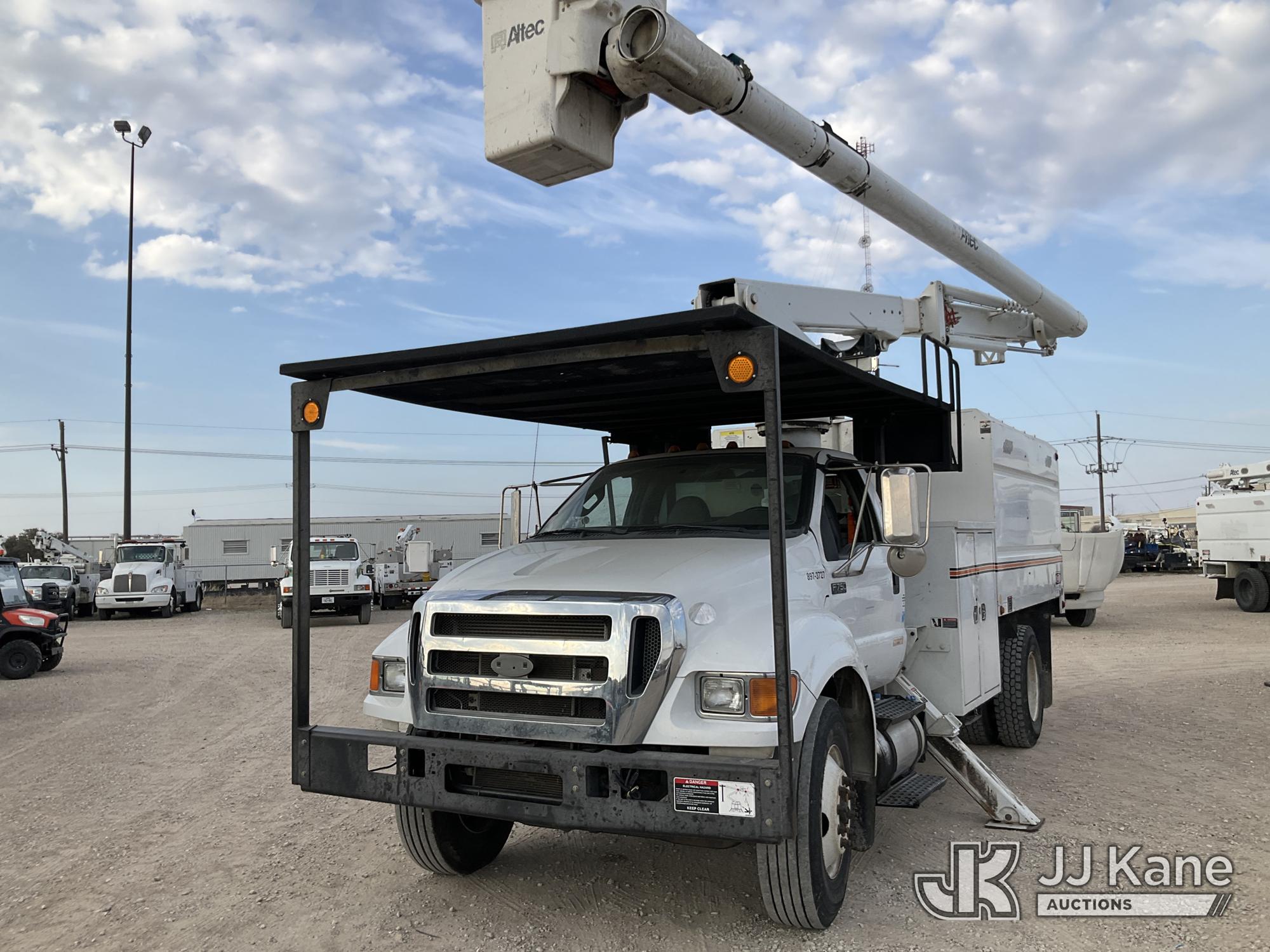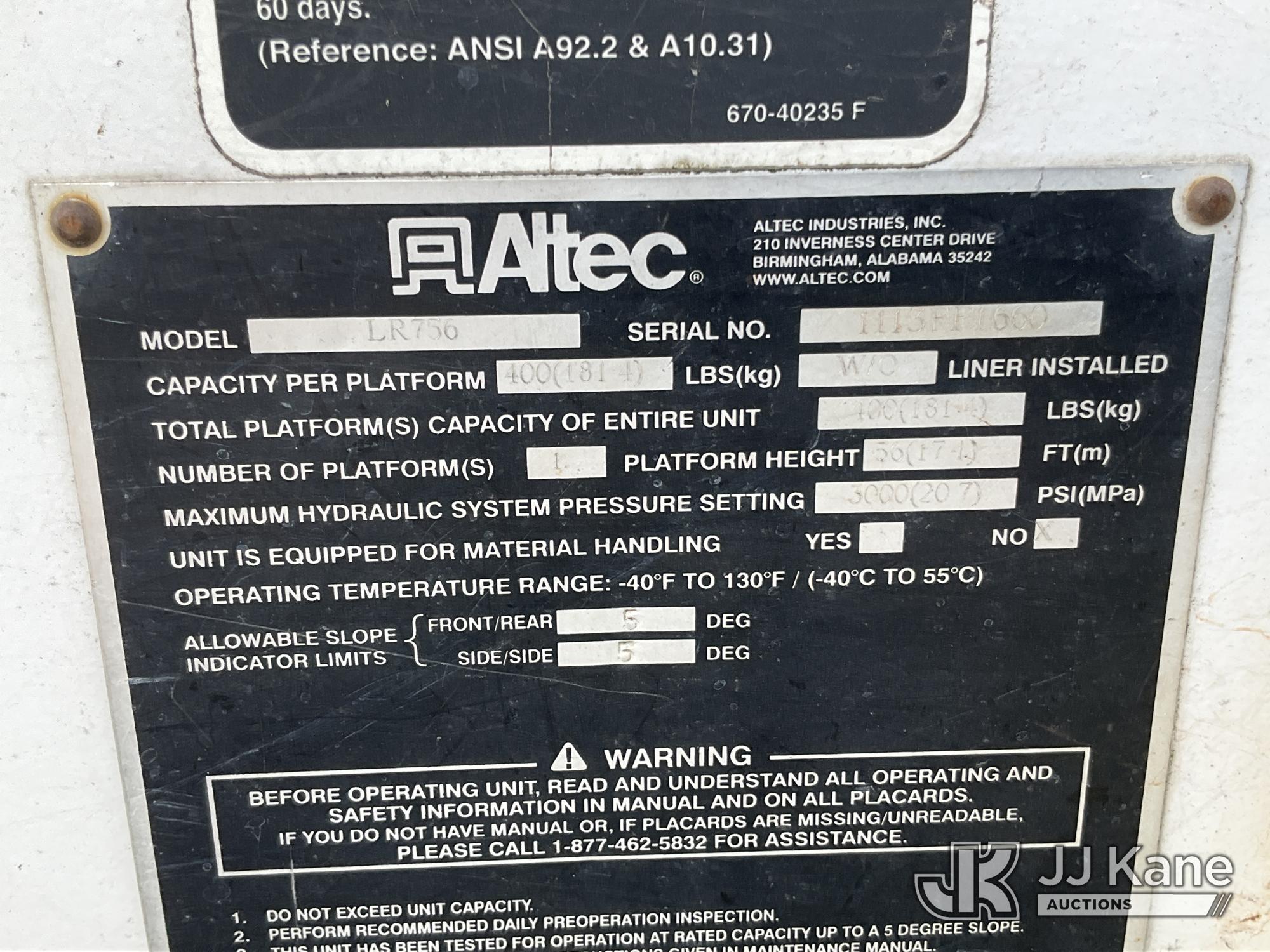 Altec LR756, 61 ft, Over-Center Bucket Truck s/n 1113FF1660, with Single-Man Bucket, mounted behind cab on 2013 Ford F-750 Chipper Dump Truck, 6.7L L6 DIESEL 4X2, manual, A/C, (116,973 miles) Needs Engine & ABS Module (Runs, Moves & Upper Operates) (Check Engine Light On, Seller States: Needs Engine & ABS Module) This is a Titled Item*