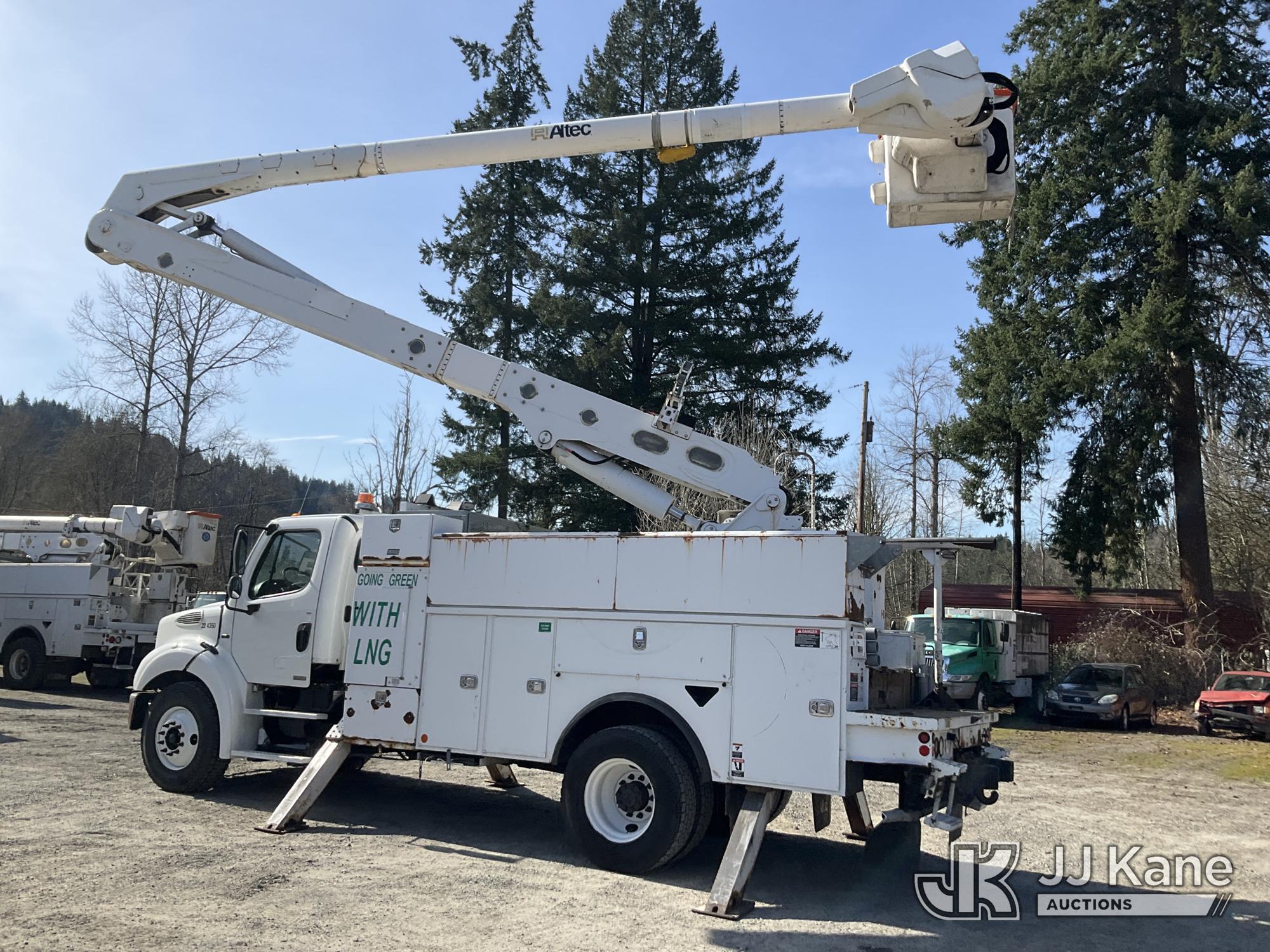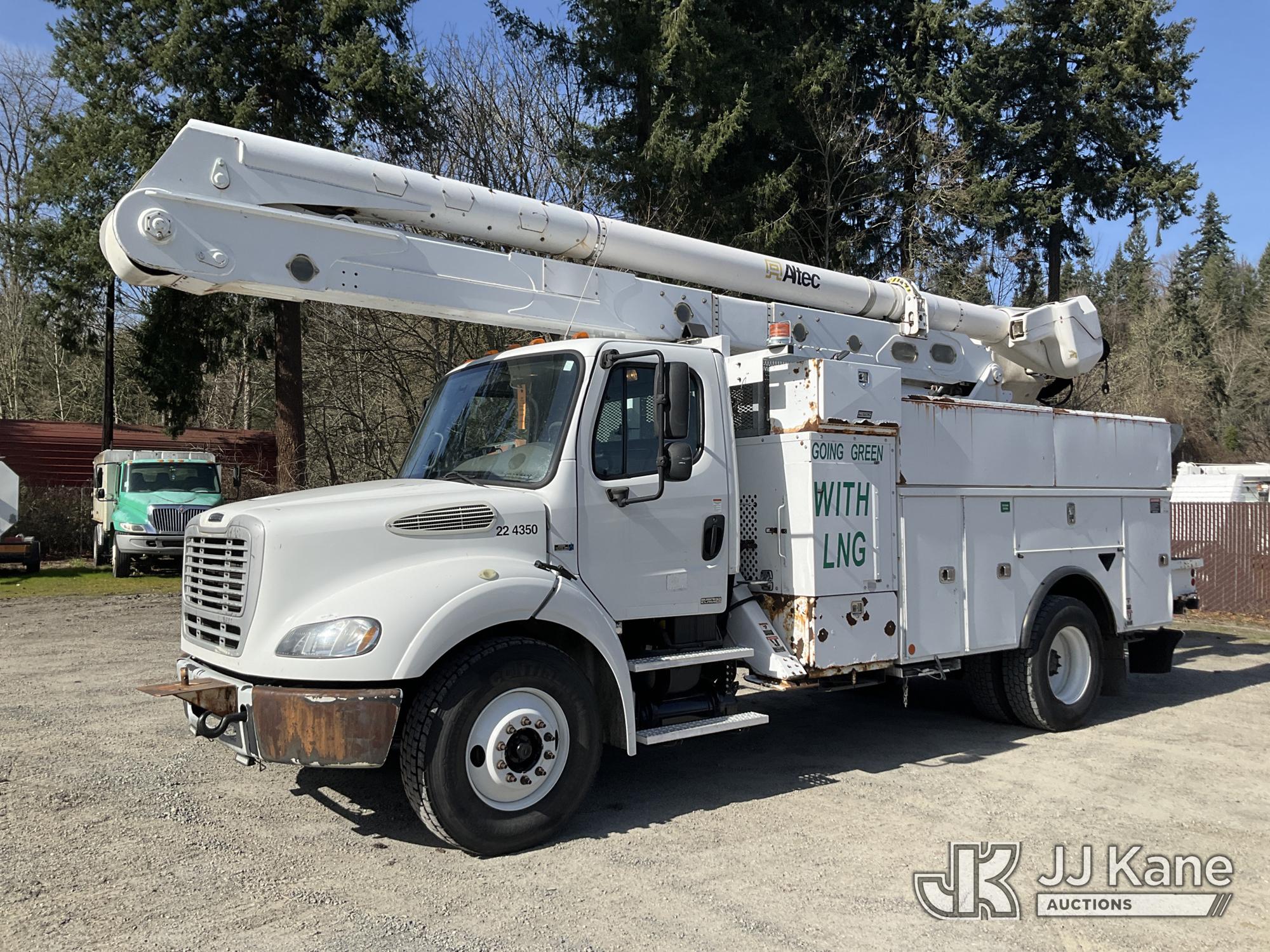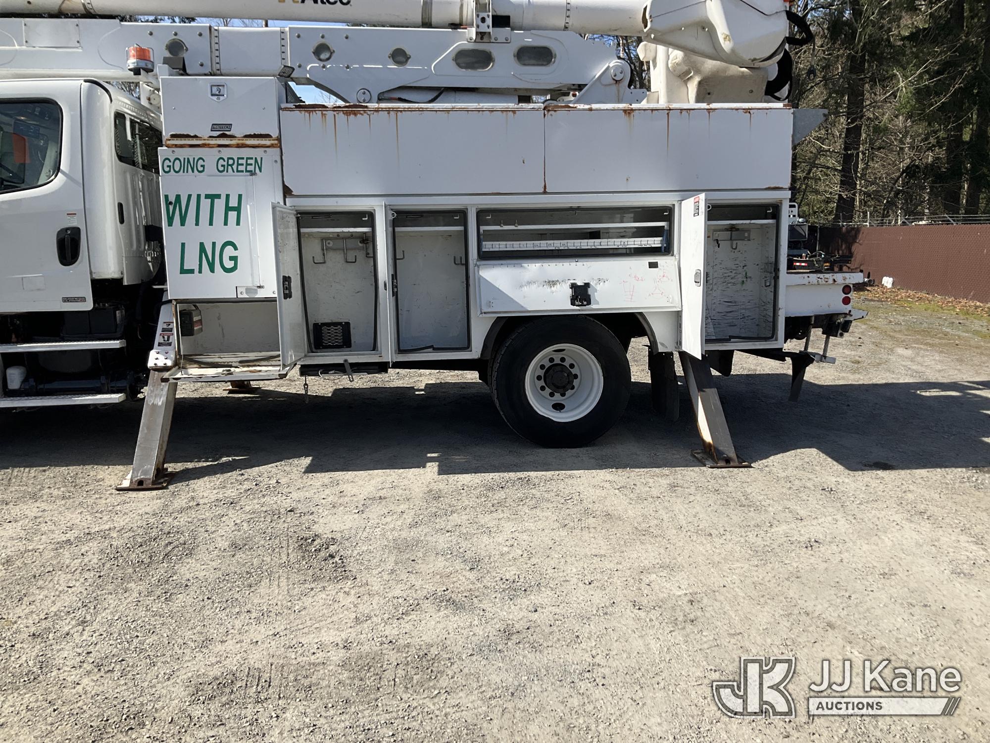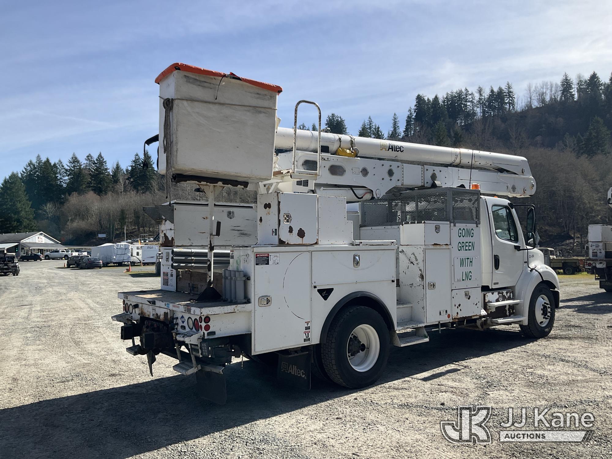 Altec AA55, 61 ft, Material Handling Bucket Truck s/n 0814FH1361, with two-man bucket & 4 hyd outriggers, rear mounted on 2015 Freightliner M2 112 Utility Truck, 8.9L L6 Dual Fuel (LNG & Diesel), Auto, A/C, (103,097 miles) (Runs, Moves & Upper Operates) (Jump To Start, Low Fuel) This is a Titled Item*