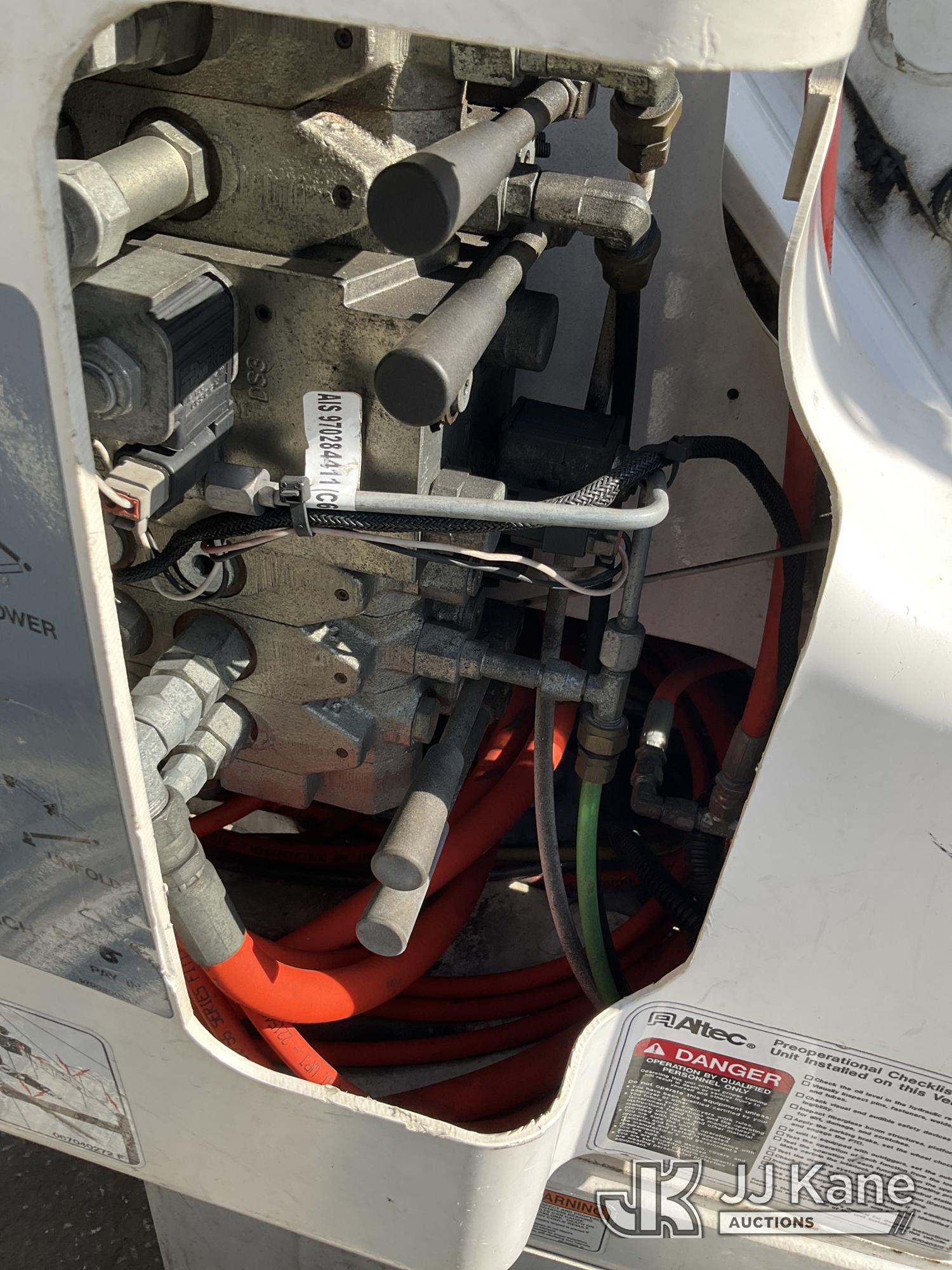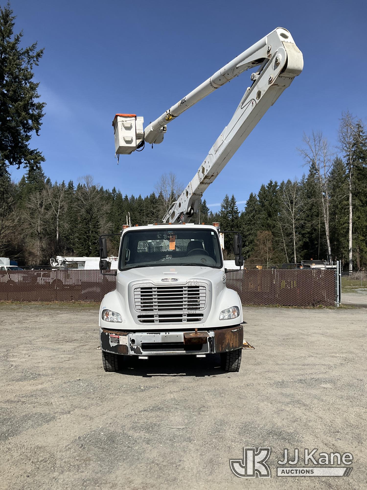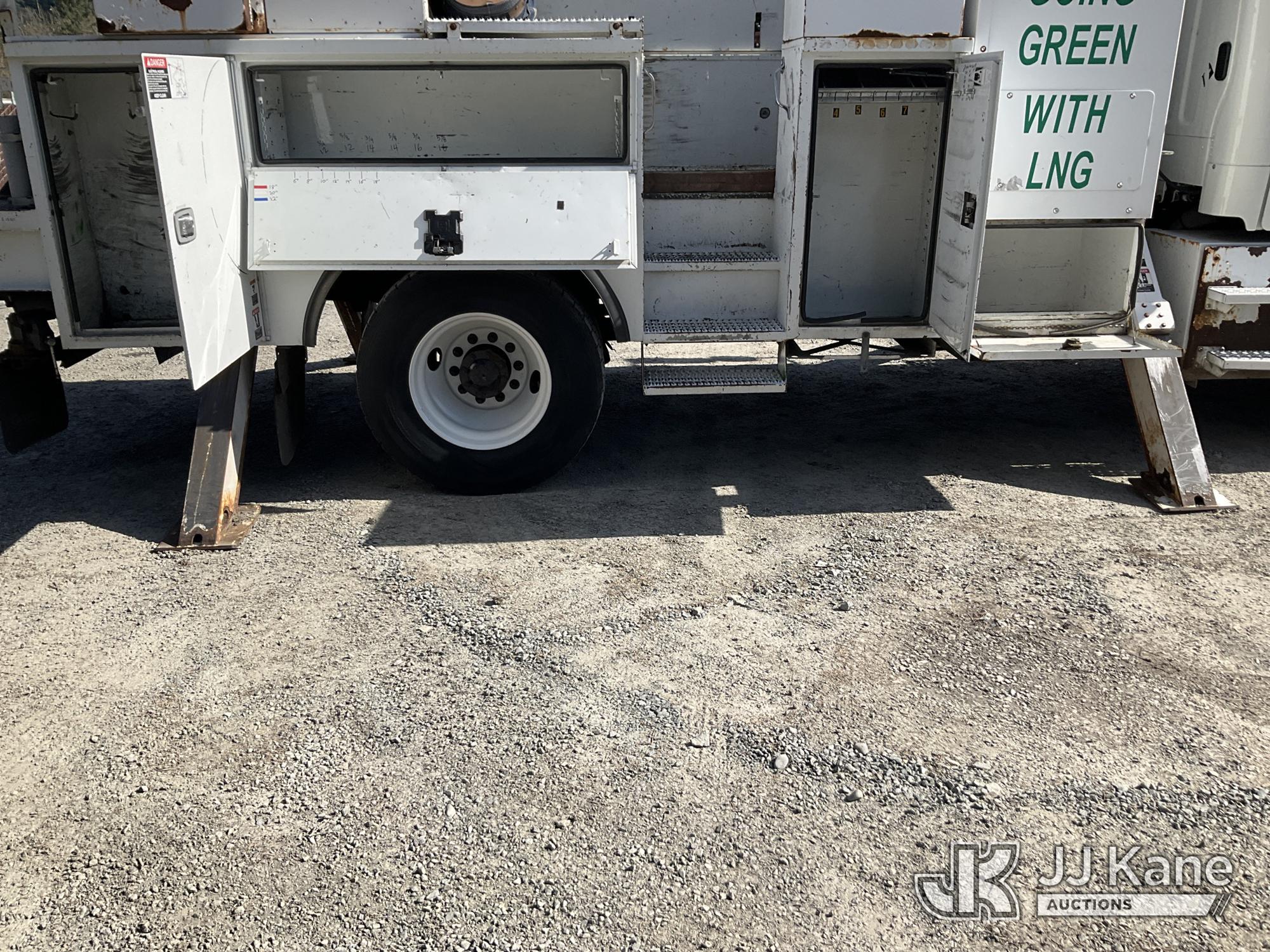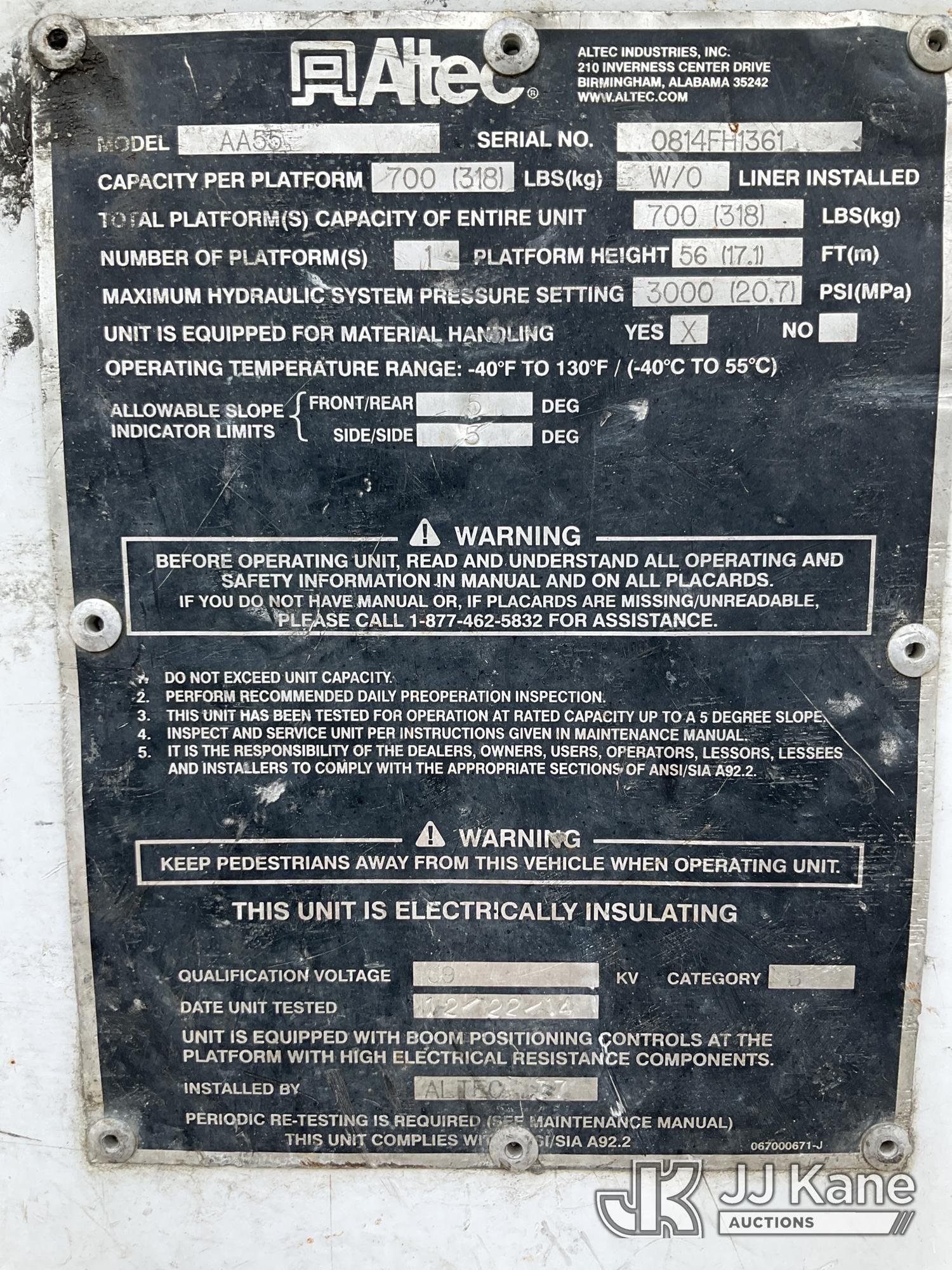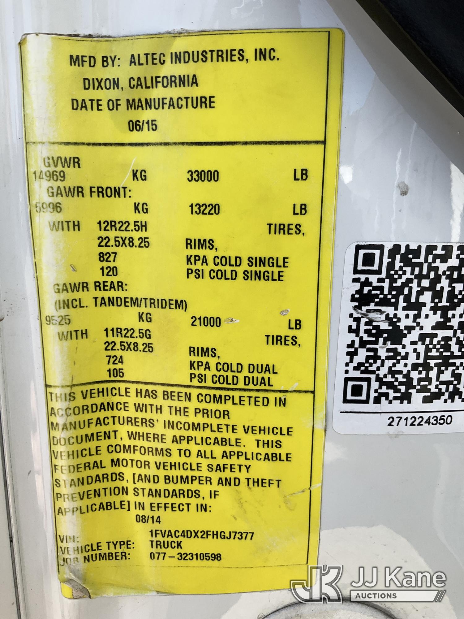 Altec AA55, 61 ft, Material Handling Bucket Truck s/n 0814FH1361, with two-man bucket & 4 hyd outriggers, rear mounted on 2015 Freightliner M2 112 Utility Truck, 8.9L L6 Dual Fuel (LNG & Diesel), Auto, A/C, (103,097 miles) (Runs, Moves & Upper Operates) (Jump To Start, Low Fuel) This is a Titled Item*