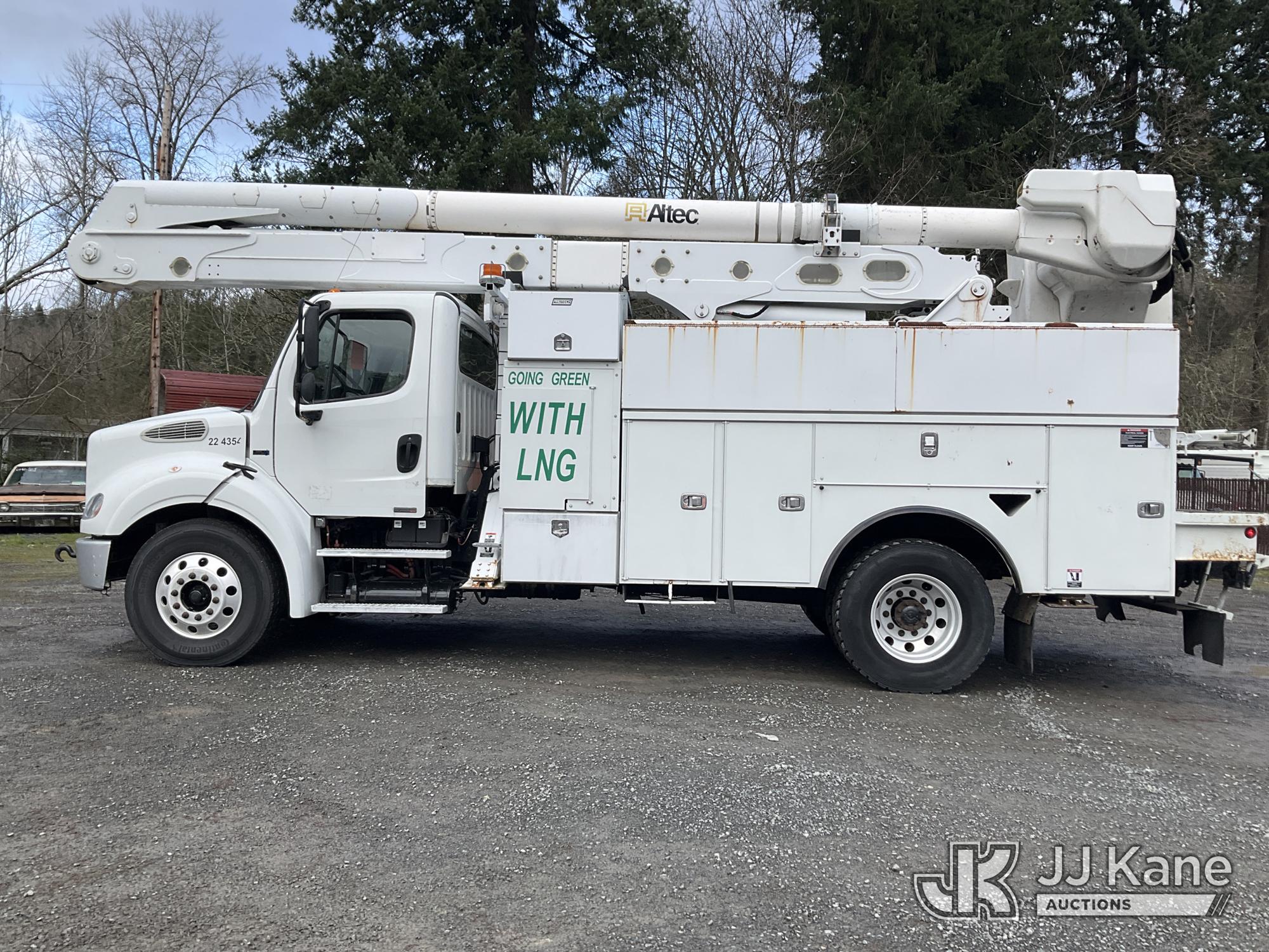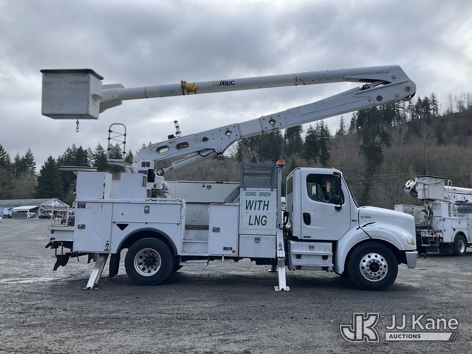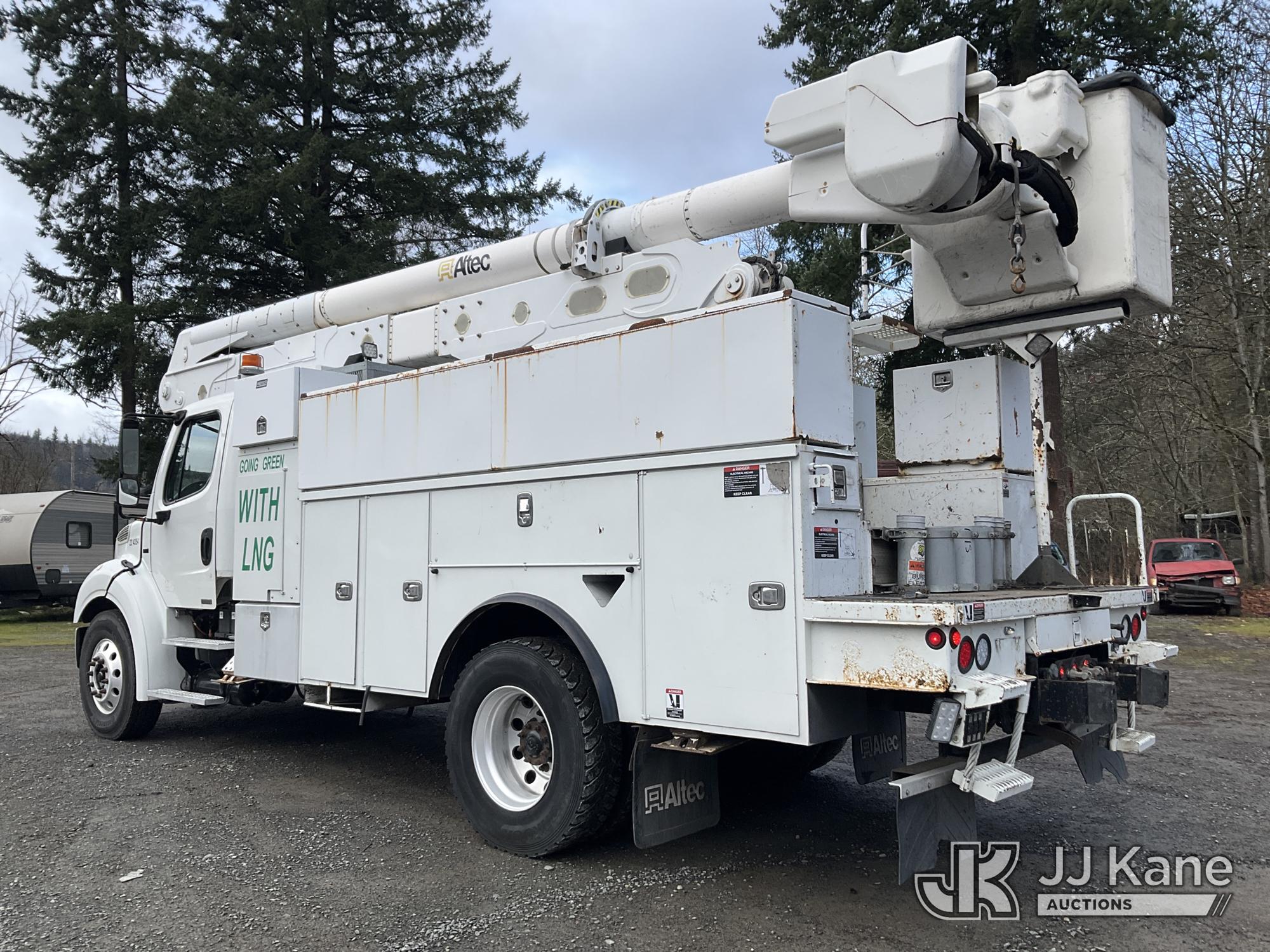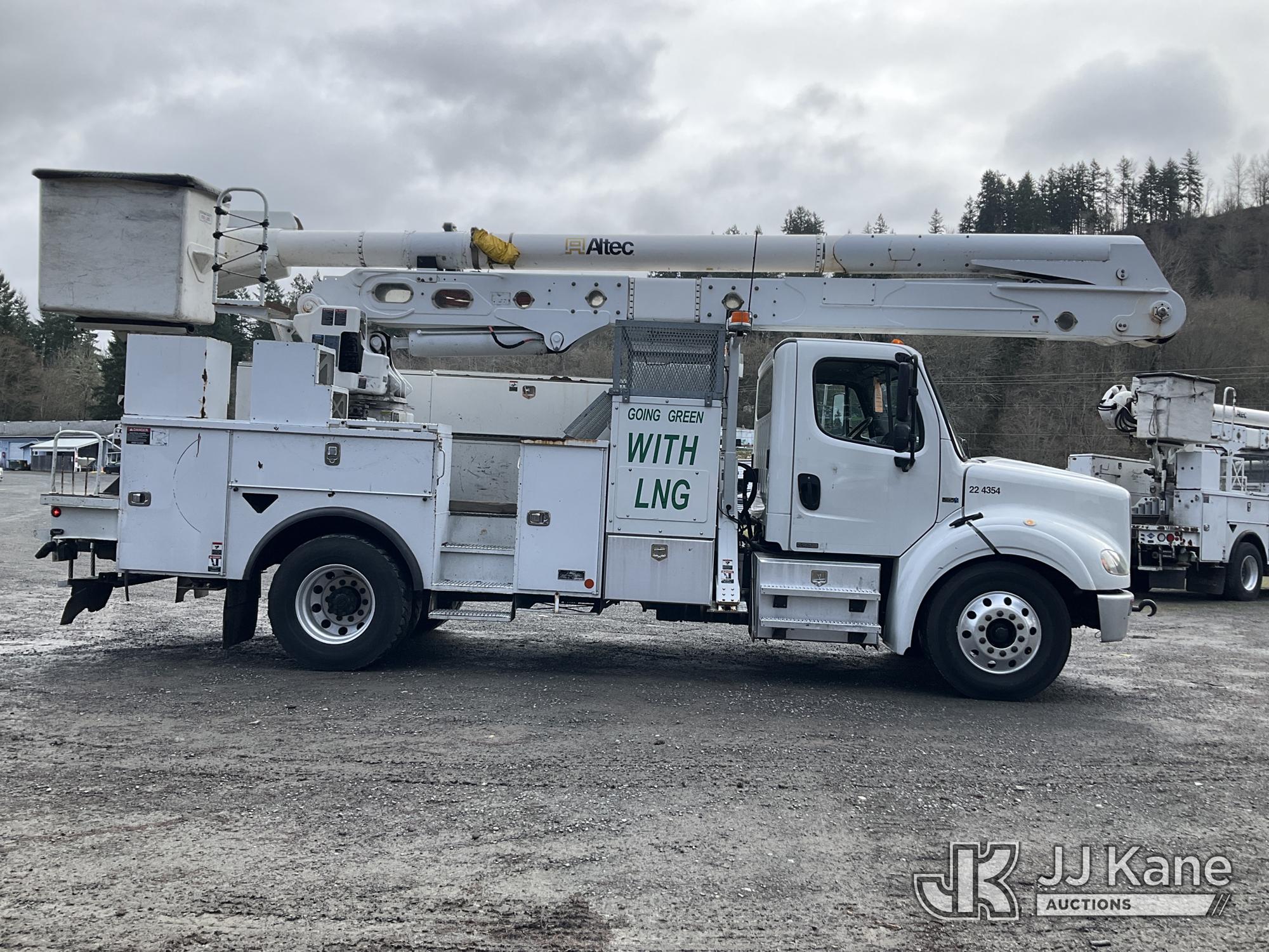 Altec AA55E, 61 ft, Material Handling Bucket Truck s/n 0914FH1403, with two-man bucket & 4 hyd outriggers, rear mounted on 2015 Freightliner M2 112 Utility Truck, 8.9L LNG 4X2, Auto, A/C, (101,115 miles) (Runs, Moves & Upper Operates) (Out of LNG Fuel Will Not Stay Running, Tractor ABS Light On) This is a Titled Item*