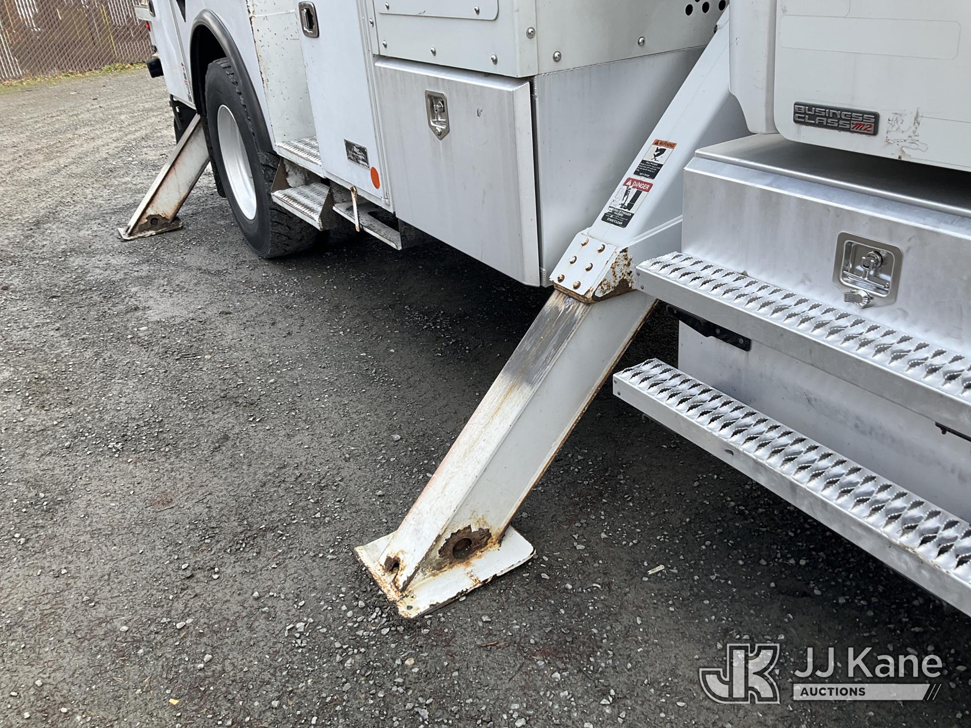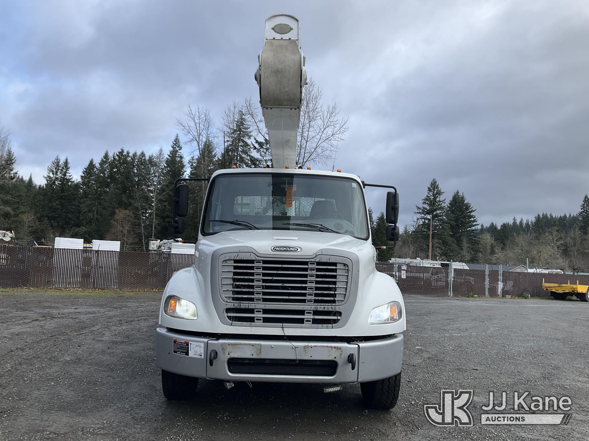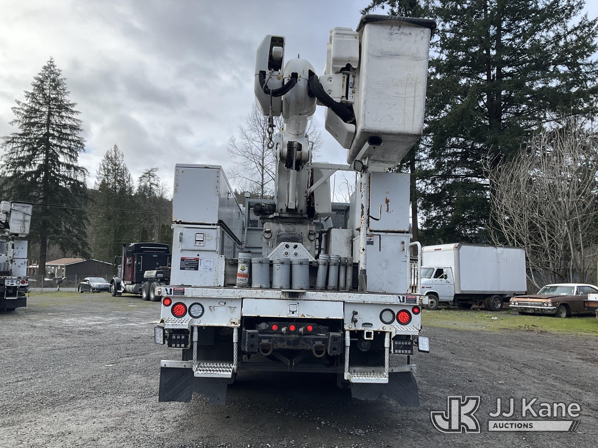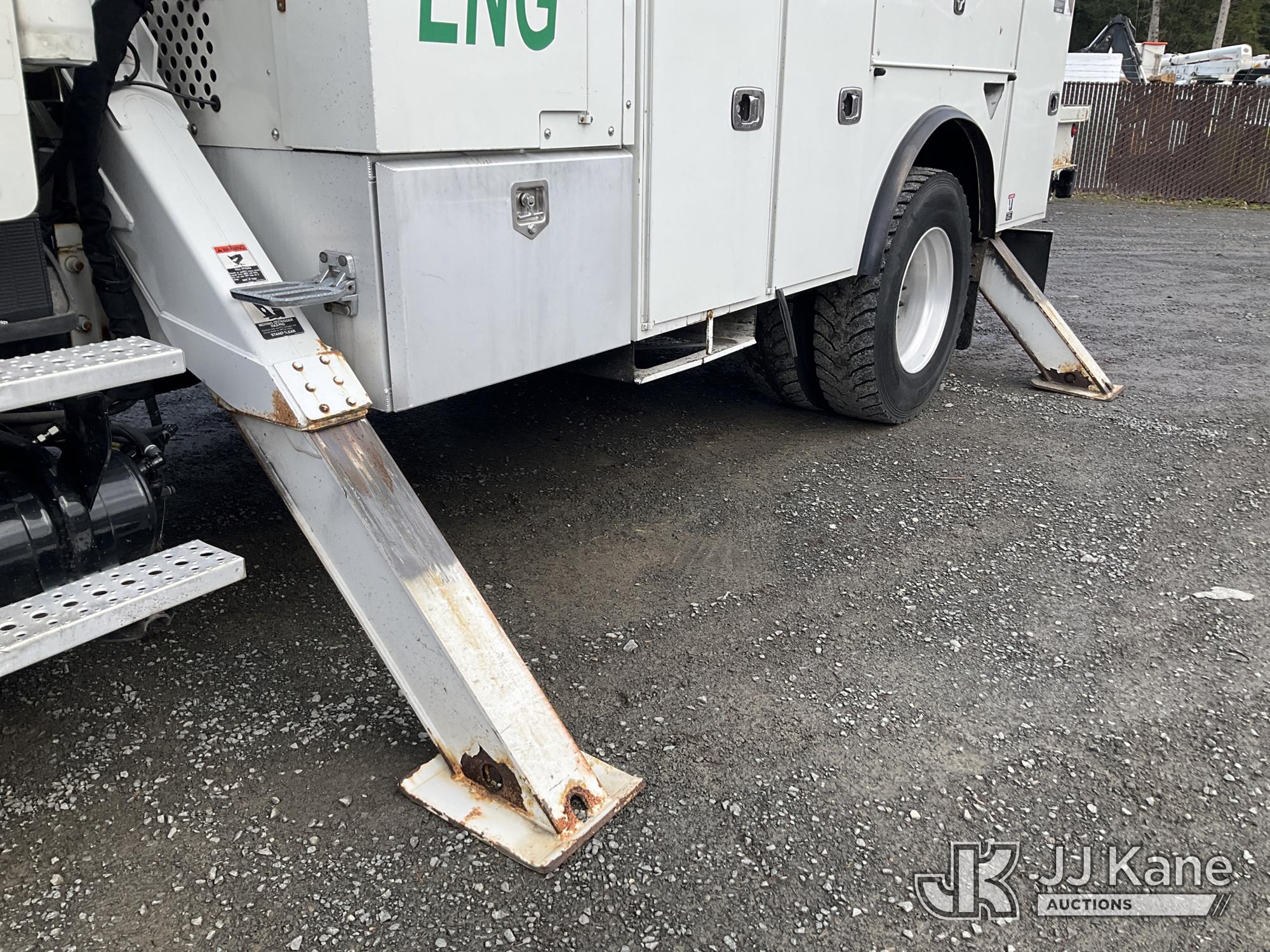 Altec AA55E, 61 ft, Material Handling Bucket Truck s/n 0914FH1403, with two-man bucket & 4 hyd outriggers, rear mounted on 2015 Freightliner M2 112 Utility Truck, 8.9L LNG 4X2, Auto, A/C, (101,115 miles) (Runs, Moves & Upper Operates) (Out of LNG Fuel Will Not Stay Running, Tractor ABS Light On) This is a Titled Item*
