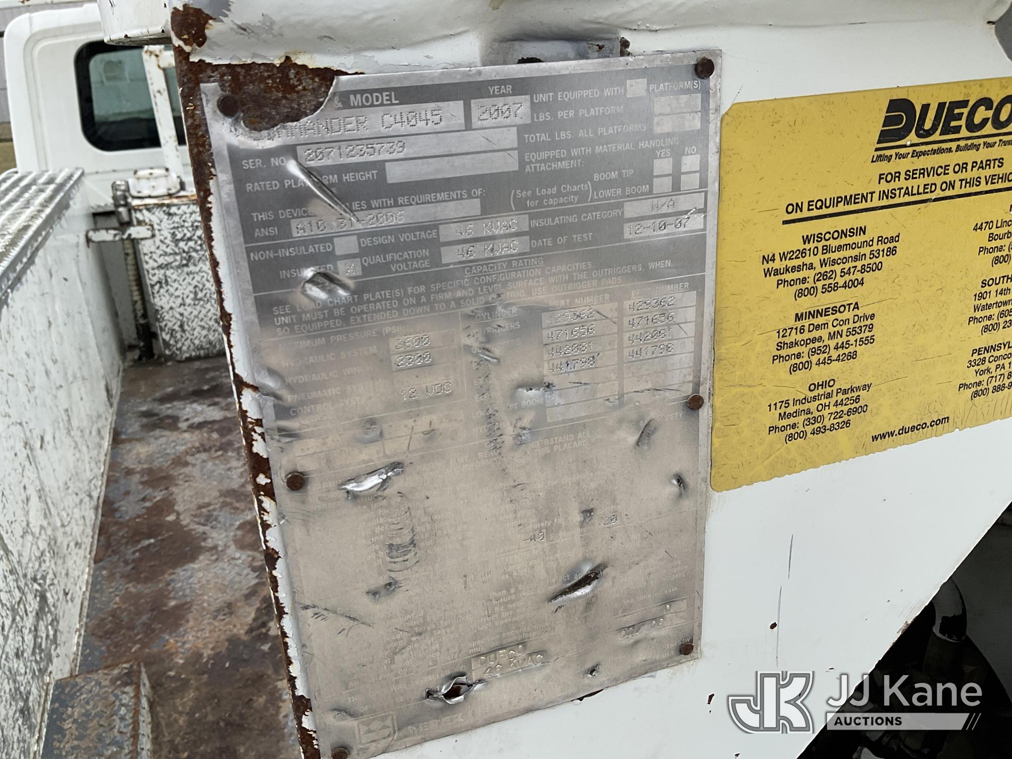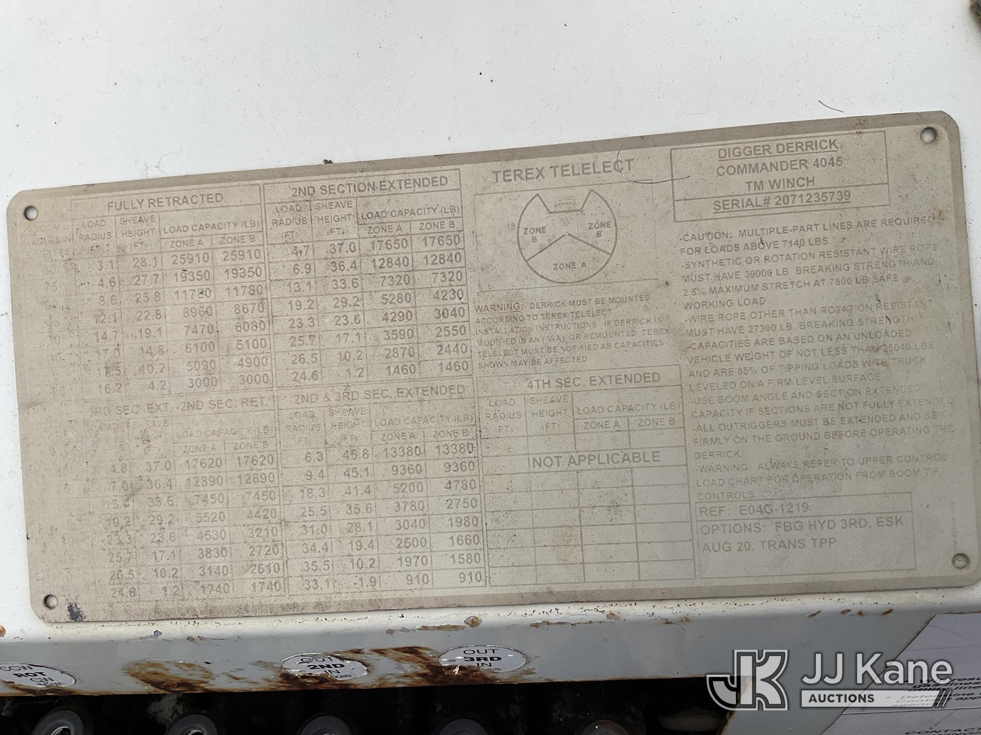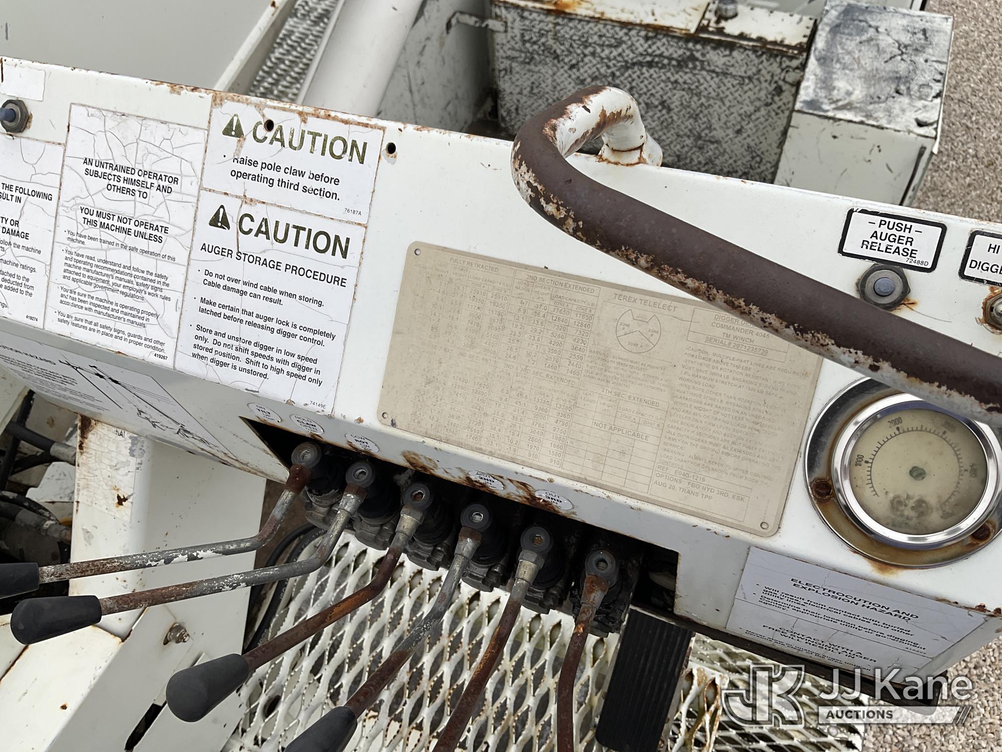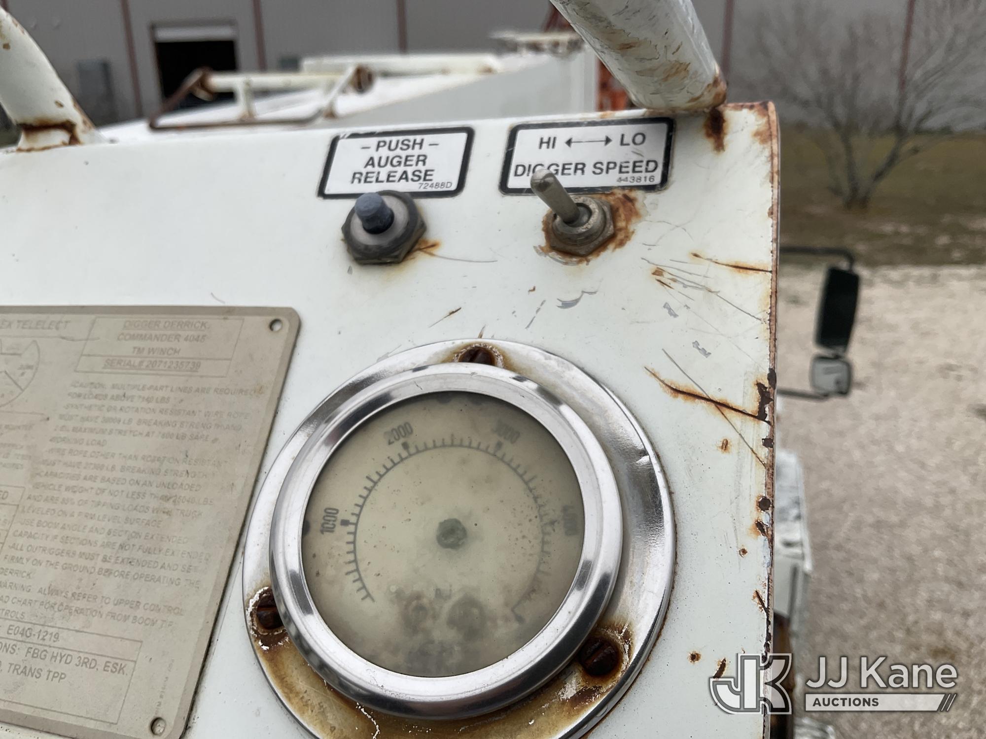Terex/Telelect Commander C4045, 25,910 Lb Digger Derrick s/n 2071235739, with 45 ft sheave height, 2-spd digger, heel winch, pole grabs, riding console & 4 hyd outriggers, mounted on 2007 International 4300 Utility Truck, 7.6L L6 DIESEL 4X2, Auto, (107,346 miles) (Runs, Moves & Upper Operates, Jump to Start, ABS Light On) This is a Titled Item*