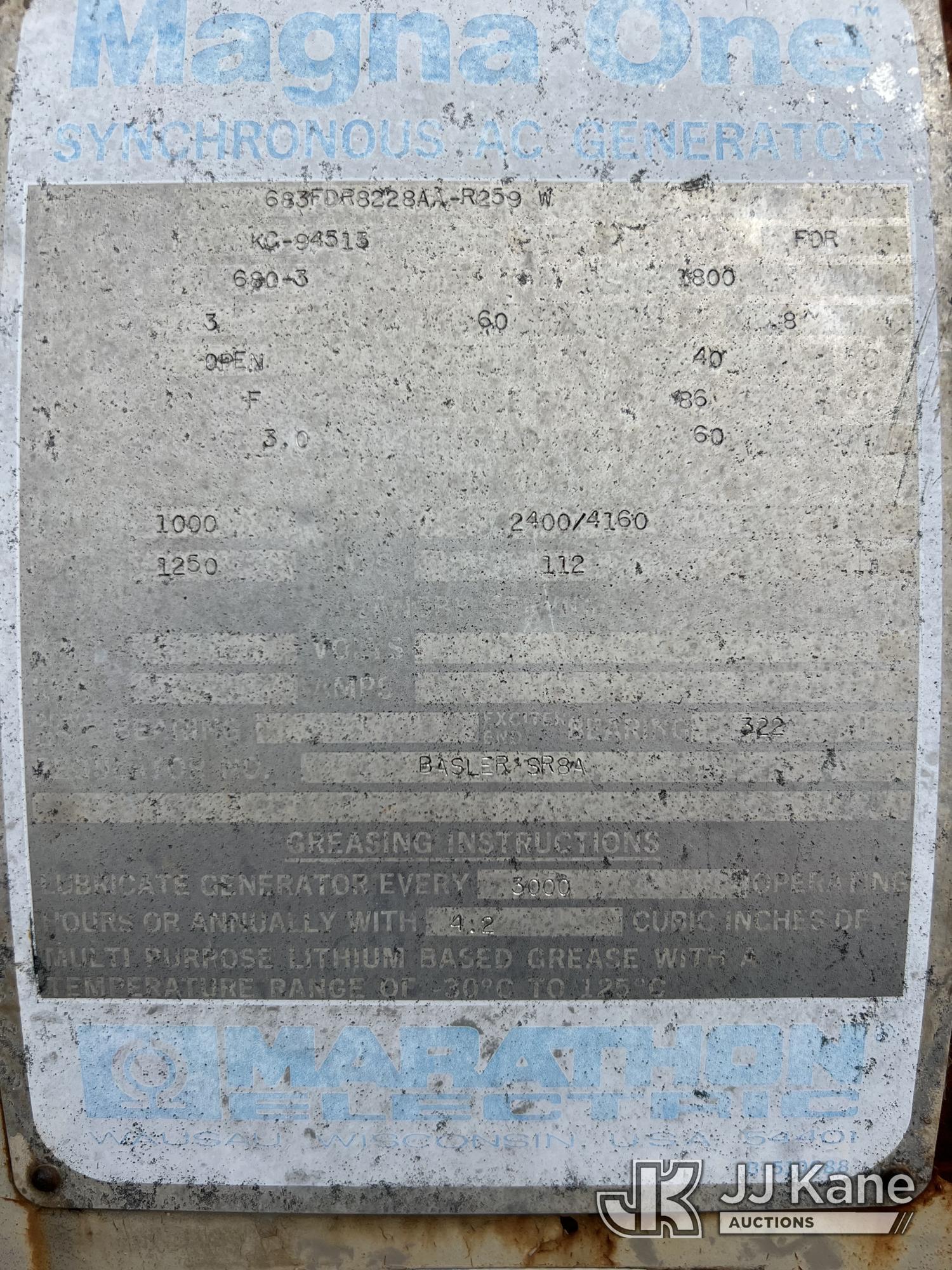 Conditions / Miscellaneous:Magna One-Synchronous AC Generator by Marathon Electric, Cummins diesel, S/N KC-94513