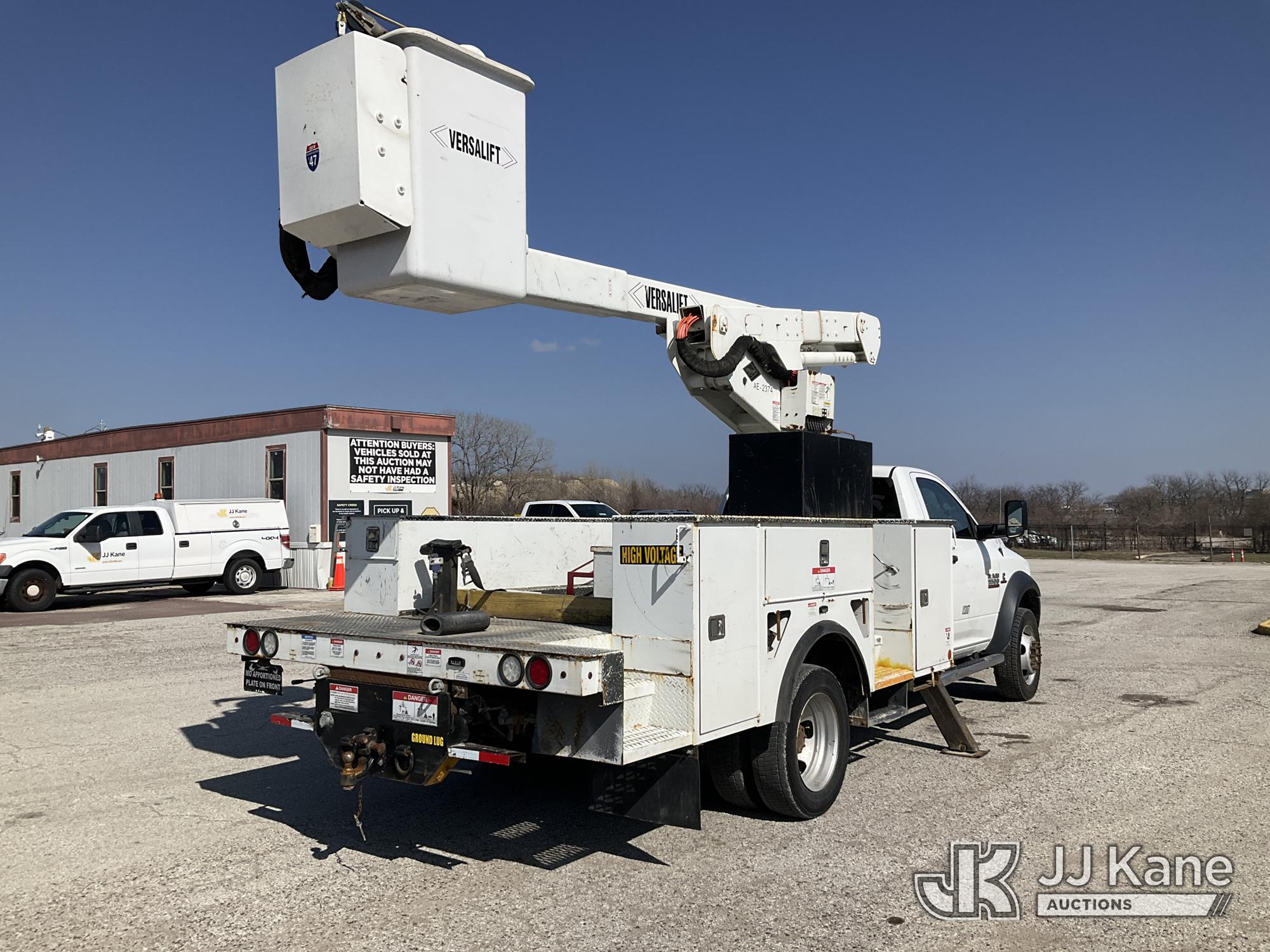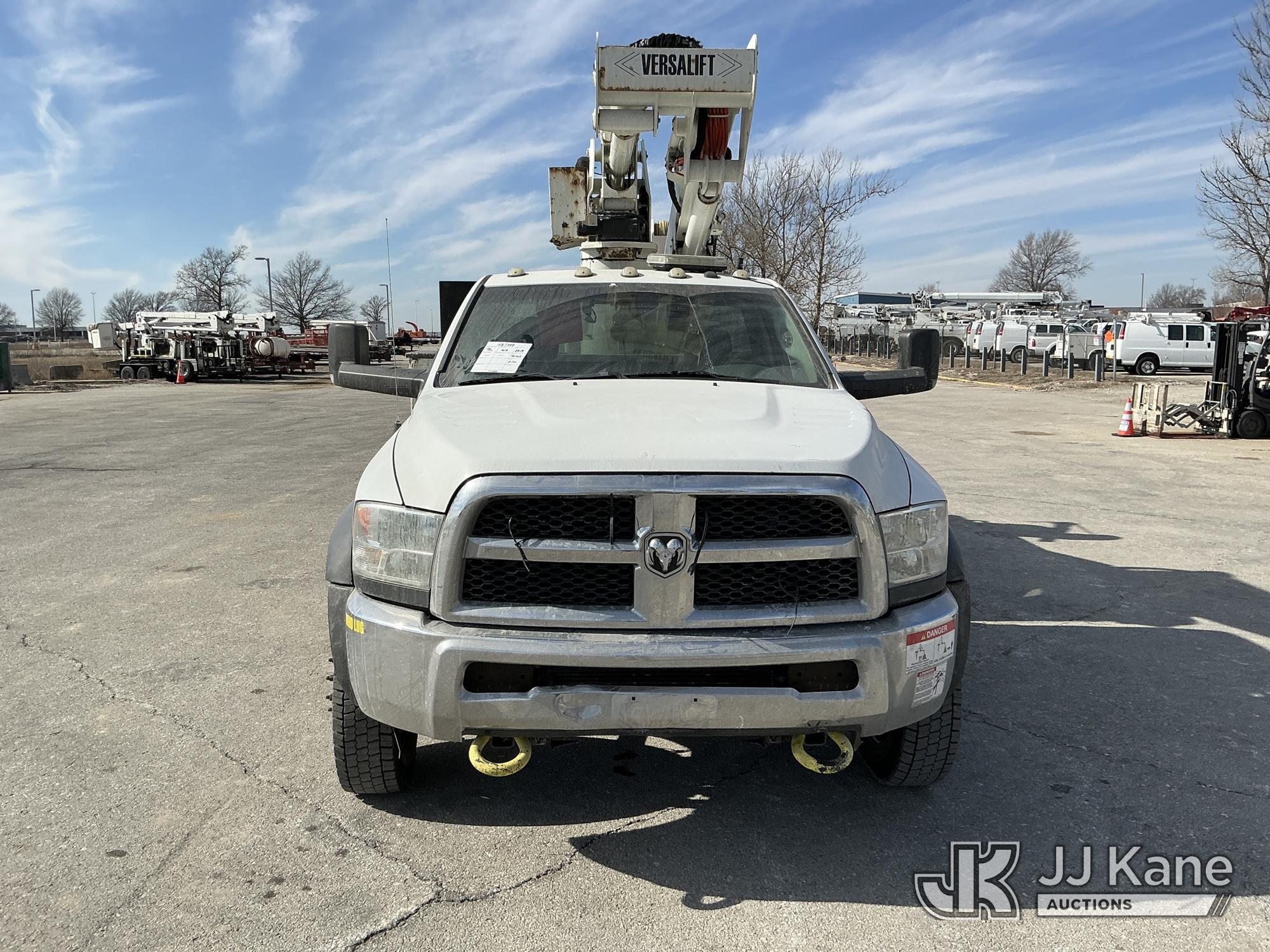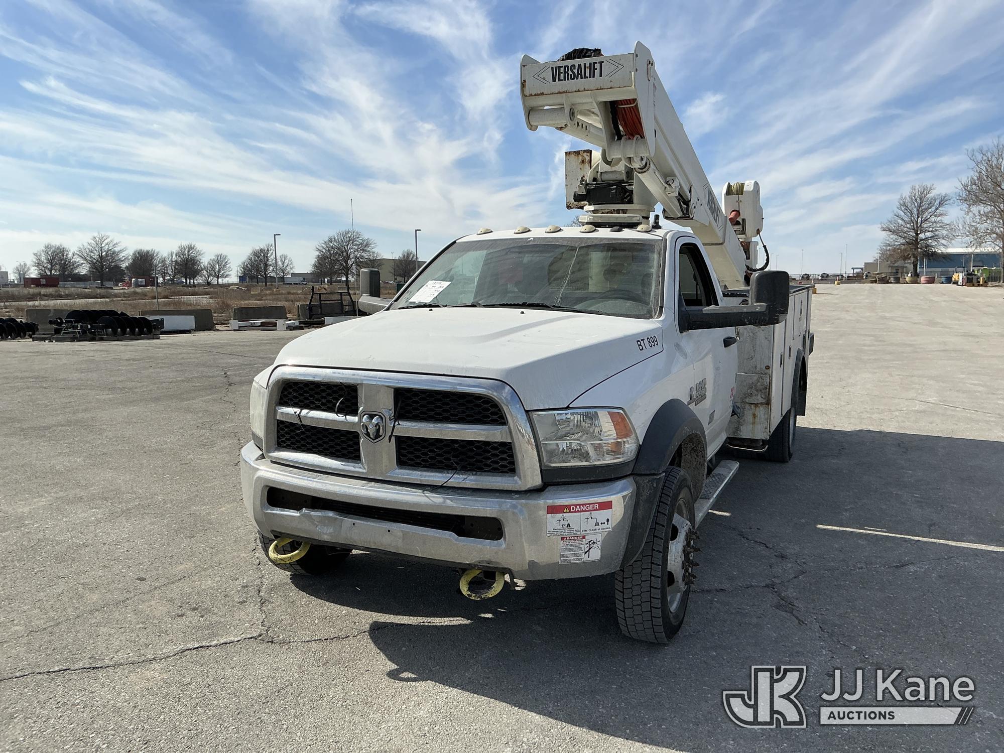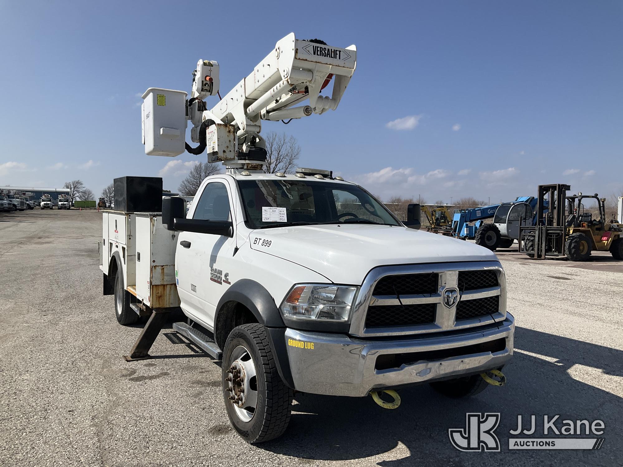 Versalift VST-40I, 45 ft, Articulating & Telescopic Material Handling Bucket Truck s/n KW170046, with Single-Man Bucket, mounted behind cab on 2017 RAM 5500 Utility Truck, 6.7L Turbo Diesel 4wd, Auto, A/C, (90,143 miles) (Runs, Moves, & Upper Operates) (Check Engine Light On, Low Coolant Light On) (Seller States: PTO Makes Grinding Noise When Engaged, Outriggers Do Not Operate & Selector Switch Not Activating At Times, Damage To Front Bumper, Paint Damage) This is a Titled Item*