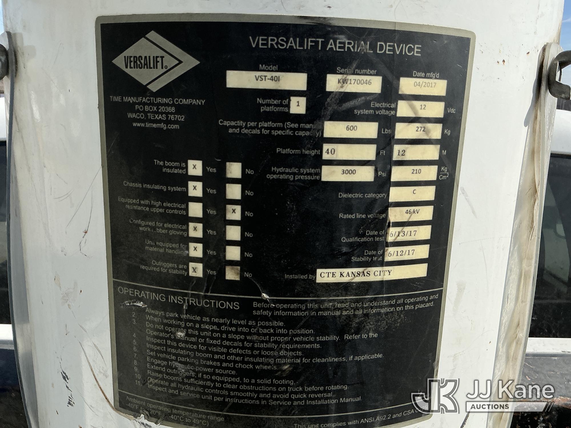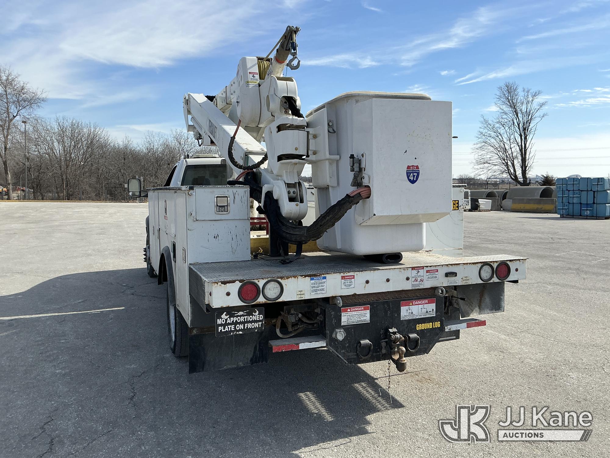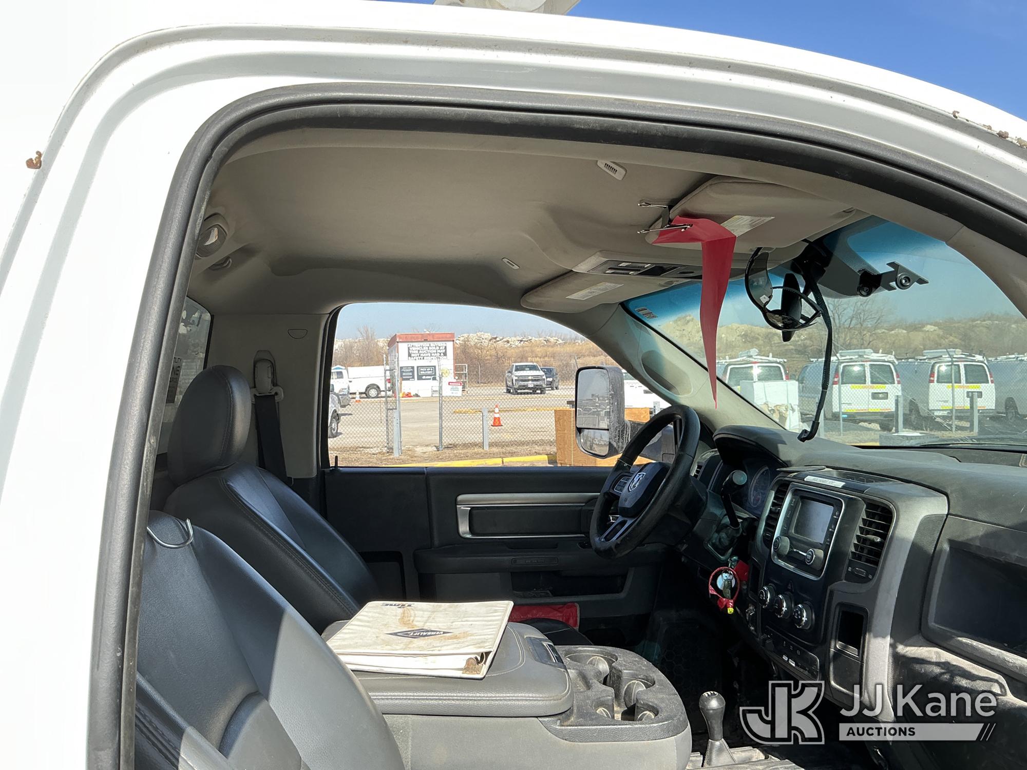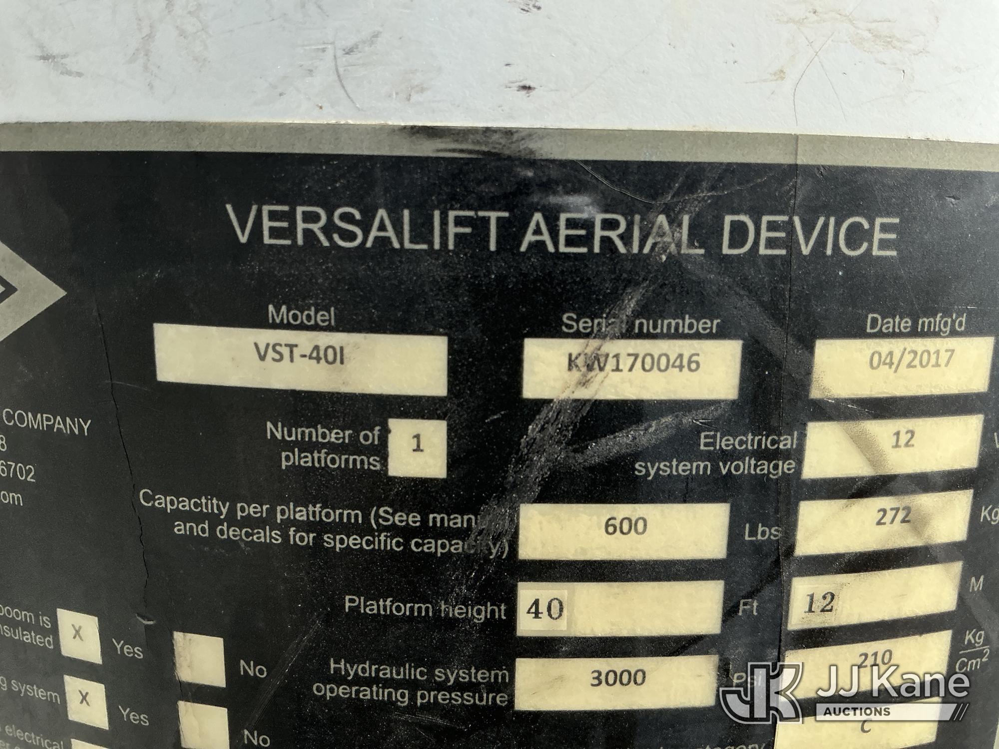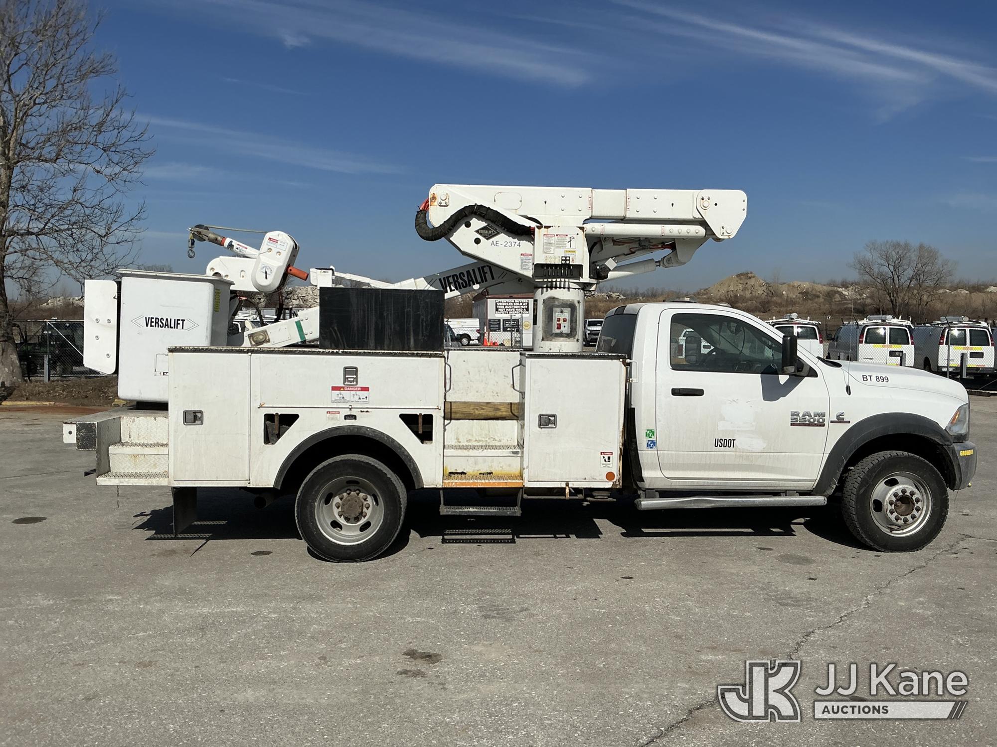 Versalift VST-40I, 45 ft, Articulating & Telescopic Material Handling Bucket Truck s/n KW170046, with Single-Man Bucket, mounted behind cab on 2017 RAM 5500 Utility Truck, 6.7L Turbo Diesel 4wd, Auto, A/C, (90,143 miles) (Runs, Moves, & Upper Operates) (Check Engine Light On, Low Coolant Light On) (Seller States: PTO Makes Grinding Noise When Engaged, Outriggers Do Not Operate & Selector Switch Not Activating At Times, Damage To Front Bumper, Paint Damage) This is a Titled Item*