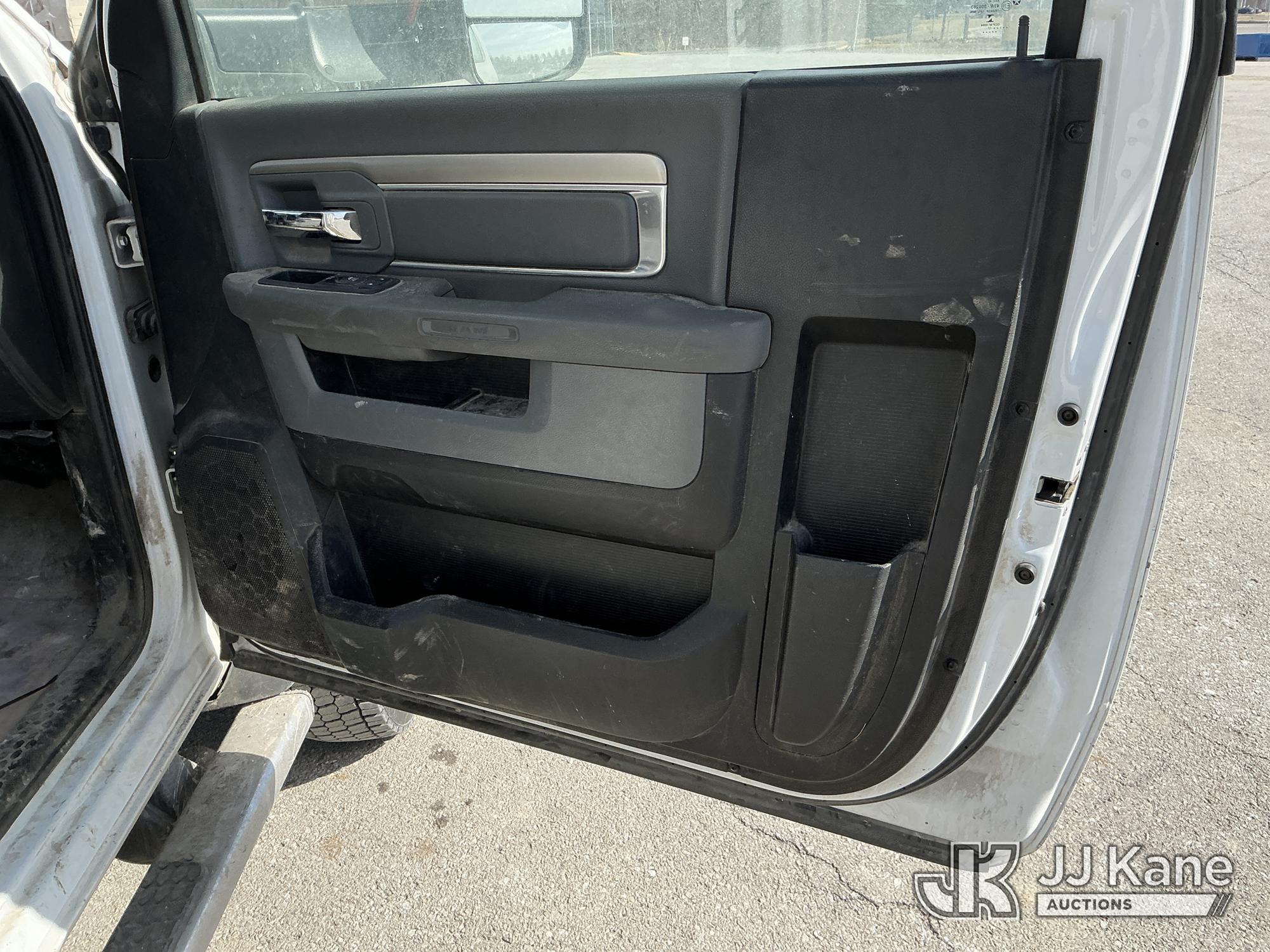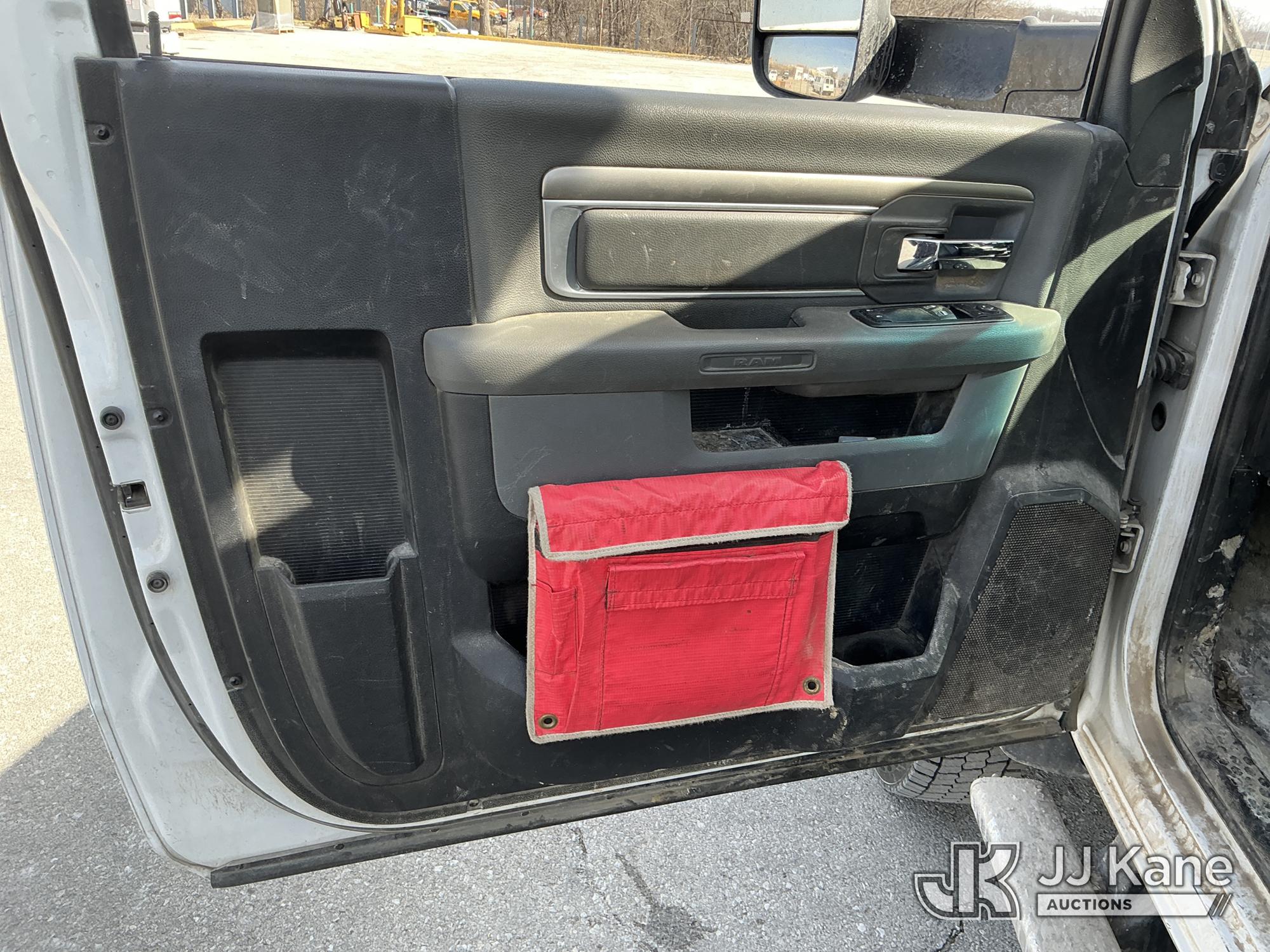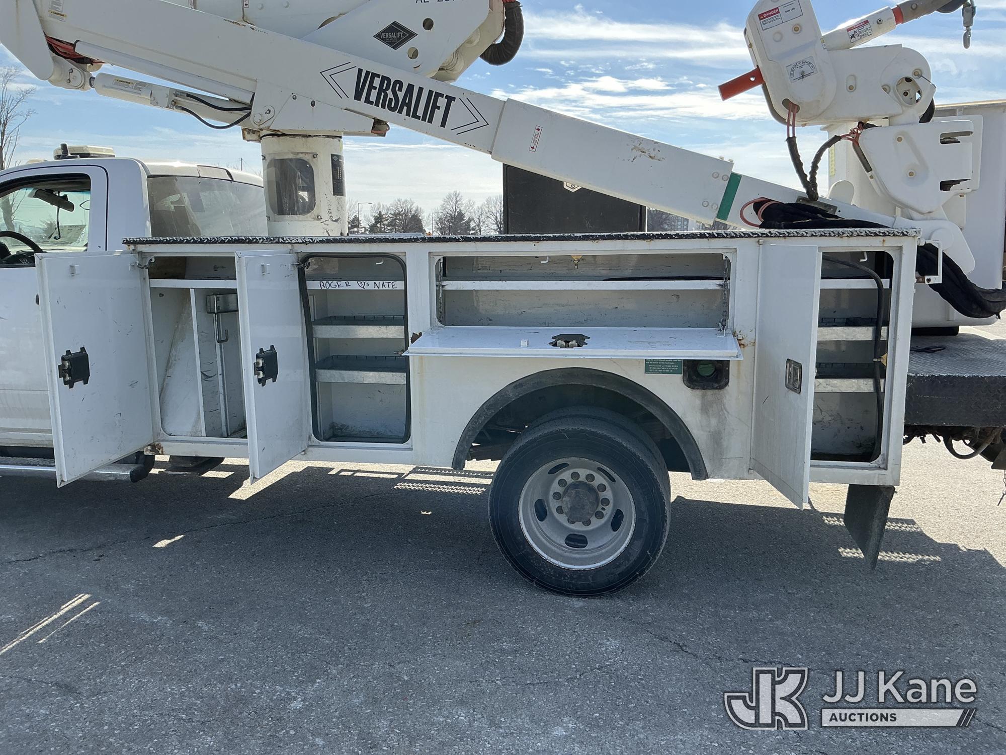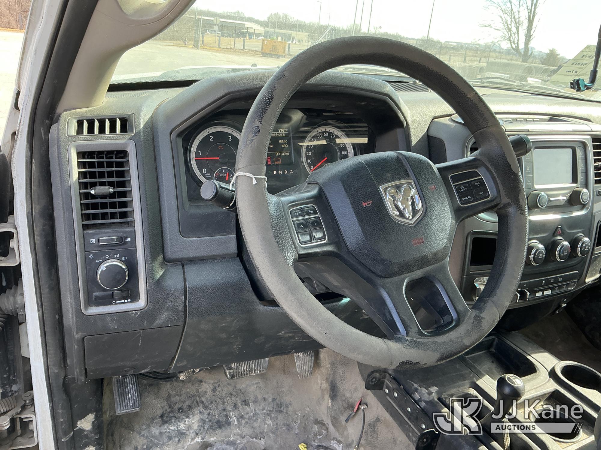 Versalift VST-40I, 45 ft, Articulating & Telescopic Material Handling Bucket Truck s/n KW170046, with Single-Man Bucket, mounted behind cab on 2017 RAM 5500 Utility Truck, 6.7L Turbo Diesel 4wd, Auto, A/C, (90,143 miles) (Runs, Moves, & Upper Operates) (Check Engine Light On, Low Coolant Light On) (Seller States: PTO Makes Grinding Noise When Engaged, Outriggers Do Not Operate & Selector Switch Not Activating At Times, Damage To Front Bumper, Paint Damage) This is a Titled Item*