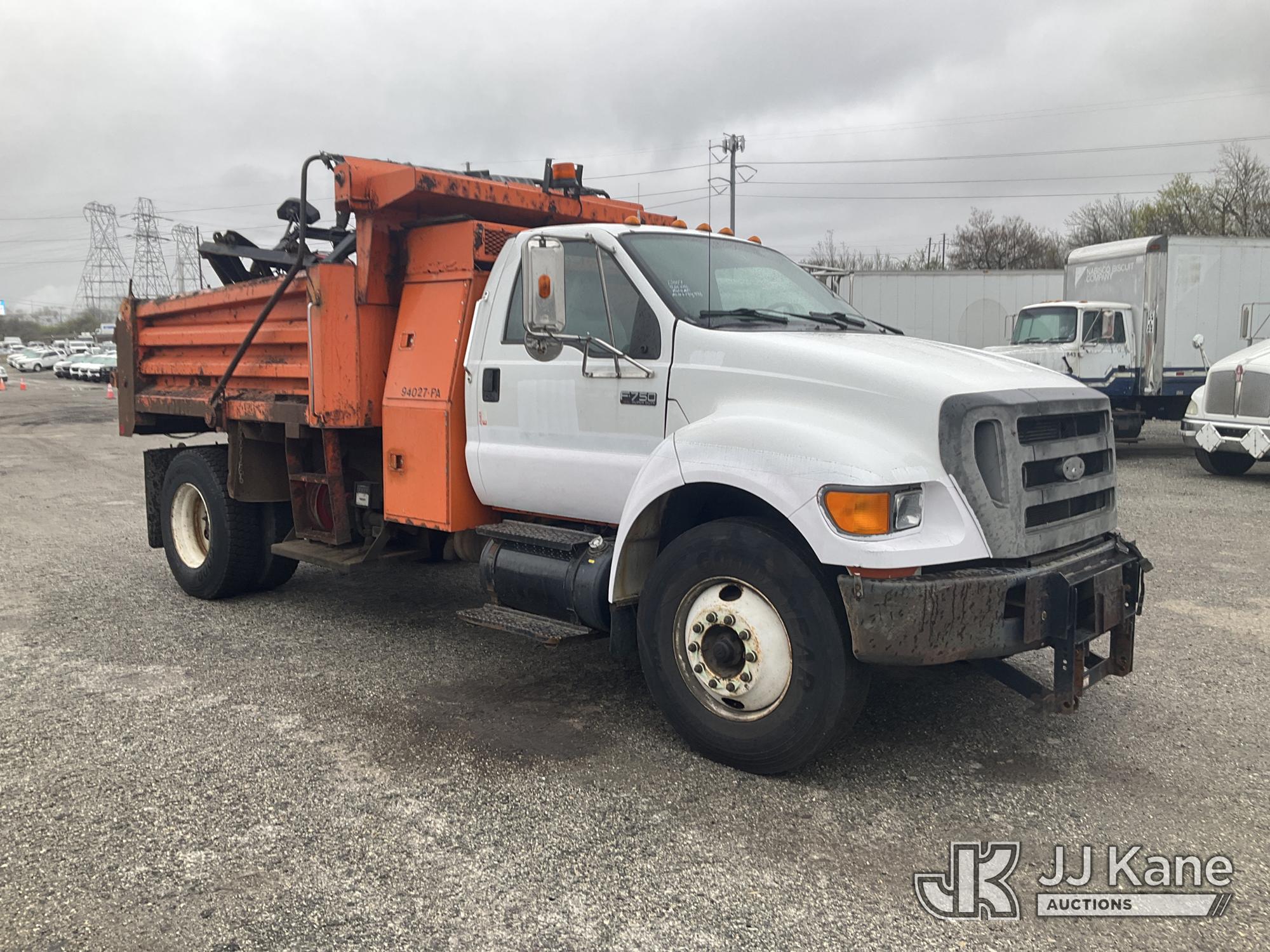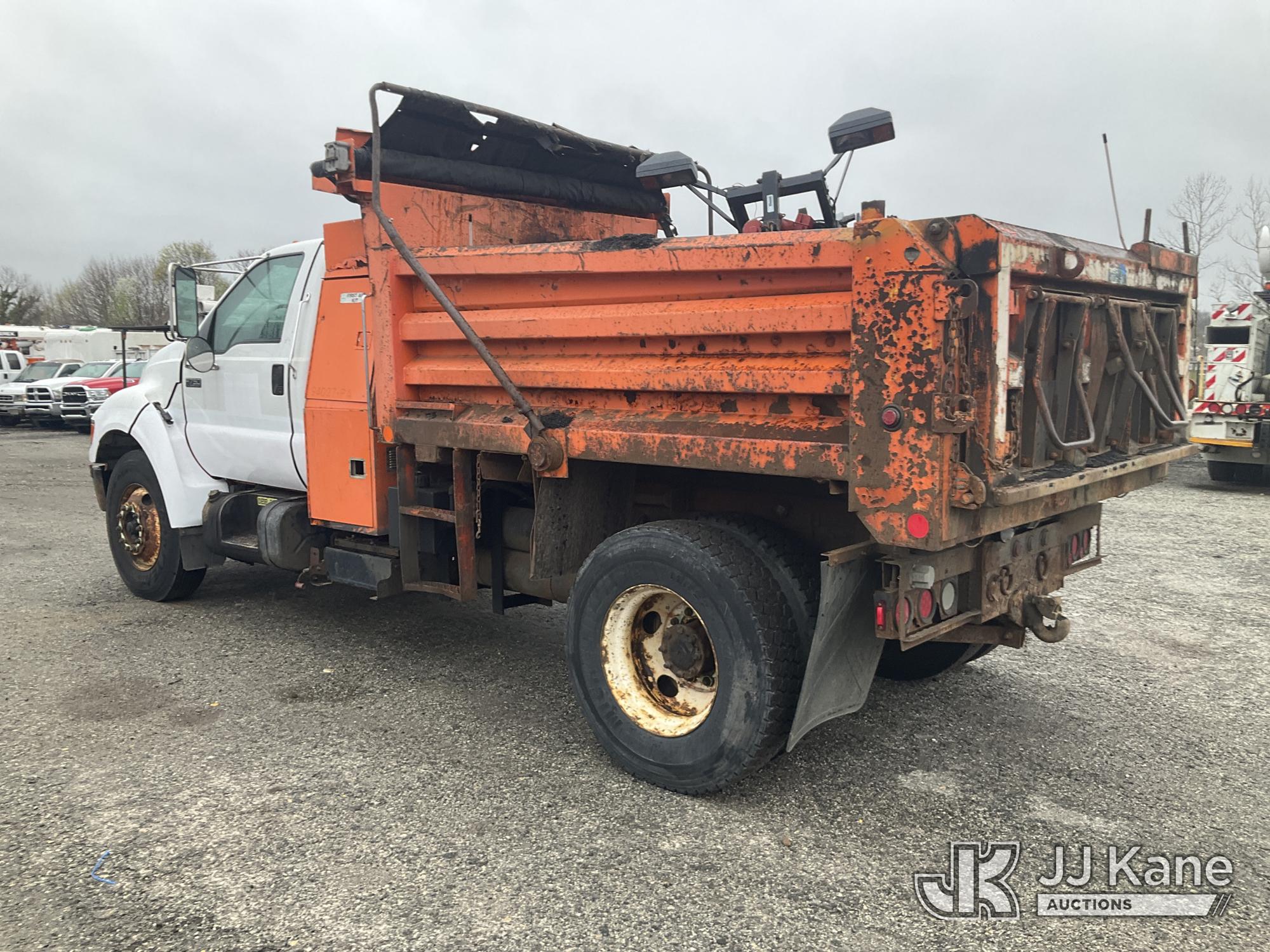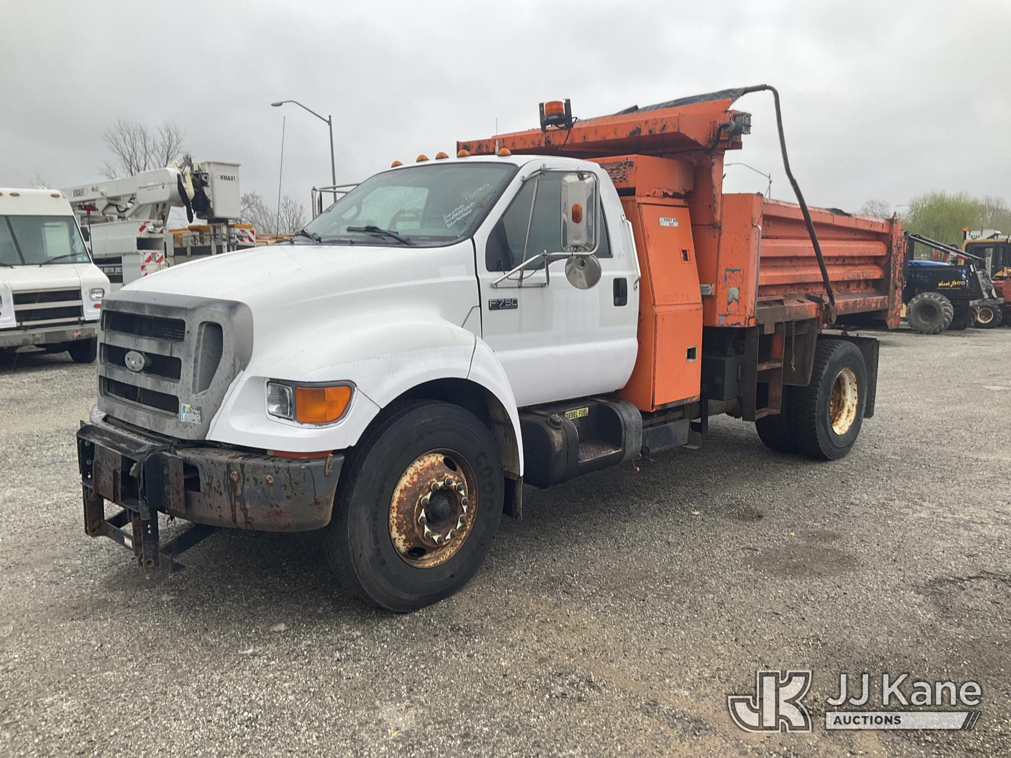 2007 Ford F750 Dump Truck, Cat C7 Diesel, 4X2, Auto, A/C, with 5-7 Yard Body, Snow Plow, (134,337 miles) (Runs, Moves & Dump Does Not Operate, Body & Rust Damage) This is a Titled Item*