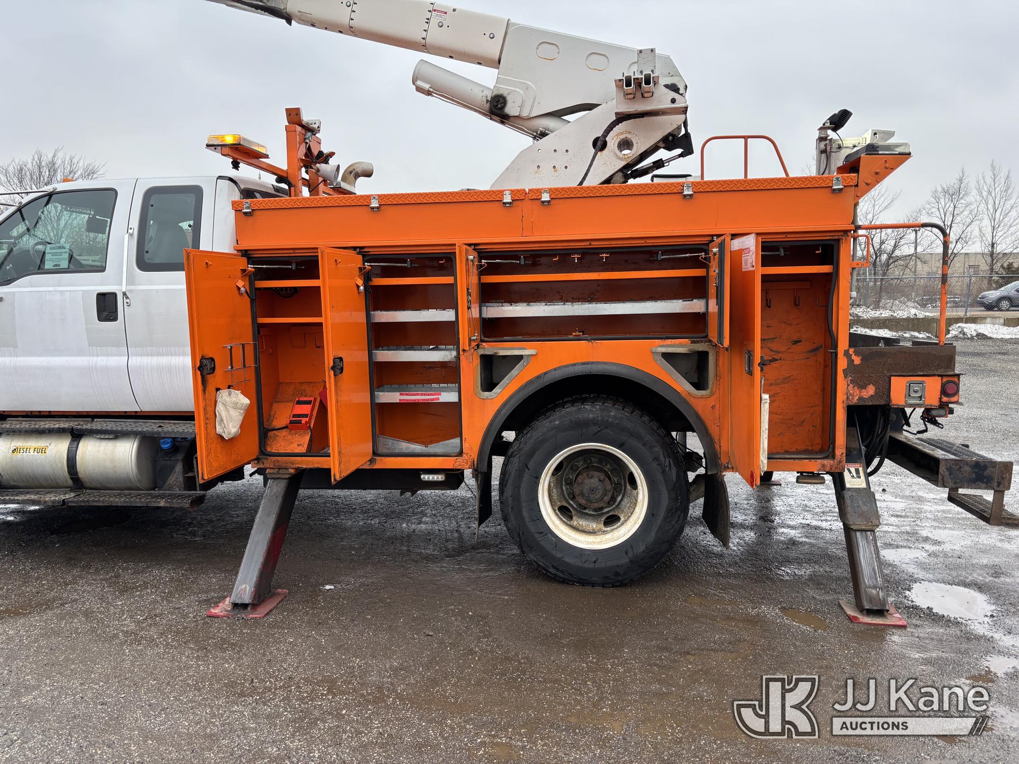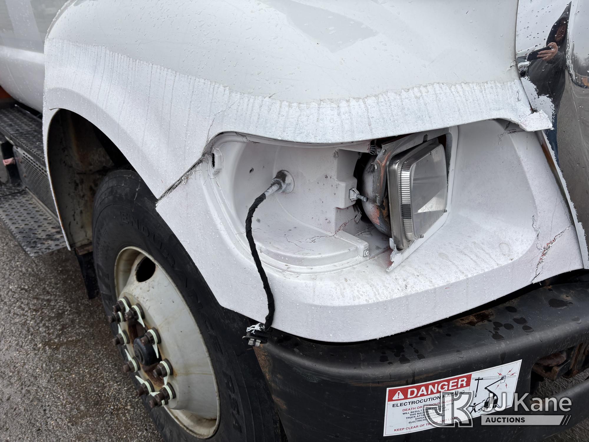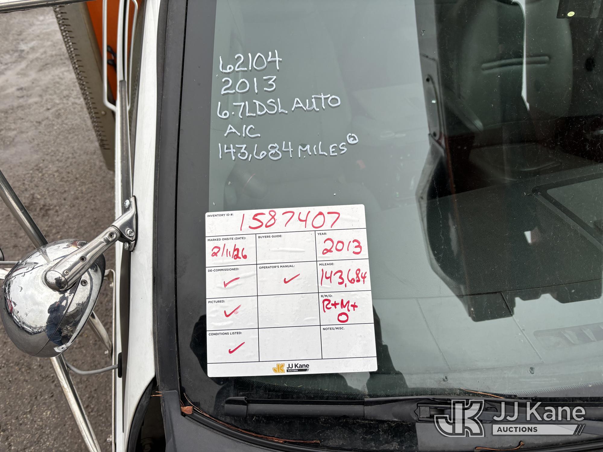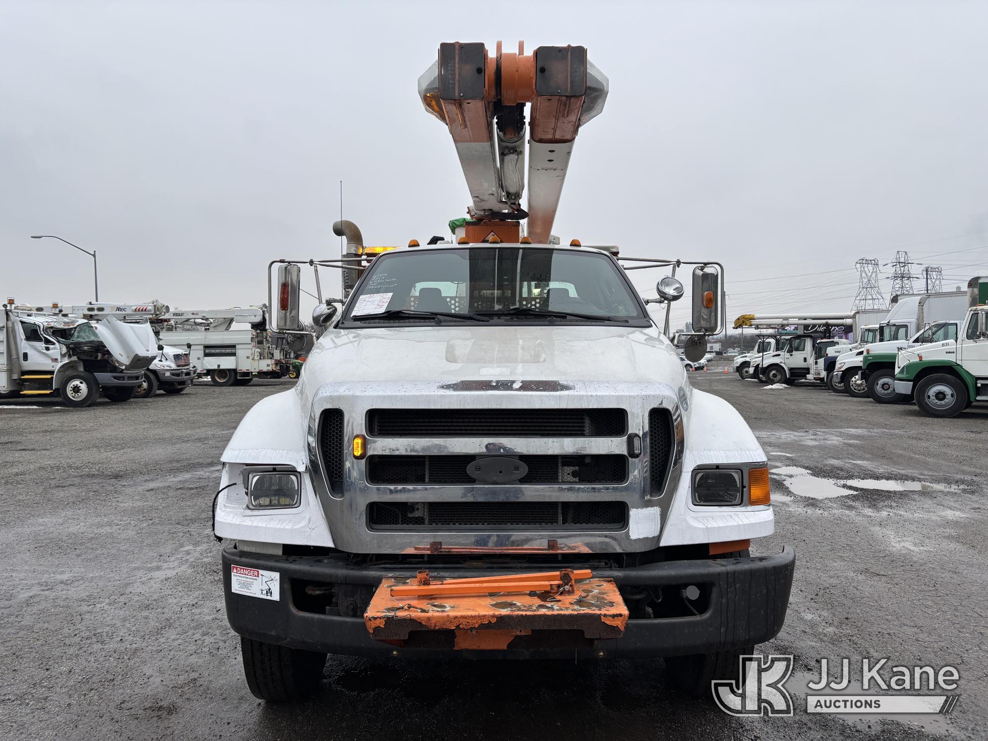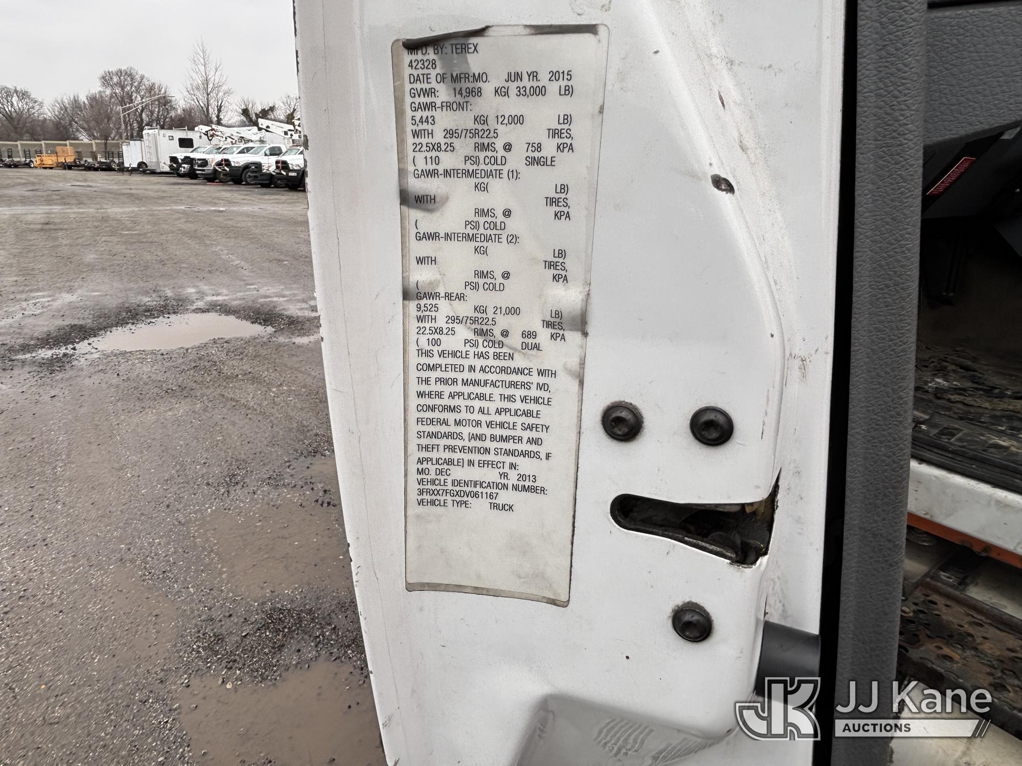 Terex/HiRanger SC42, 47 ft, Over-Center Bucket Truck s/n 21506554365, with single-man bucket & 4 outriggers, center mounted on 2013 Ford F750 Extended-Cab Utility Truck, 6.7L diesel, Auto, A/C, (143,684 miles) (Runs Moves & Upper Operates, Front Headlight Broken ) This is a Titled Item*