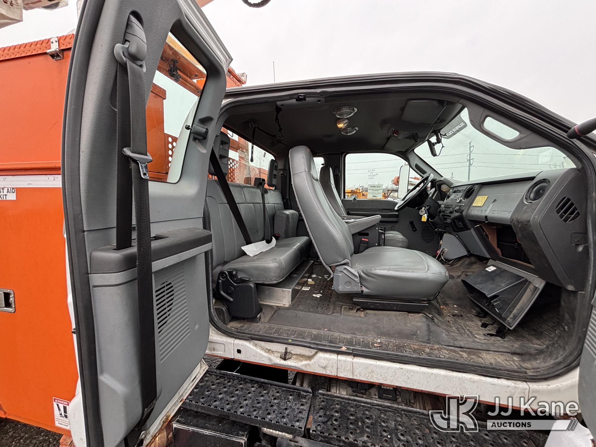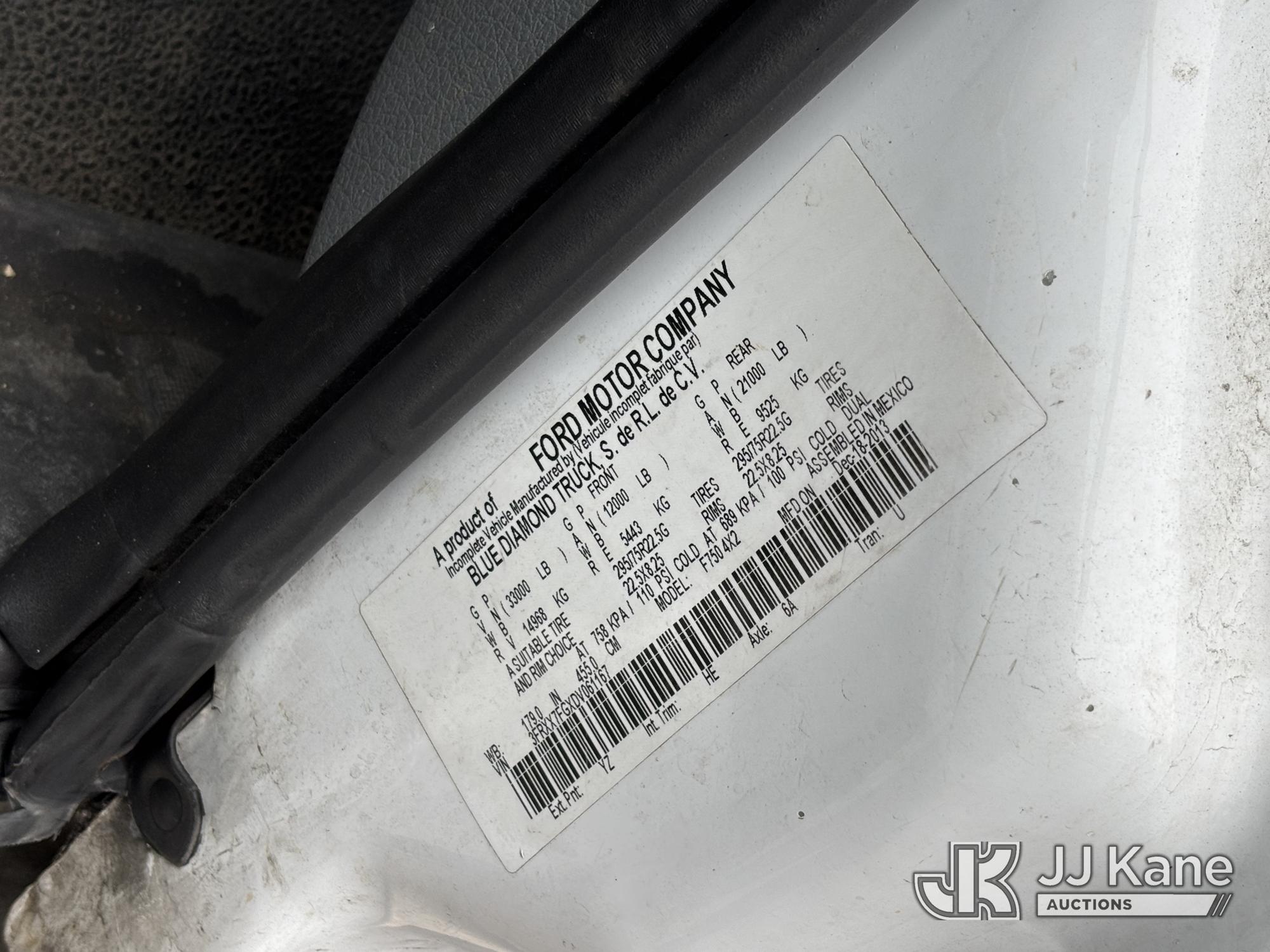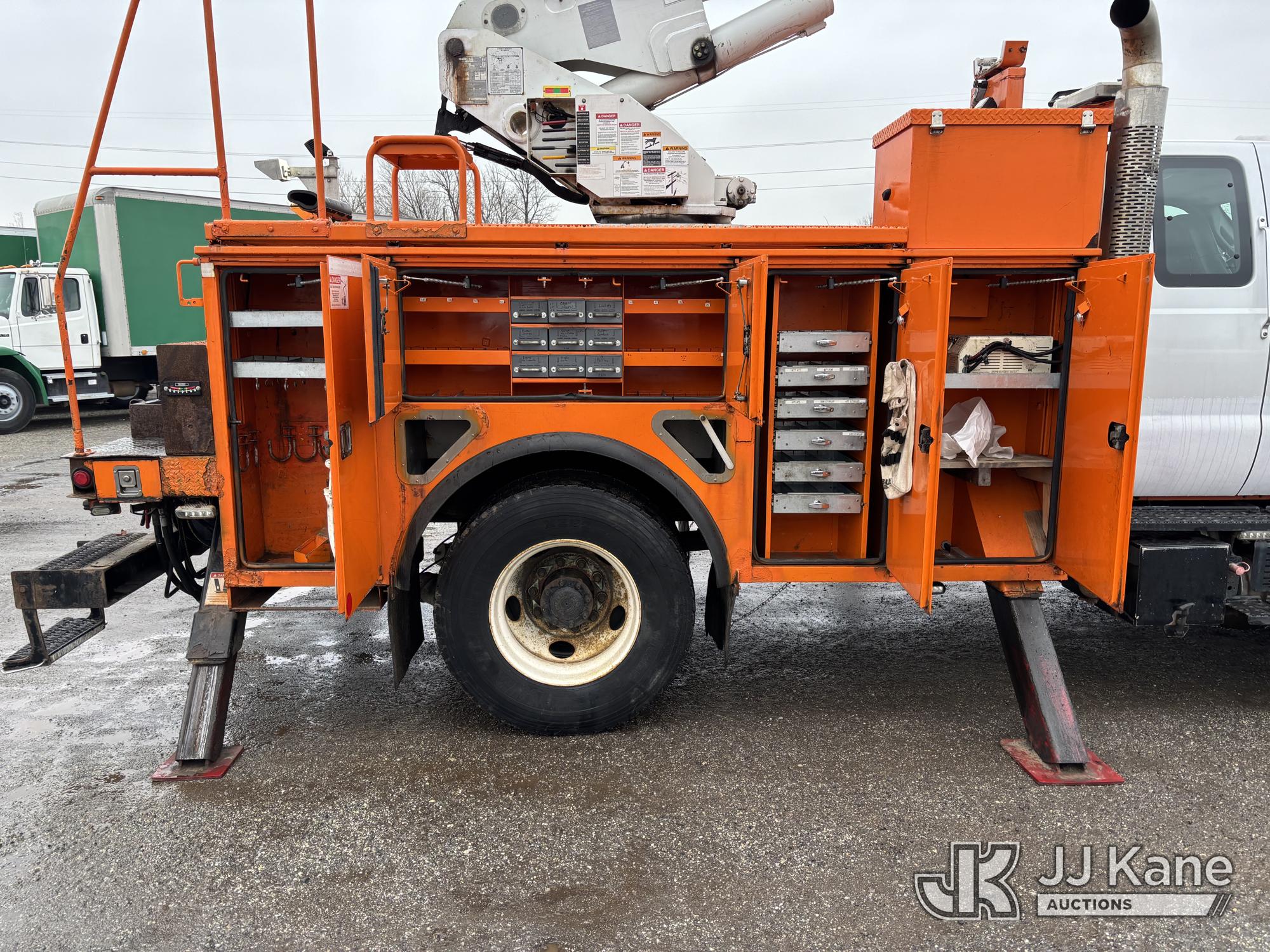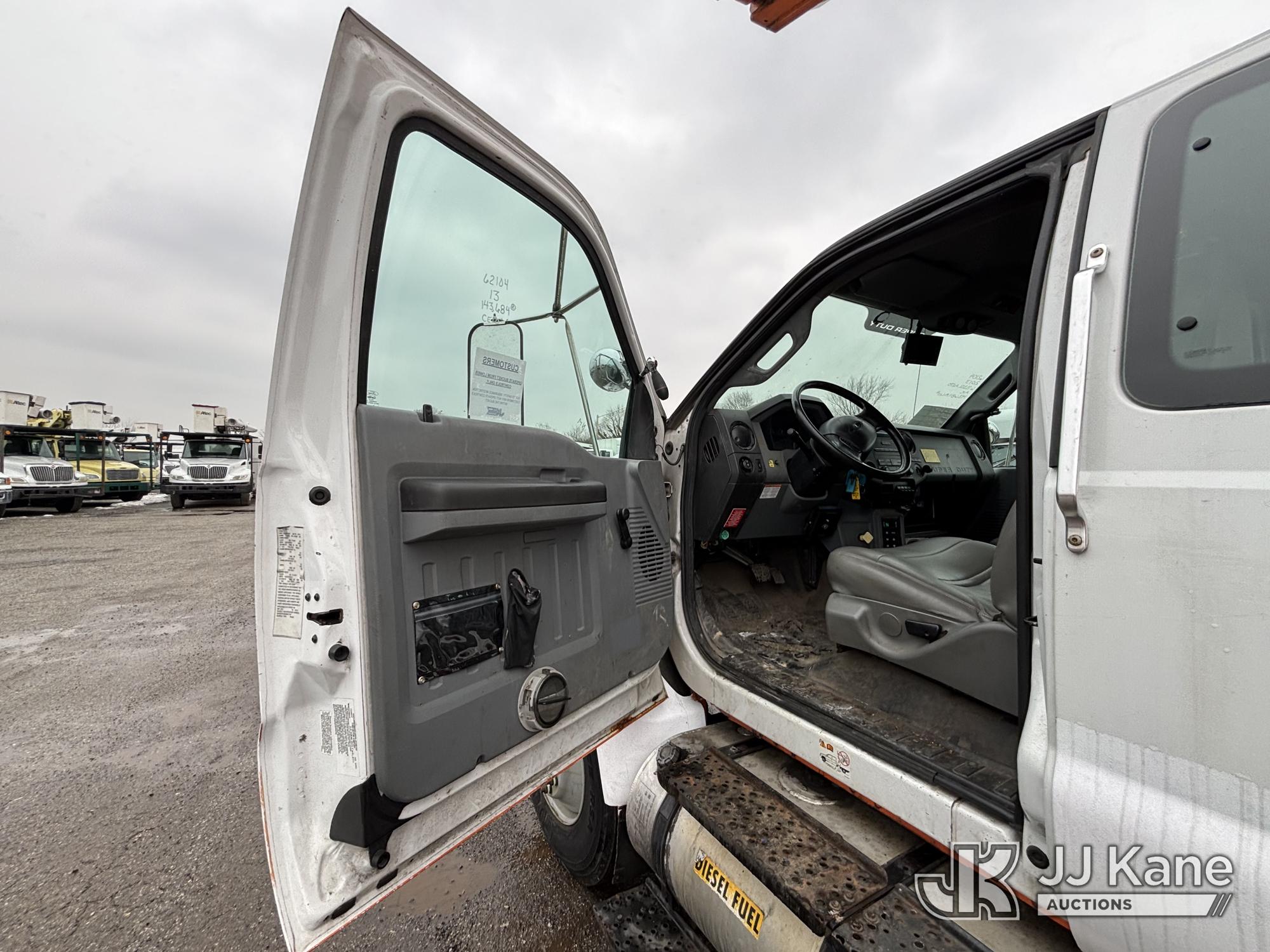 Terex/HiRanger SC42, 47 ft, Over-Center Bucket Truck s/n 21506554365, with single-man bucket & 4 outriggers, center mounted on 2013 Ford F750 Extended-Cab Utility Truck, 6.7L diesel, Auto, A/C, (143,684 miles) (Runs Moves & Upper Operates, Front Headlight Broken ) This is a Titled Item*