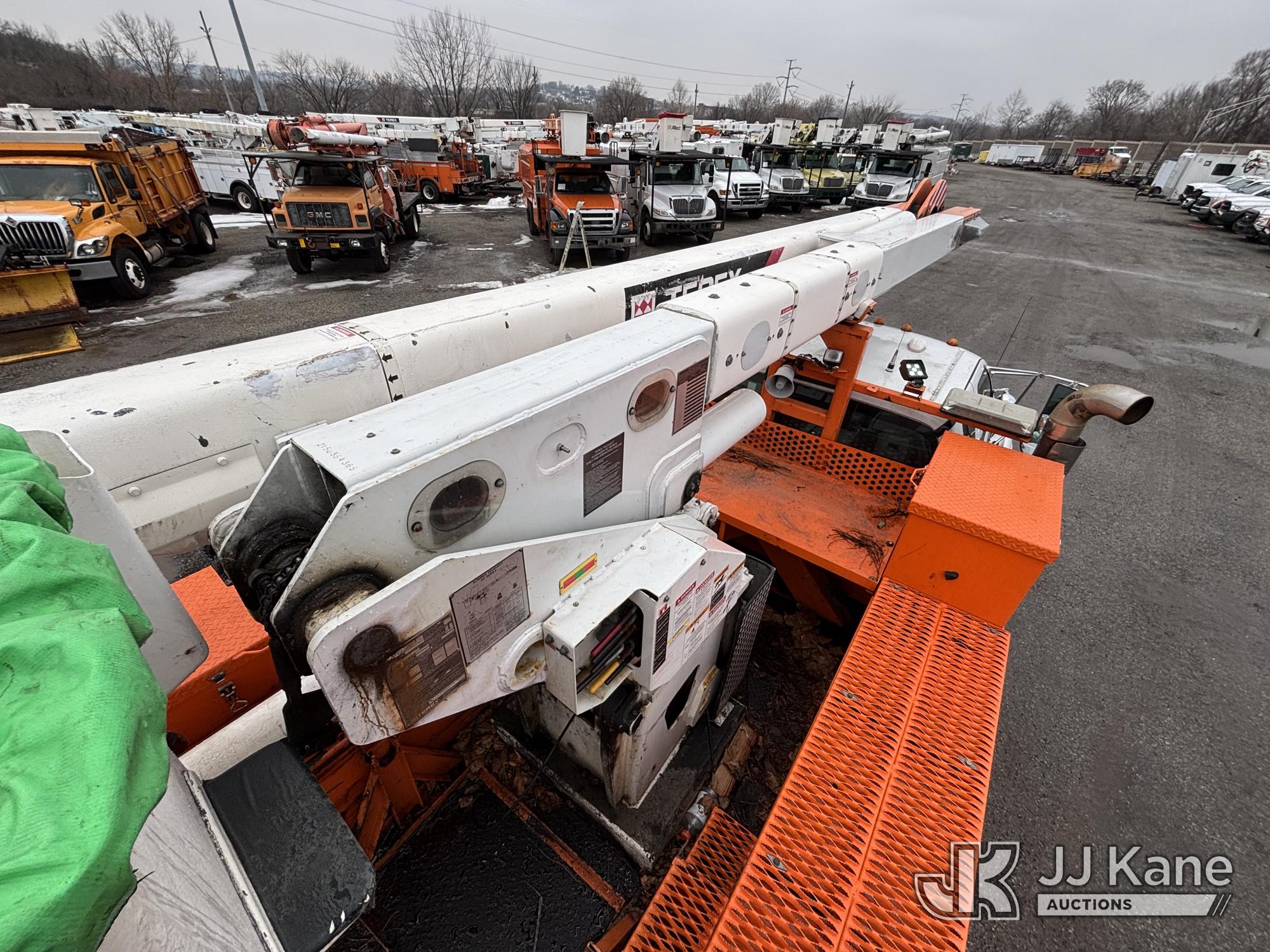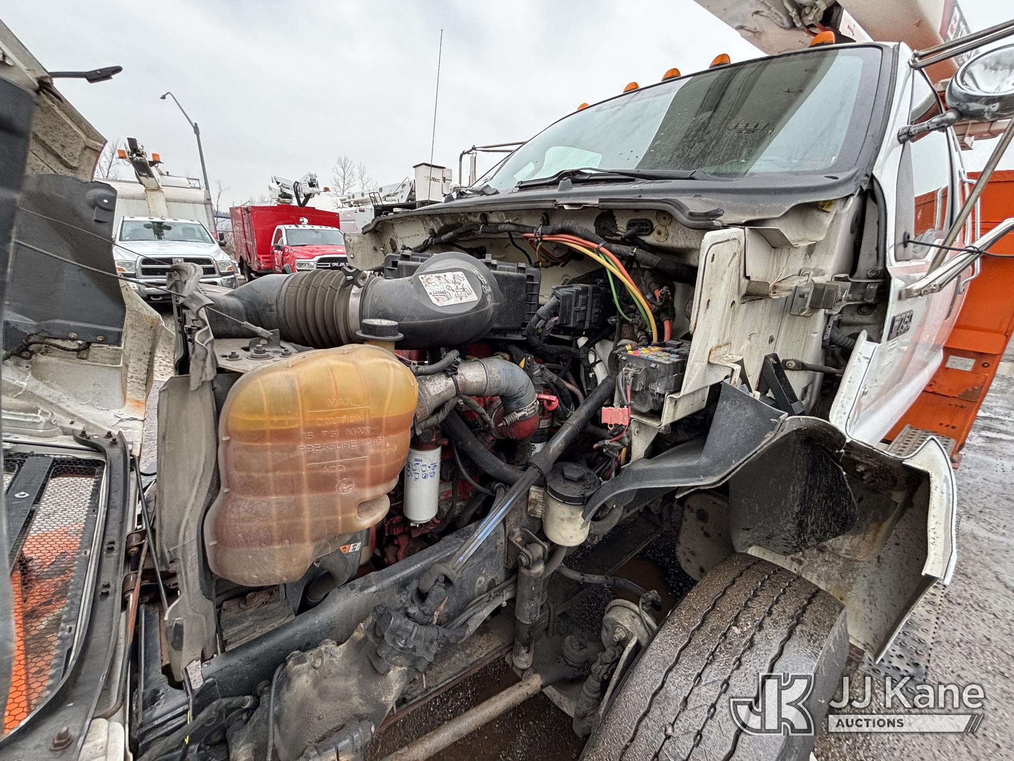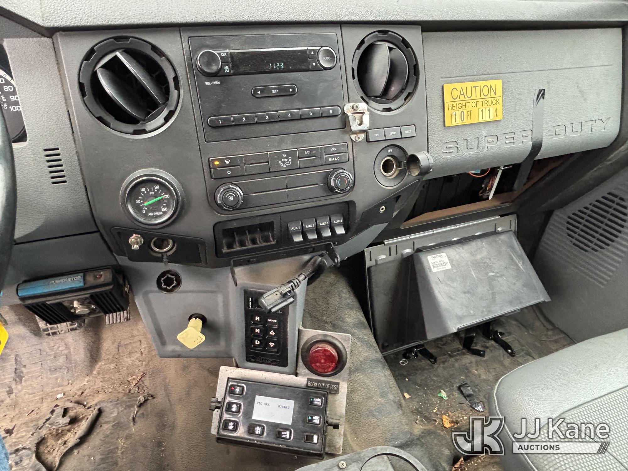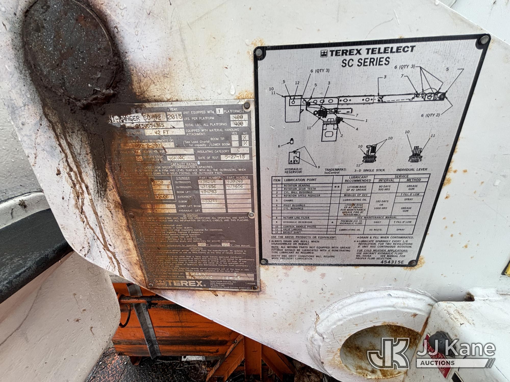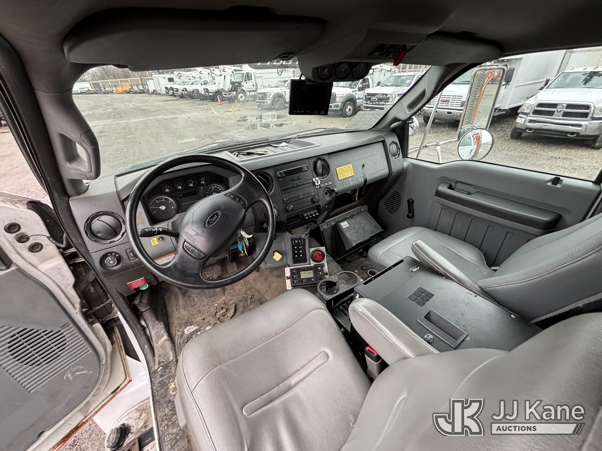 Terex/HiRanger SC42, 47 ft, Over-Center Bucket Truck s/n 21506554365, with single-man bucket & 4 outriggers, center mounted on 2013 Ford F750 Extended-Cab Utility Truck, 6.7L diesel, Auto, A/C, (143,684 miles) (Runs Moves & Upper Operates, Front Headlight Broken ) This is a Titled Item*