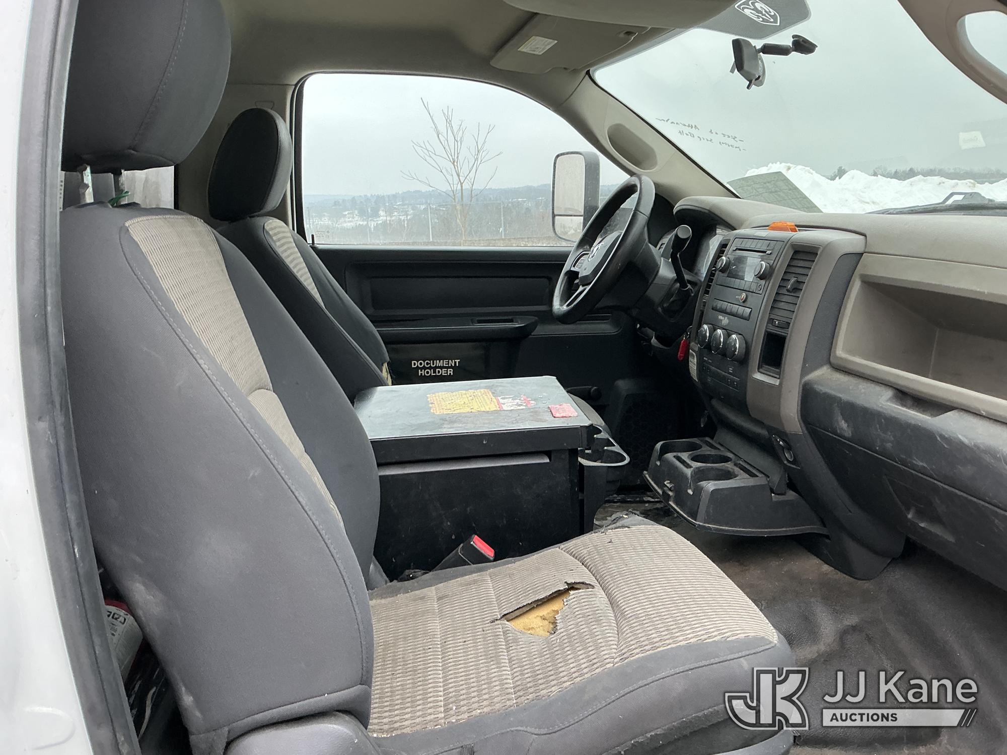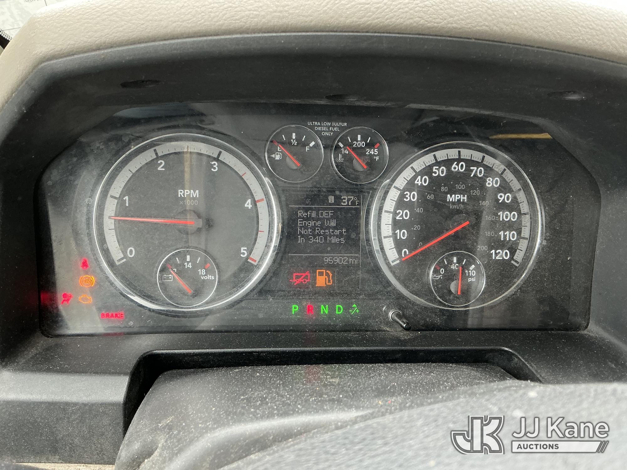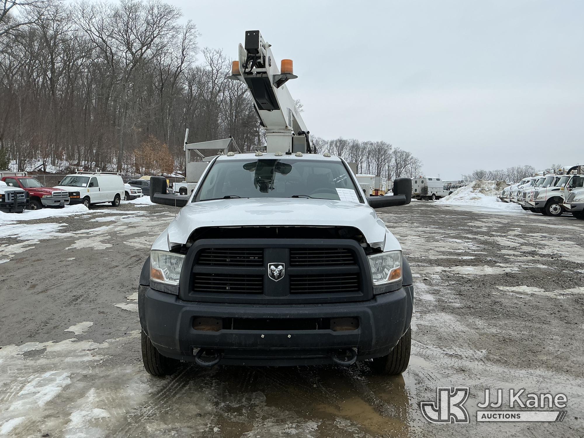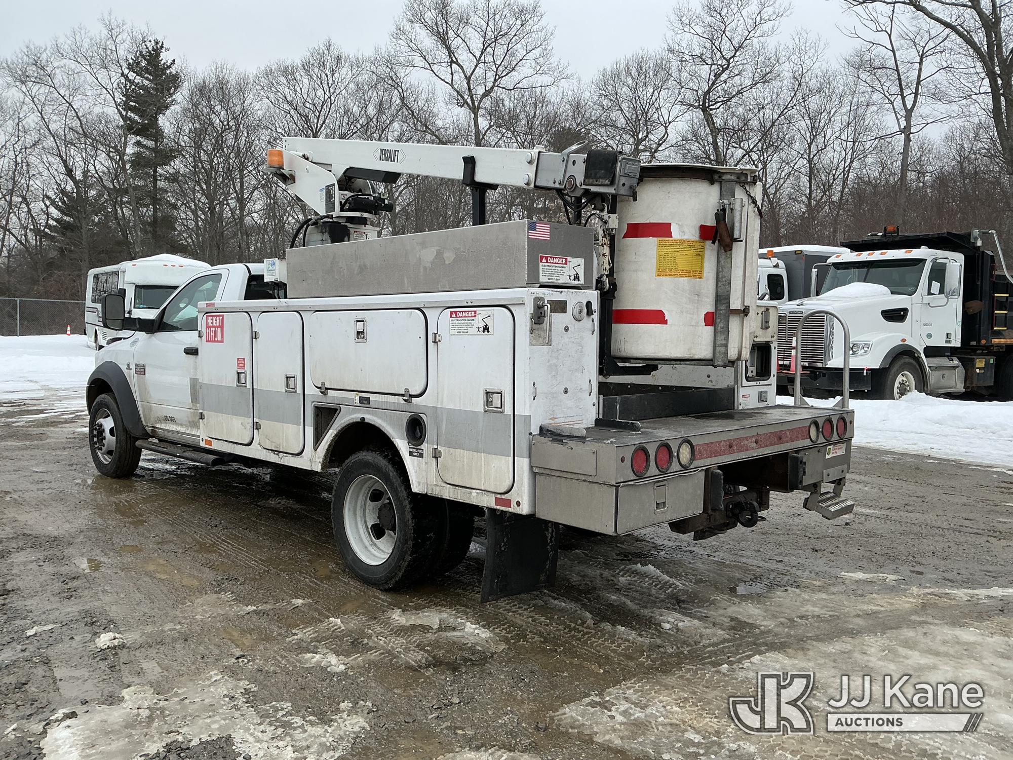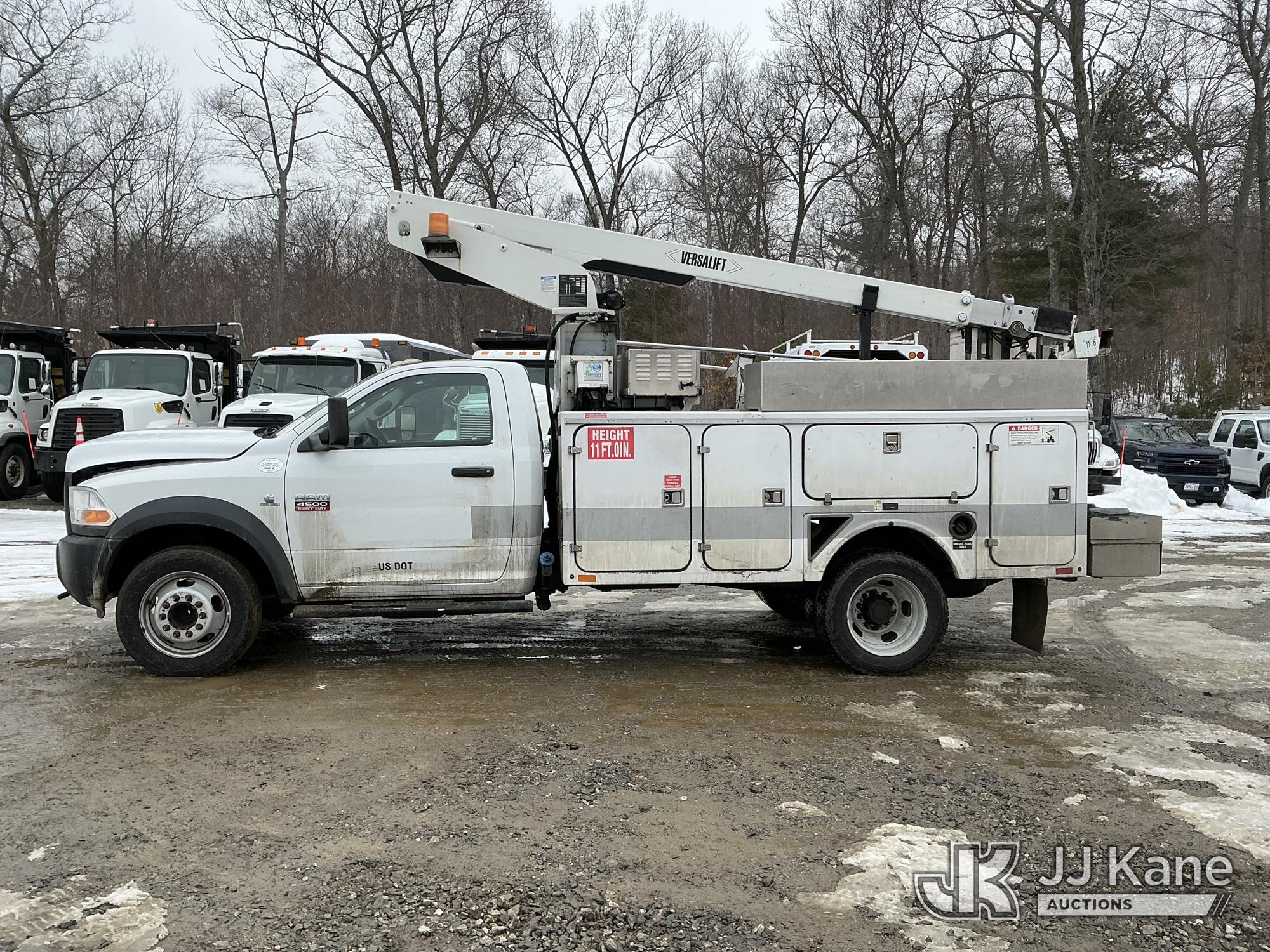 Versalift TEL29N02, 34 ft, Telescopic Non-Insulated Bucket Truck s/n AG120311, with single-man bucket, rear mounted on 2012 Dodge Ram 4500 Regular Cab 2WD Service Truck, Cummins 6.7L RWD, diesel, Auto, A/C, (95,902 miles) (Runs & Moves) (PTO Not Engaging, No Response From Upper Controls, Upper Condition Unknown, Seized Alternator, Missing Serpentine Belt, No Power Steering, Multiple Lights On Dash) This is a Titled Item*