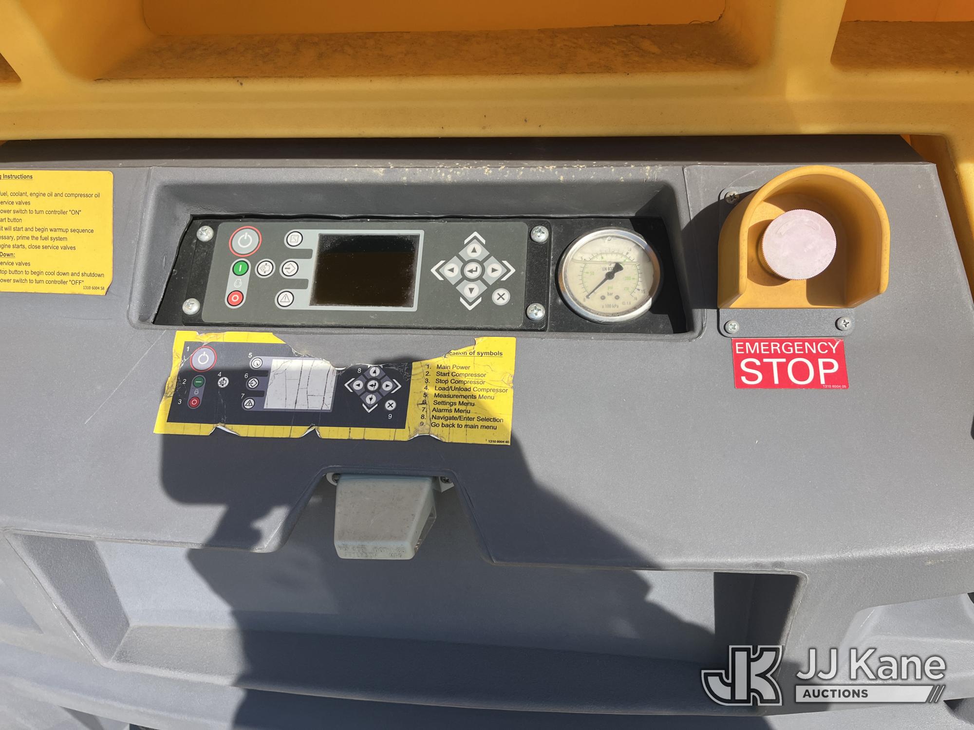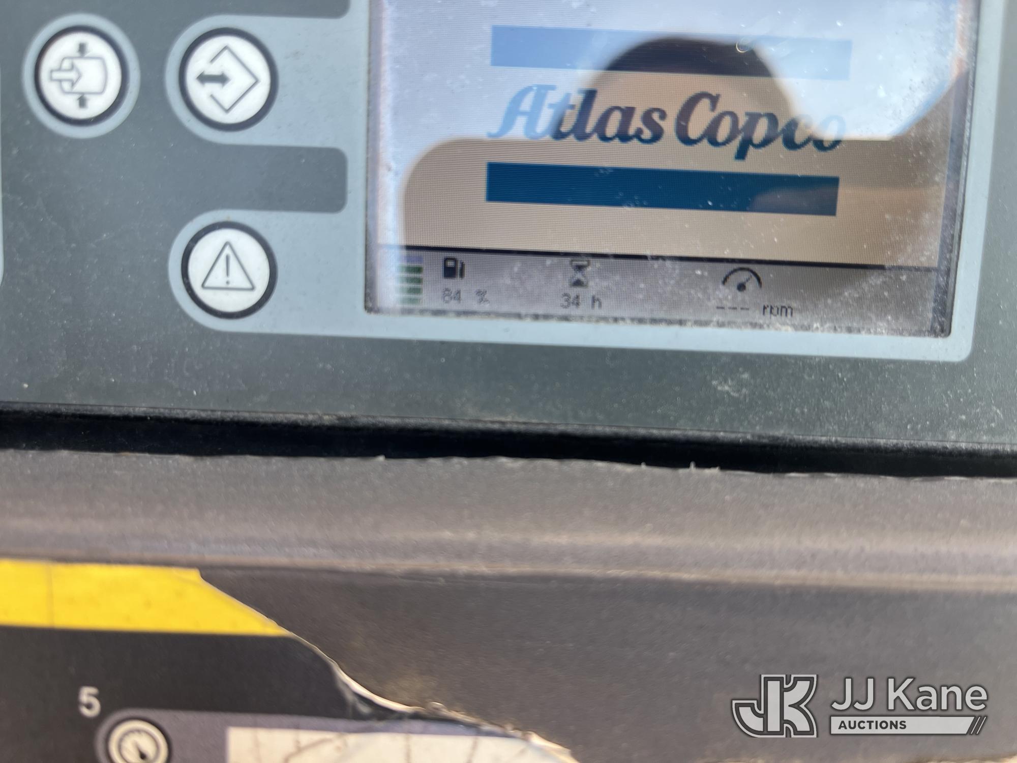 2017 Atlas Copco XAS185 KD7 PE T4F Portable Air Compressor, s/n 4500A1016HR055013, Kubota Diesel (Not Running, Jump To Start, Immediately Stalls With ECU Engine Oil Pressure Alarm) (Reads 34 hours)*