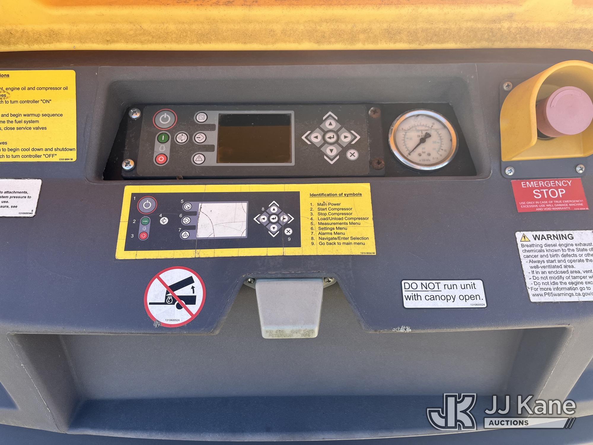 2018 Atlas Copco XAS185 KD7 PE T4F Portable Air Compressor, s/n 4500A1017JR058069, Kubota Diesel (Runs Rough, Stalls, Jump To Run, Battery, Start Failure & Fuel Level Sensor Codes) (Reads 68 hours)*
