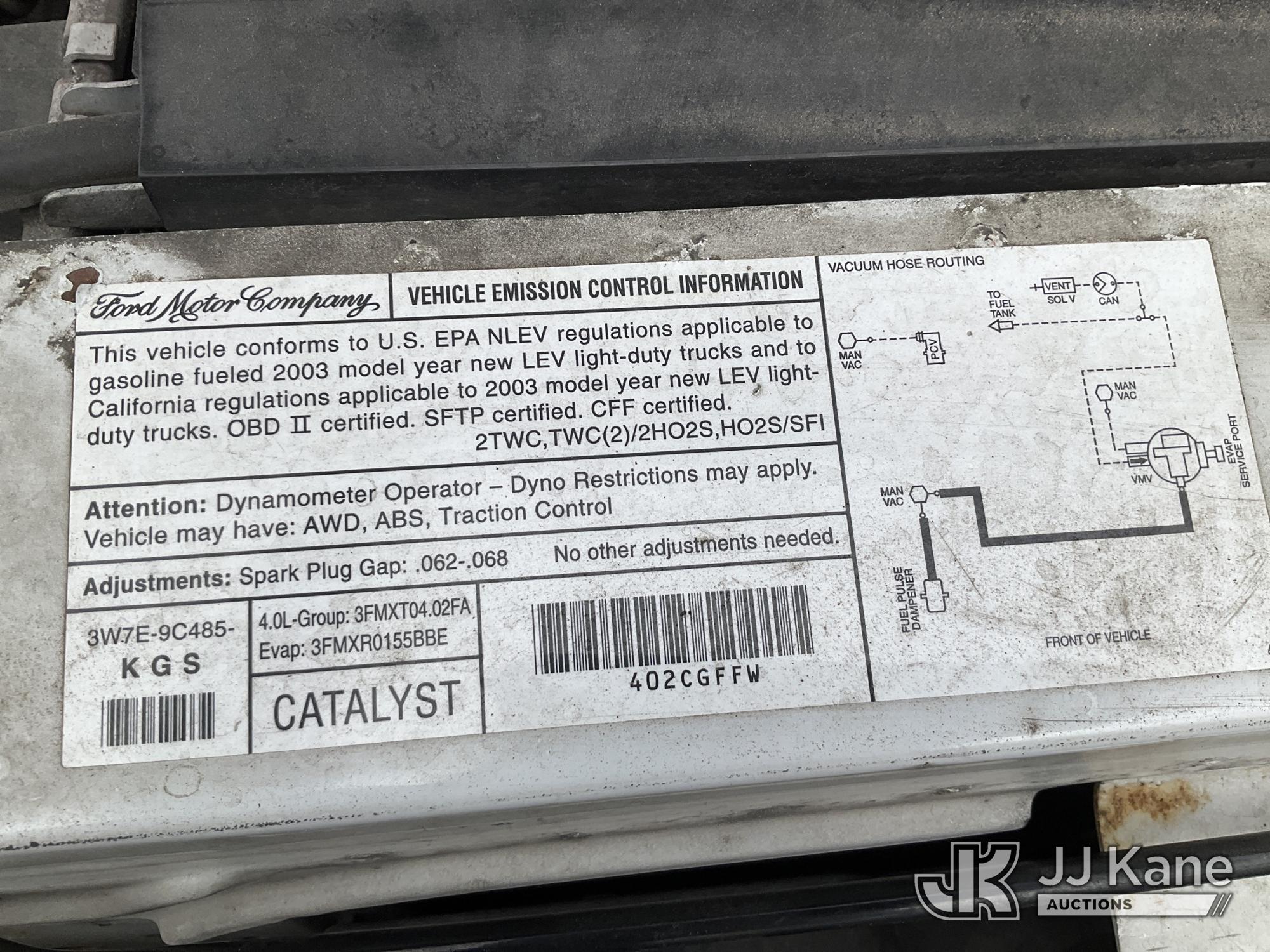 2003 Ford Ranger 4x4 Pickup Truck, 6-cyl gas, Auto, A/C, (Exempt from Odometer Disclosure - Reads 143,939 miles) (Runs & Moves) This is a Titled Item*