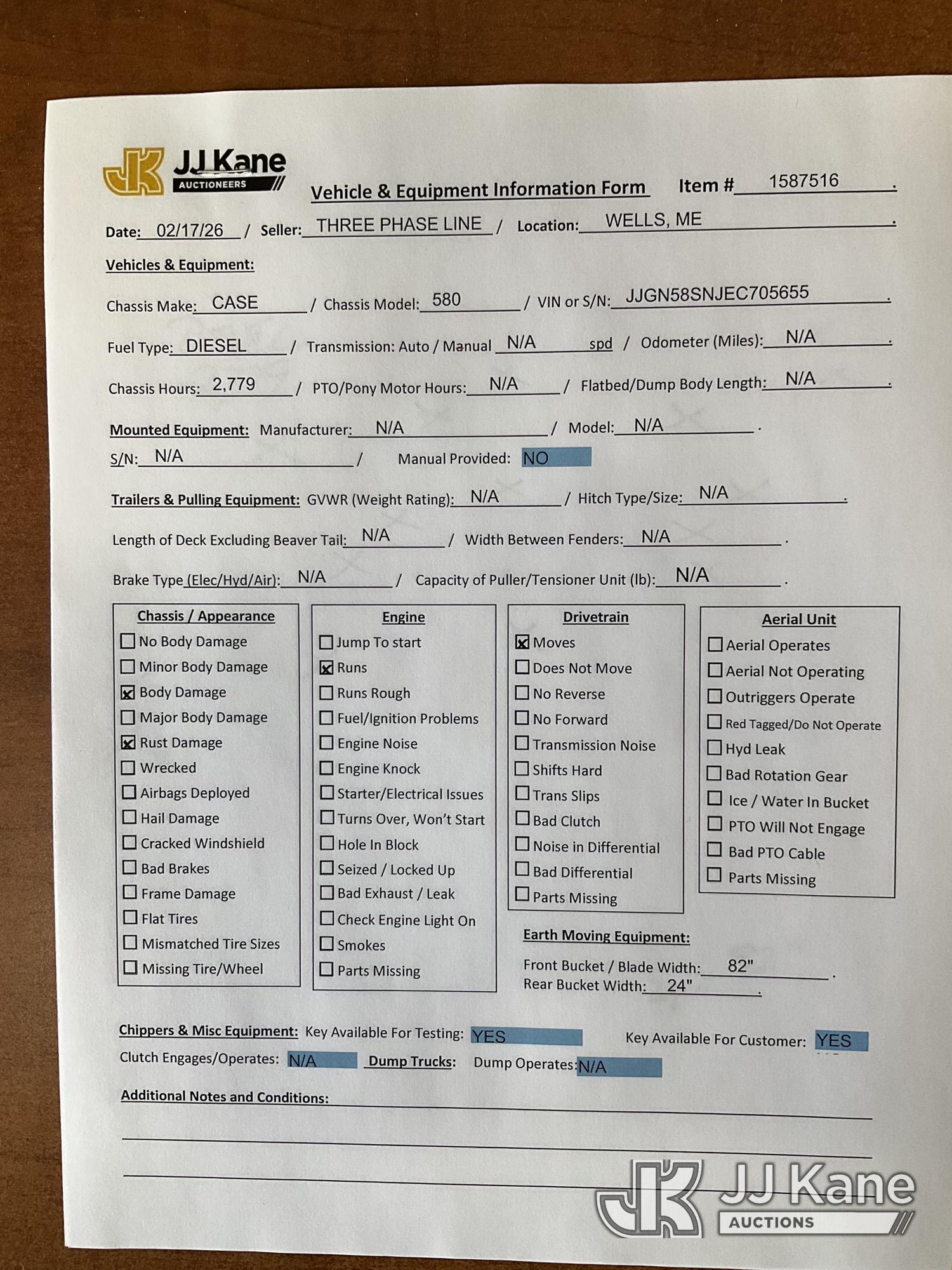 2014 Case 580 Super N 4x4 Tractor Loader Backhoe, s/n JJGN58SNJEC705655, Case diesel, Shuttle, with GP Bucket, digging bucket ride control, extendahoe & EROPS, (Runs, Moves & Operates) (Reads 2,779 hours)*